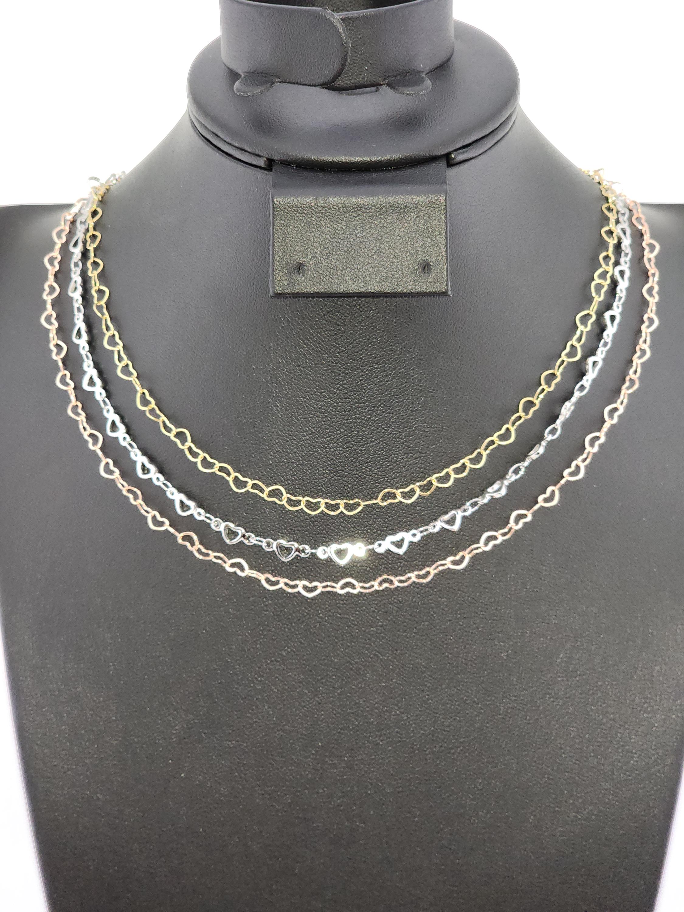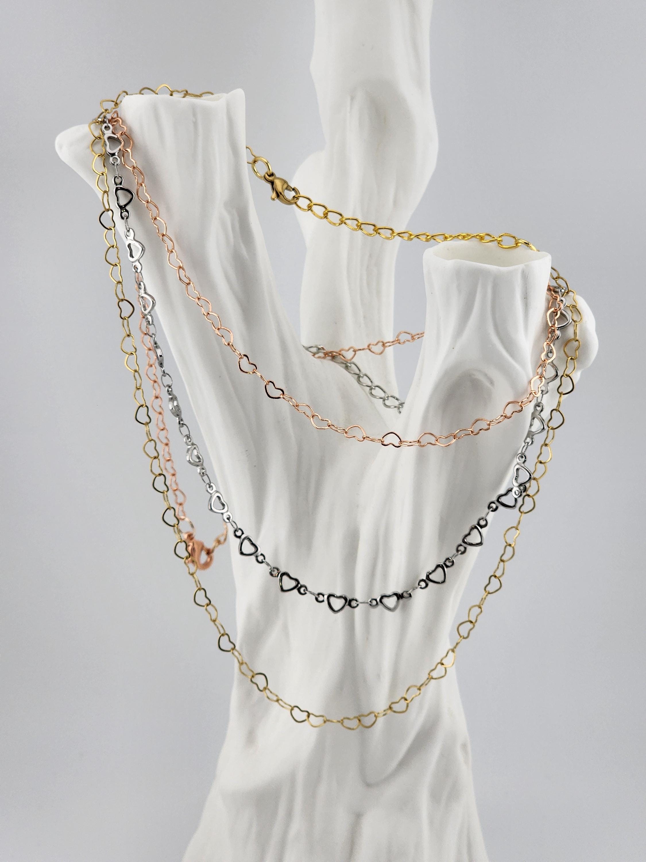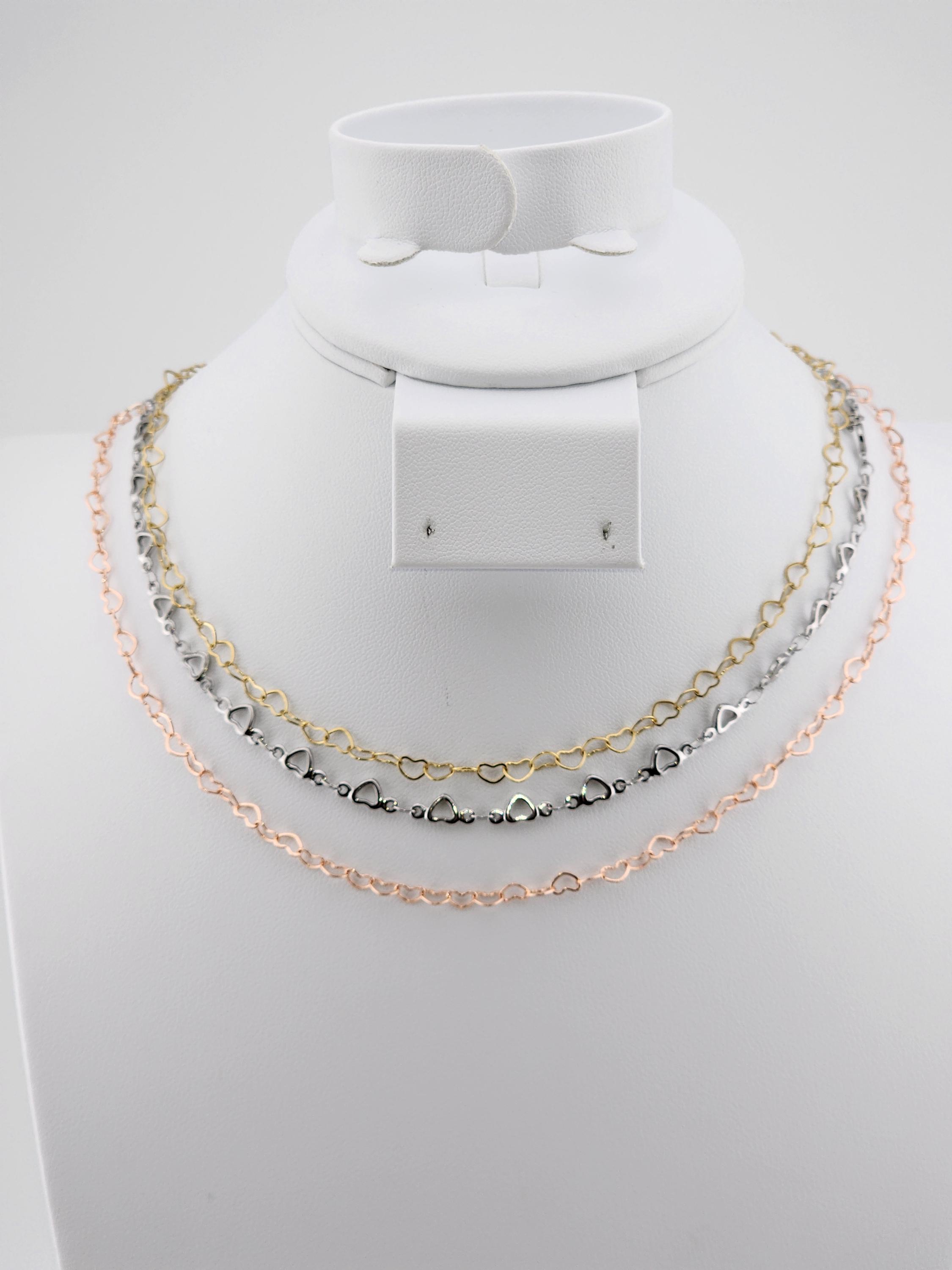 I made these choker necklaces using open hearts chains in different colors. The necklaces have extenders making them adjustable from 14"-16" in length. YOUR CHOICES OF COLORS ARE: #1- Yellow Gold with 18k gold plated connecting rings #2- Silver #3- Rose Gold with sterling silver plated connecting rings