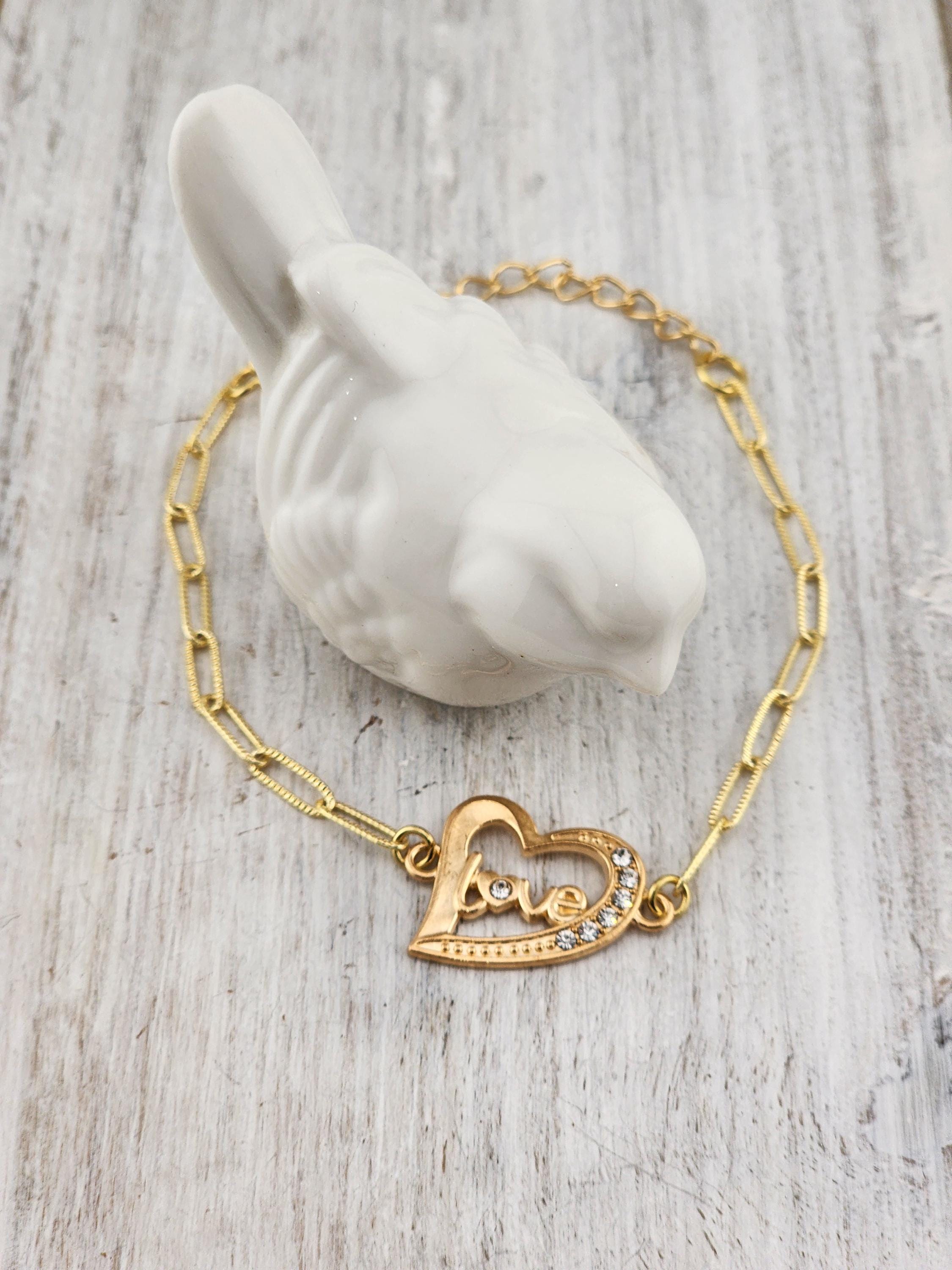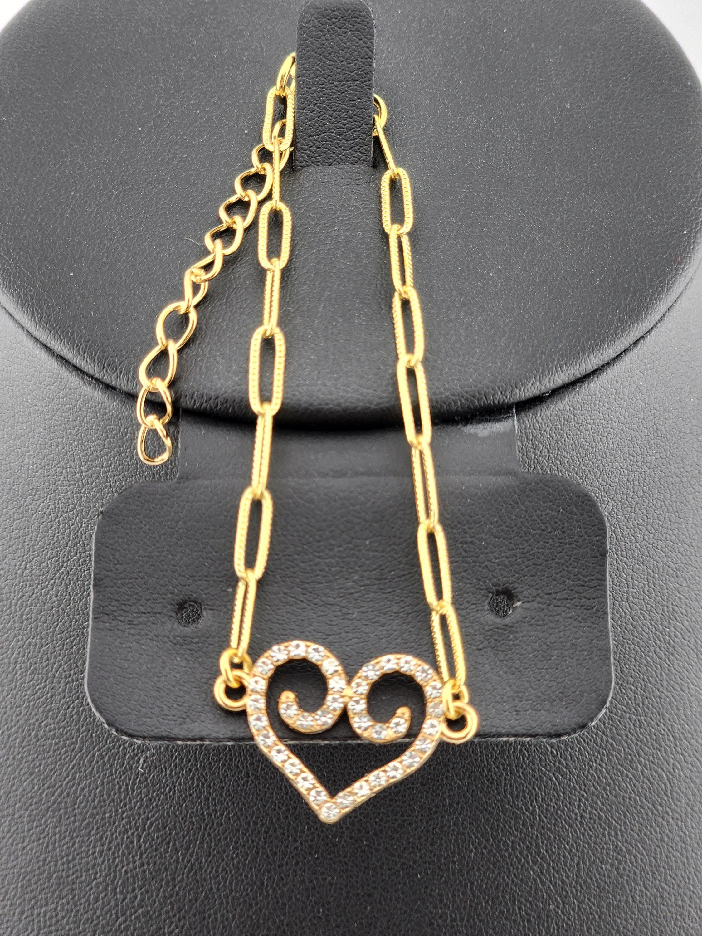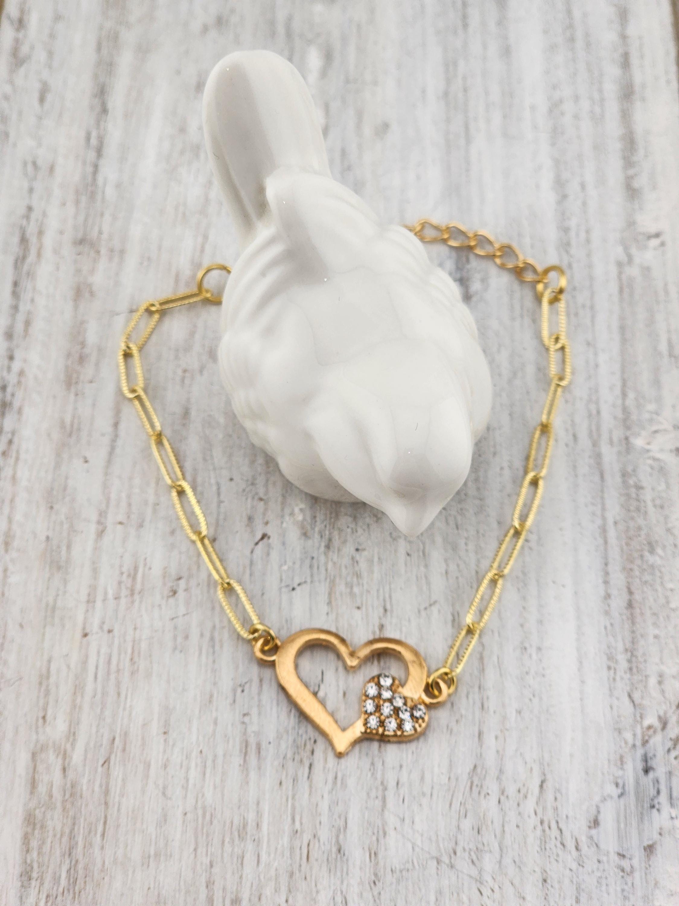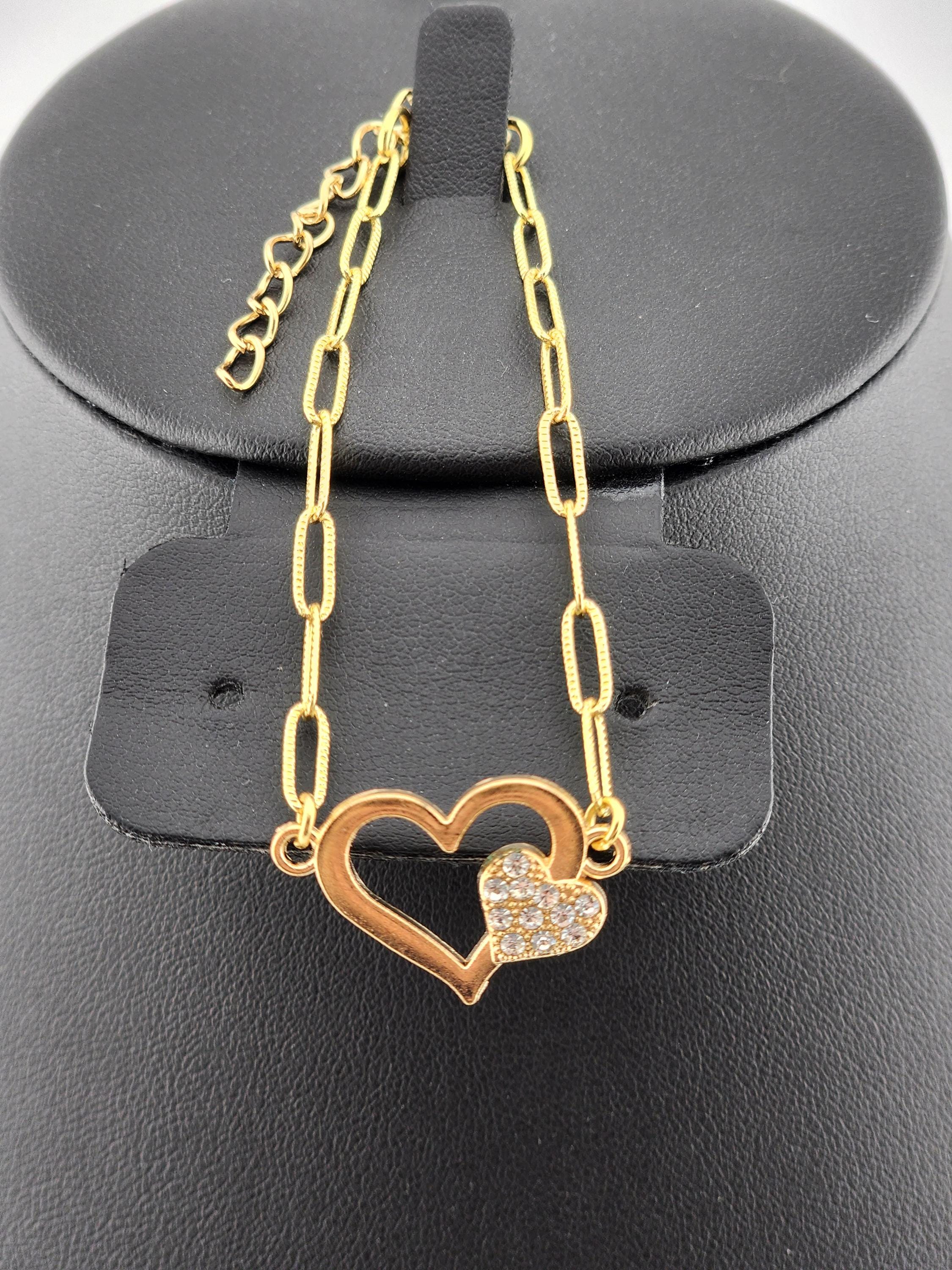 I made these 9 different bracelets using tarnish resistant light 18k gold plated brass curb chain with extenders making them adjustable from any length, up to 8.5" inches. Each bracelet has a unique heart connector. * These bracelets are perfect for Valentine's Day, Anniversary, Birthday, etec... Gifts * Your purchase will arrive in pretty packaging