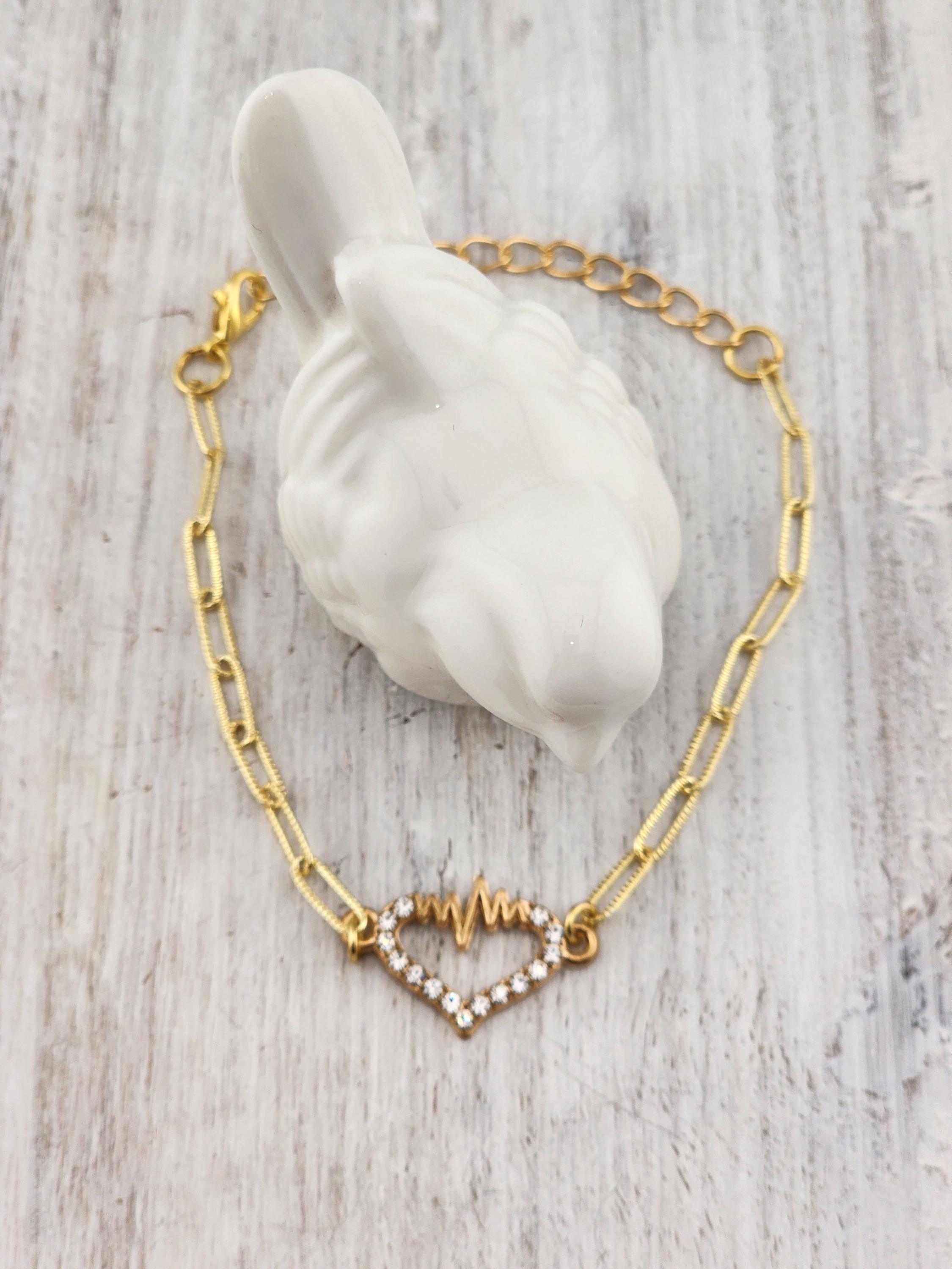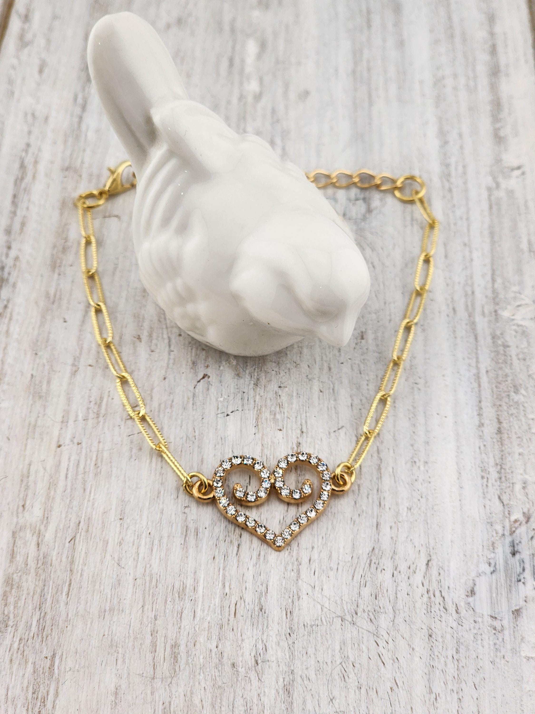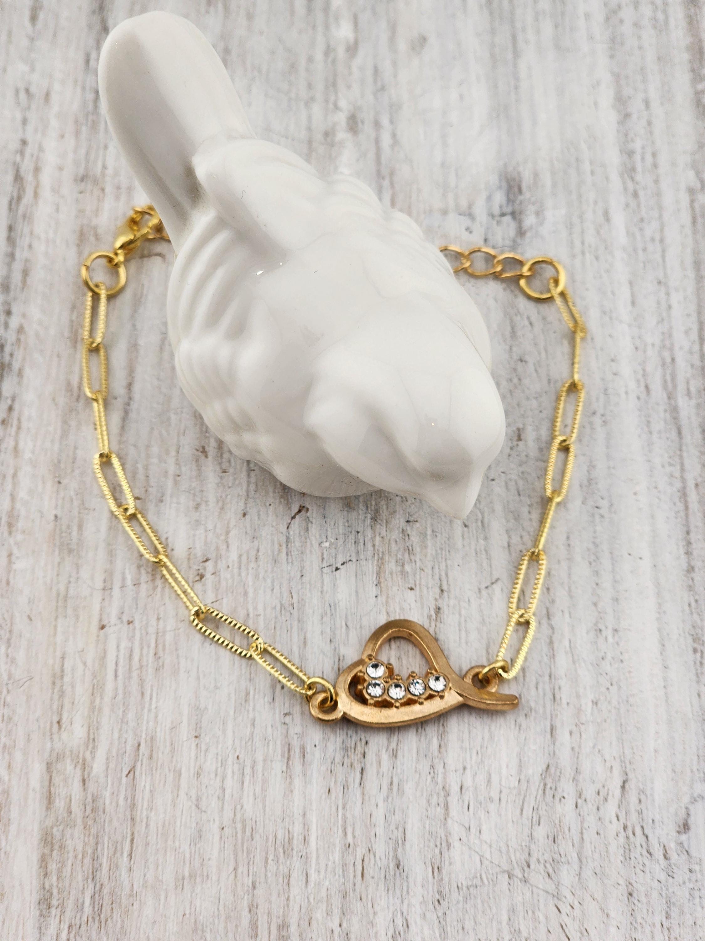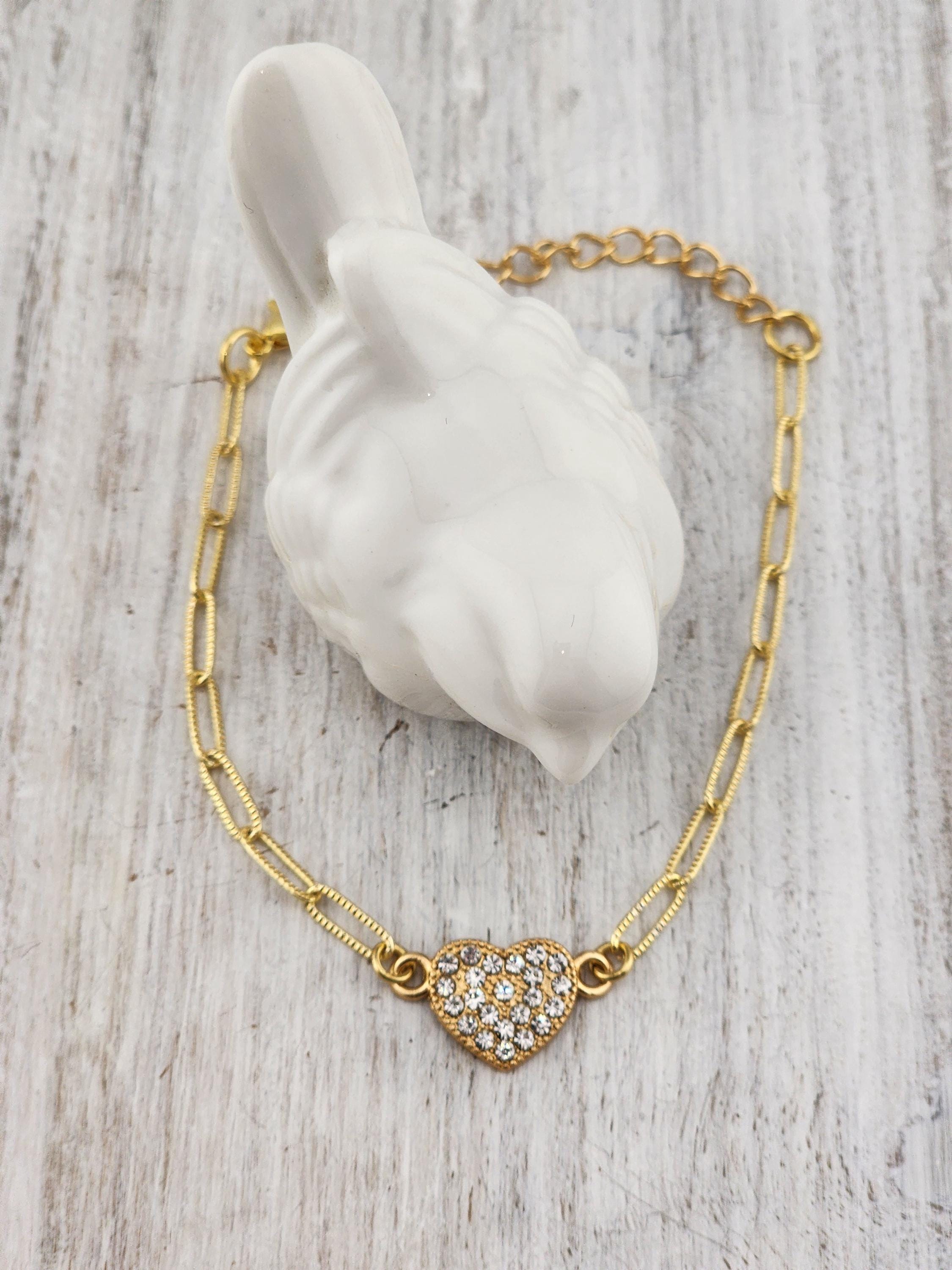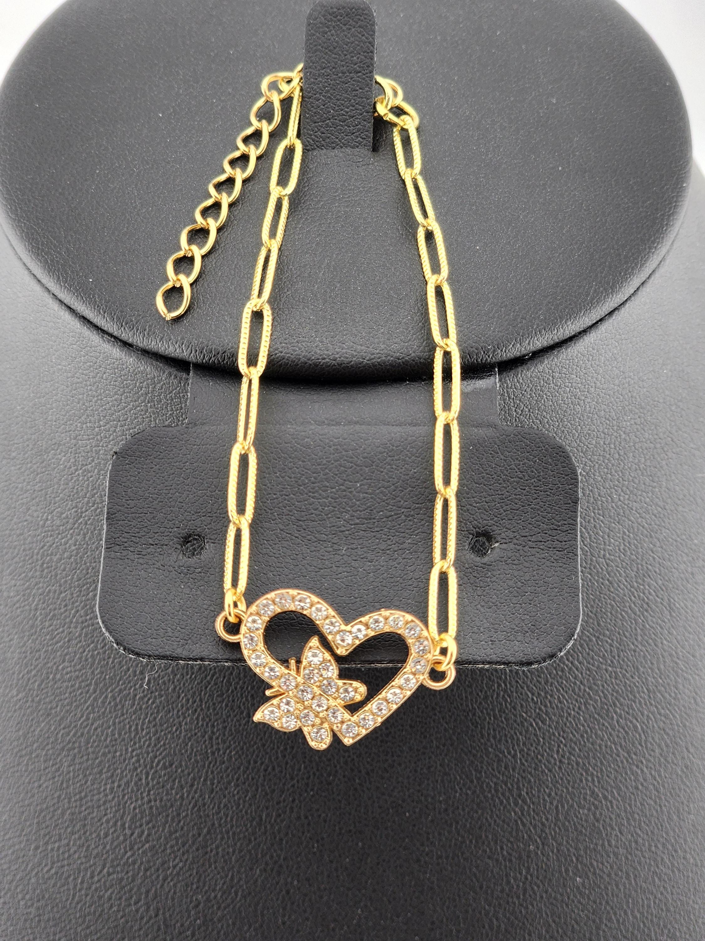 I made these 9 different bracelets using tarnish resistant light 18k gold plated brass curb chain with extenders making them adjustable from any length, up to 8.5" inches. Each bracelet has a unique heart connector. * These bracelets are perfect for Valentine's Day, Anniversary, Birthday, etec... Gifts * Your purchase will arrive in pretty packaging