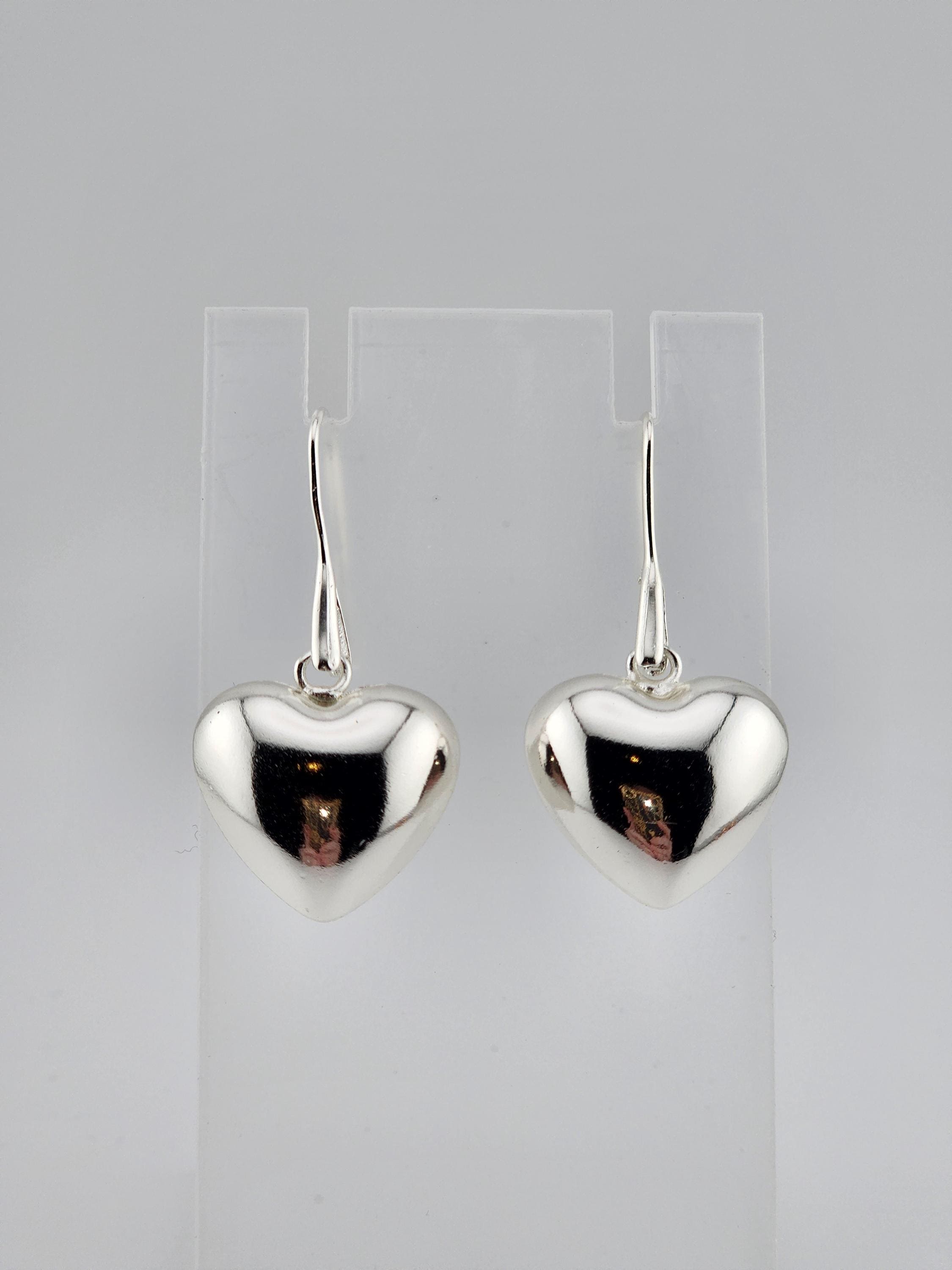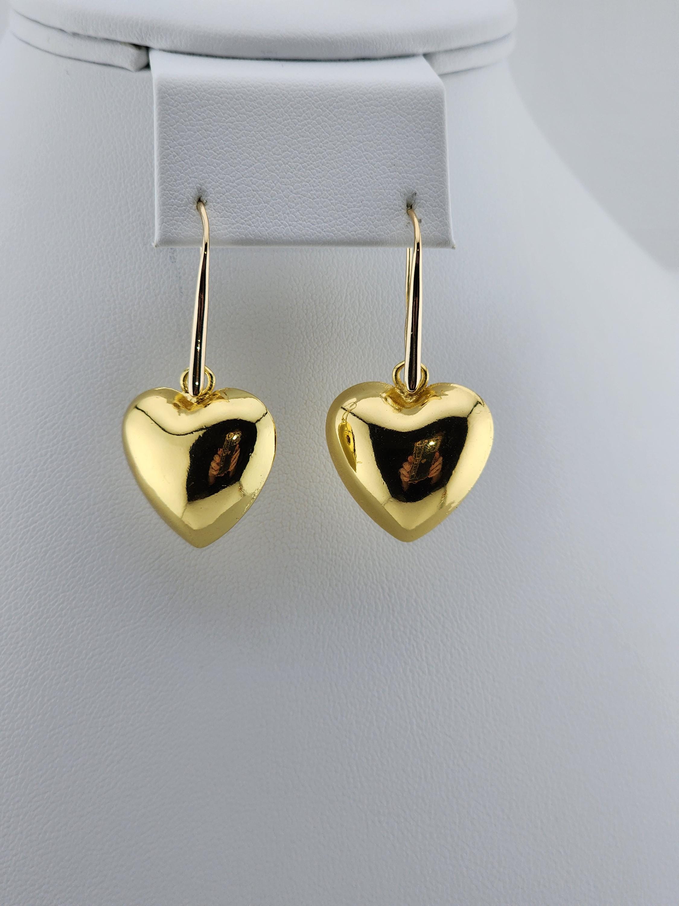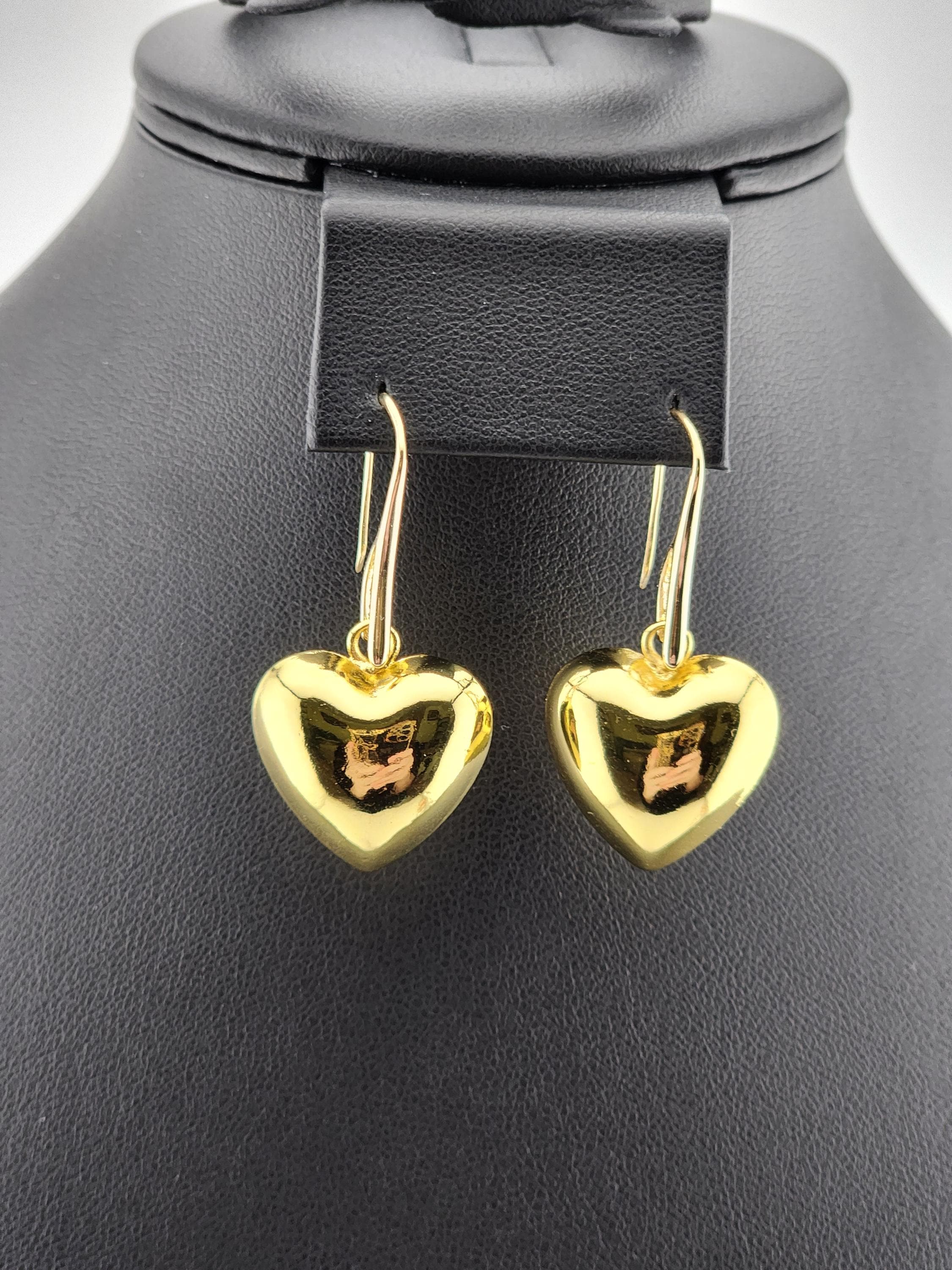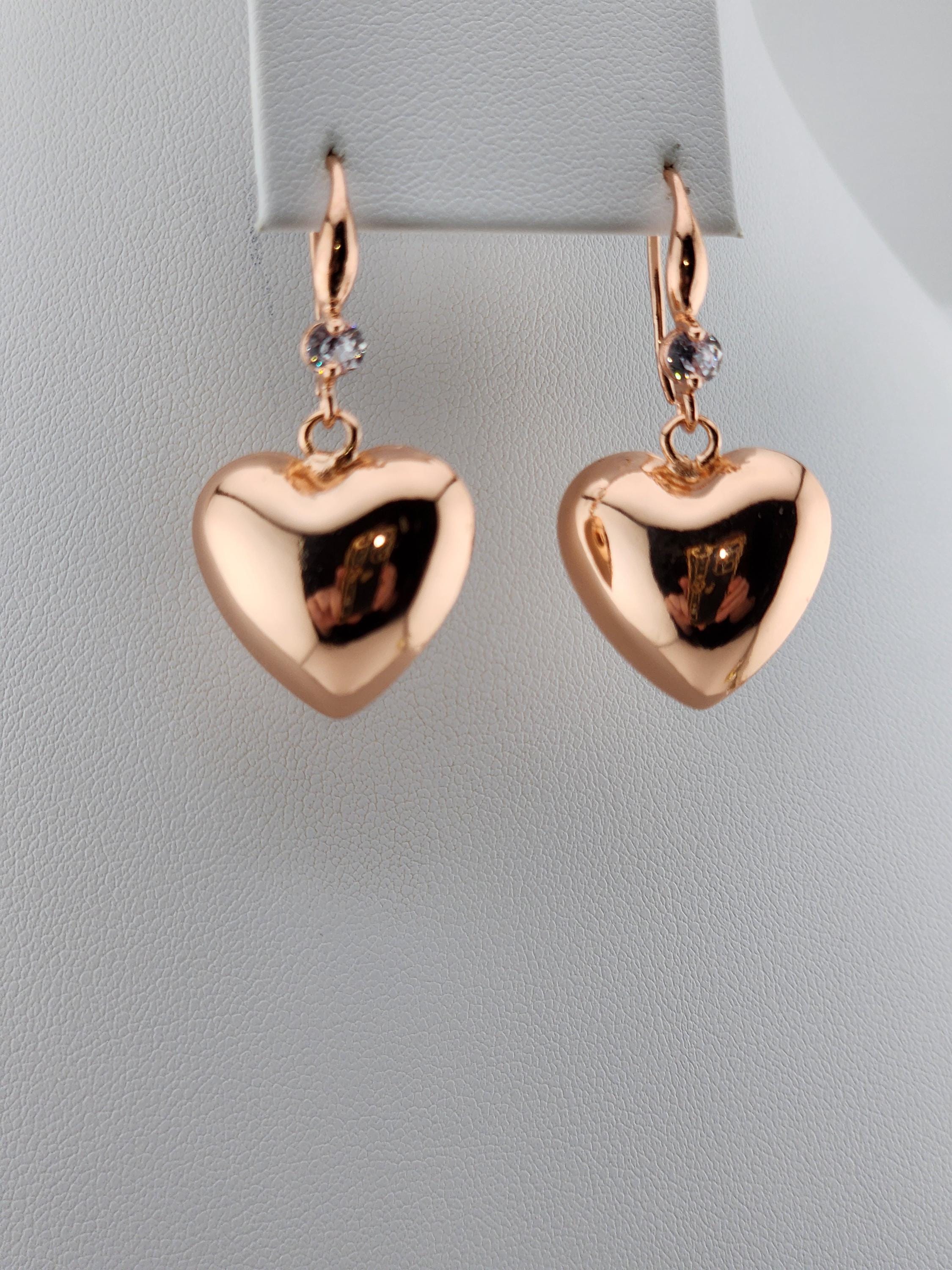 I made these earrings using rose gold plated sterling silver and crystal hooks, sterling silver plated brass hooks, and 24k gold plated brass hooks. I've added medium sized puffy heart charms to choose from. YOUR CHOICES ARE: #1- Rose Gold plated brass #2- Sterling Silver plated brass #3- 18k Gold plated brass ❤️Your purchase will arrive in pretty packaging ❤️These romantic heart charms are a representation of warmth and passion. * SIZE: 20x20.5x10mm