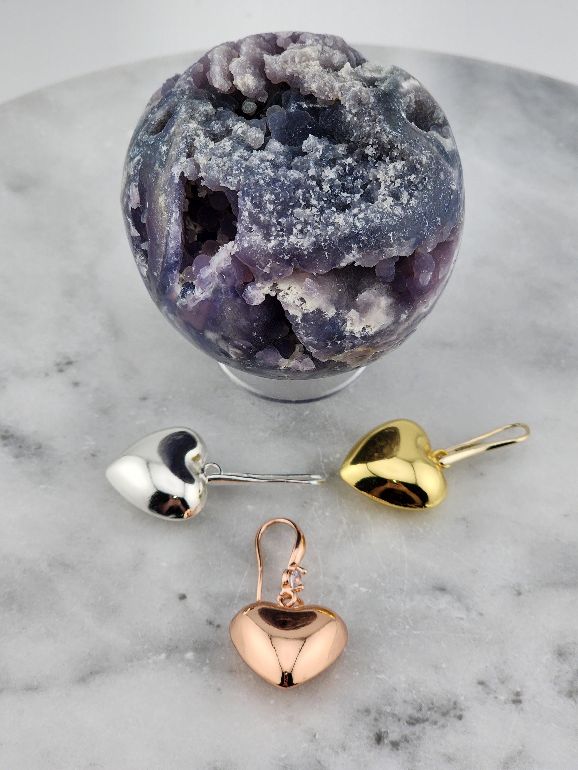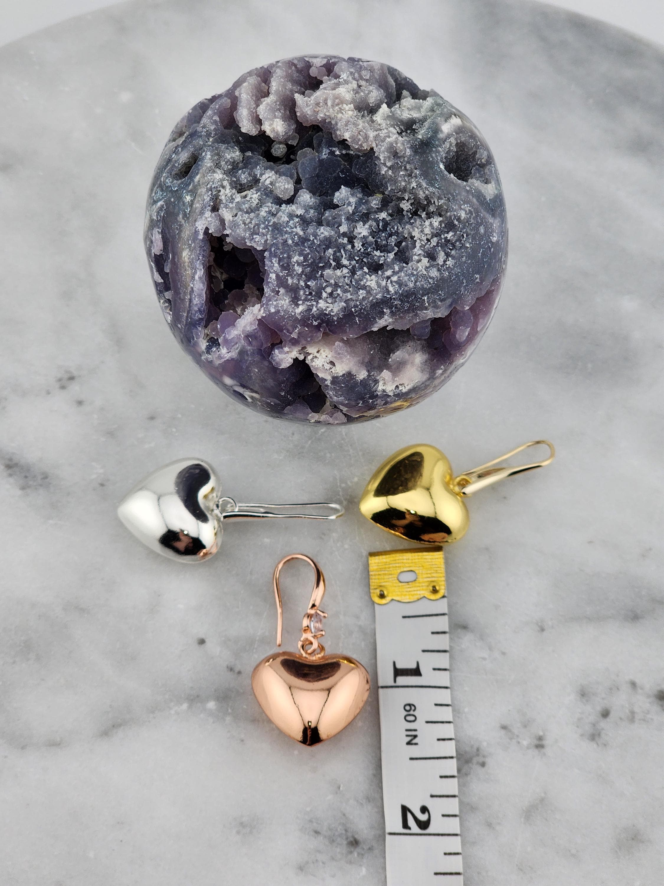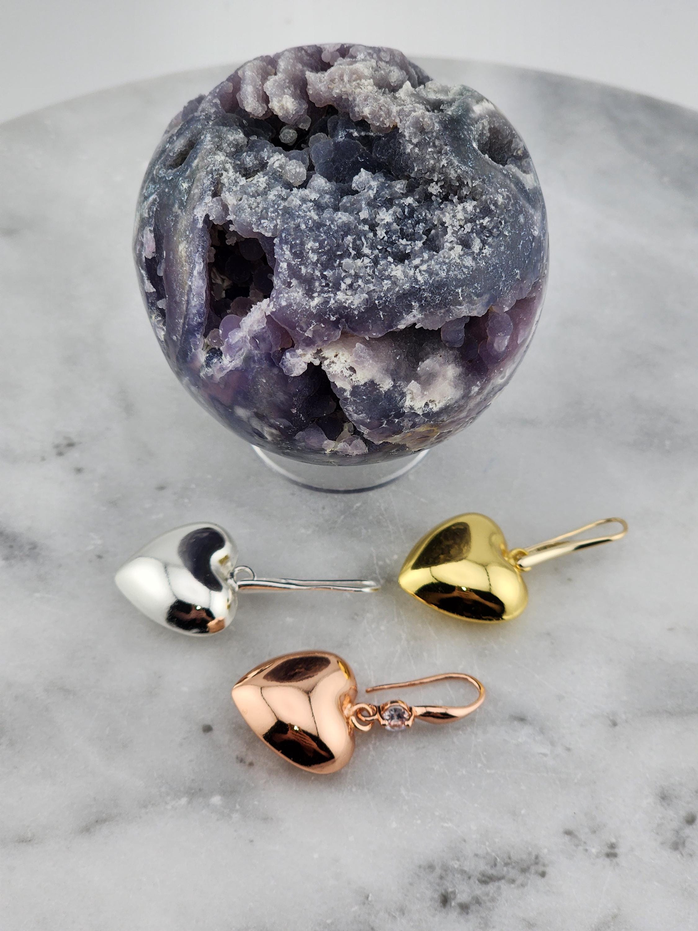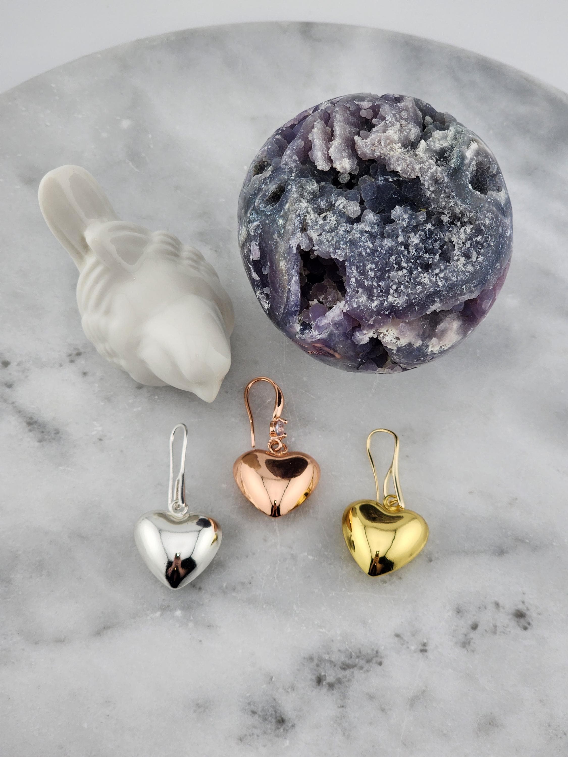 I made these earrings using rose gold plated sterling silver and crystal hooks, sterling silver plated brass hooks, and 24k gold plated brass hooks. I've added medium sized puffy heart charms to choose from. YOUR CHOICES ARE: #1- Rose Gold plated brass #2- Sterling Silver plated brass #3- 18k Gold plated brass ❤️Your purchase will arrive in pretty packaging ❤️These romantic heart charms are a representation of warmth and passion. * SIZE: 20x20.5x10mm
