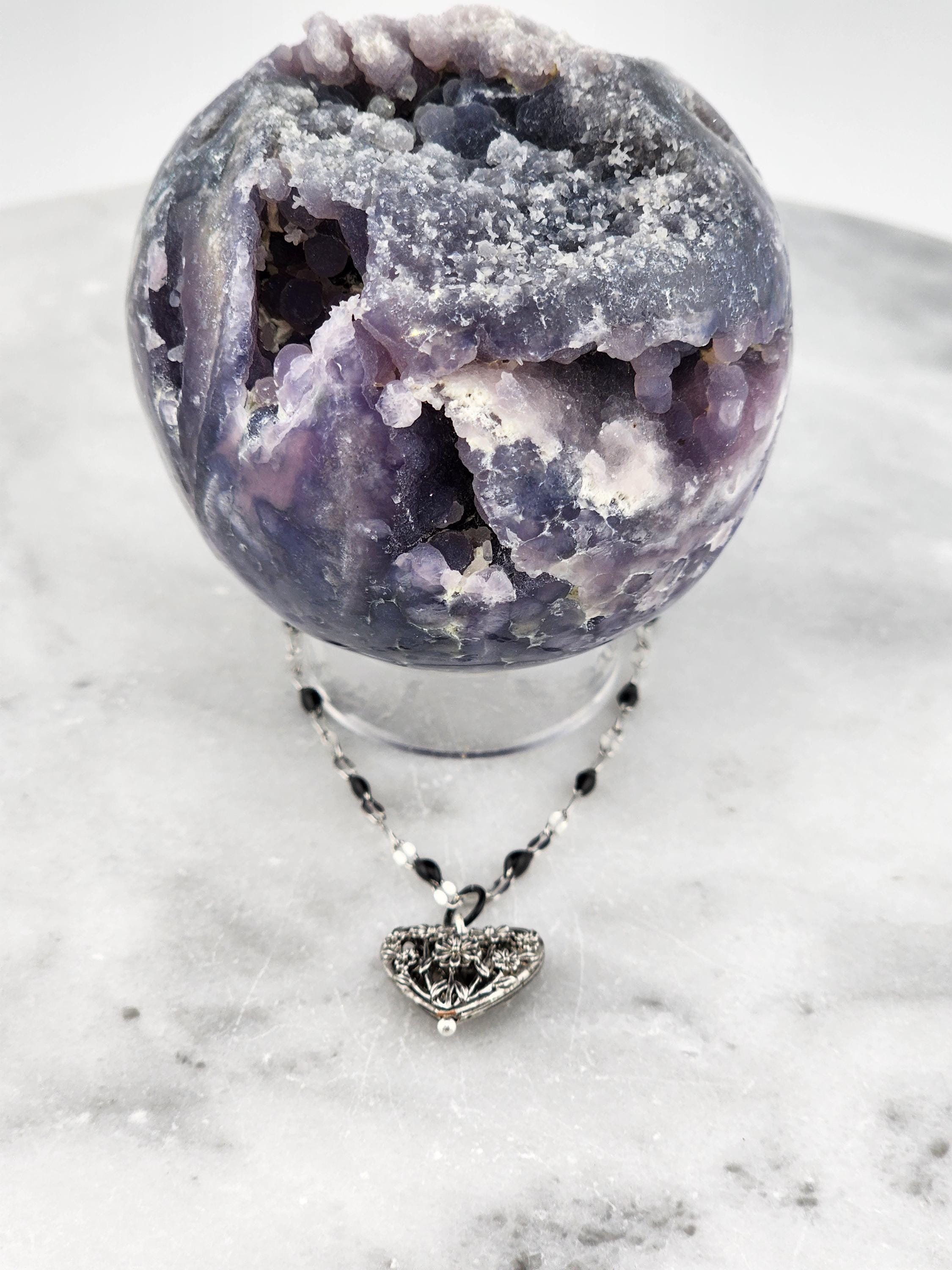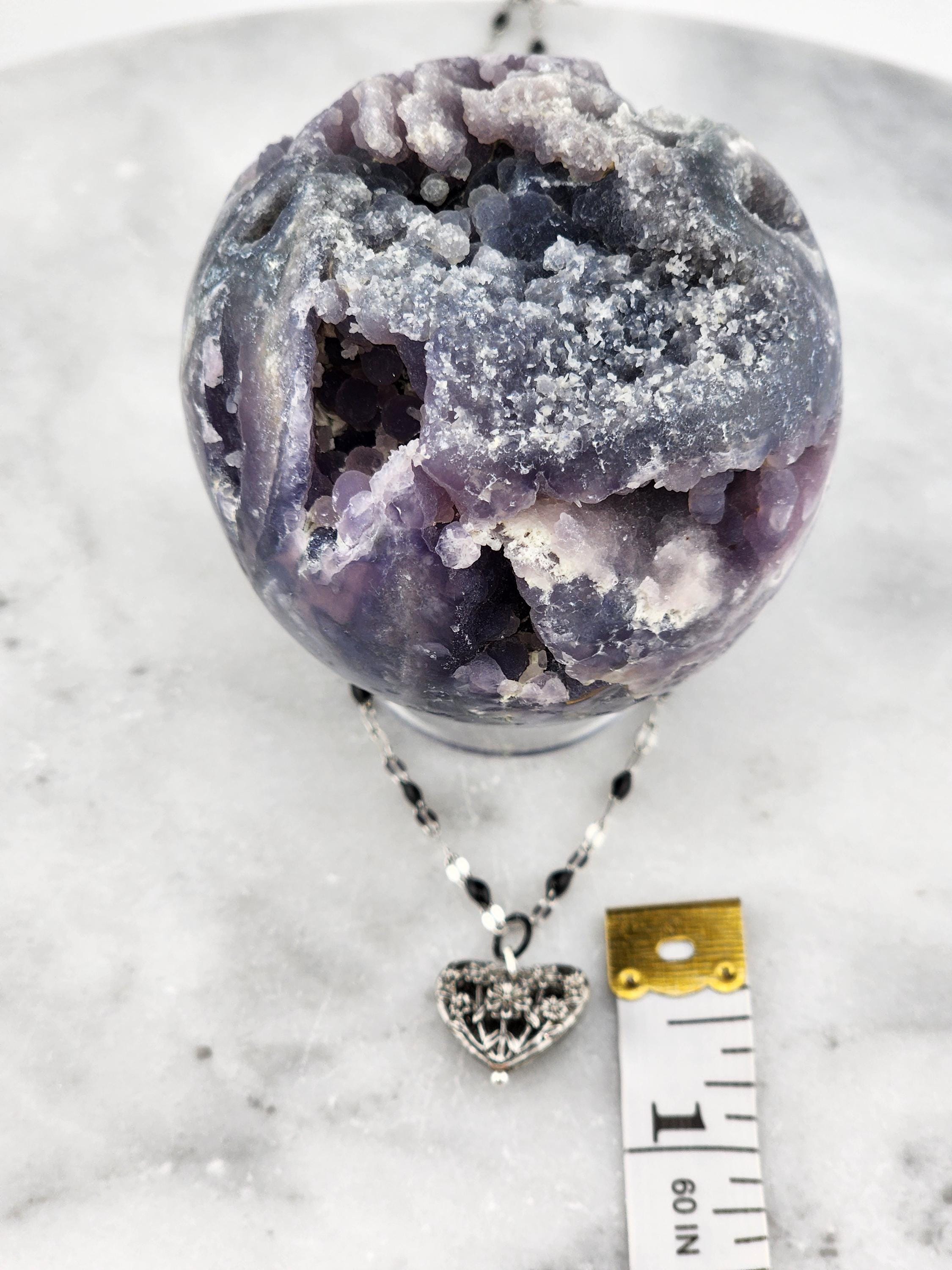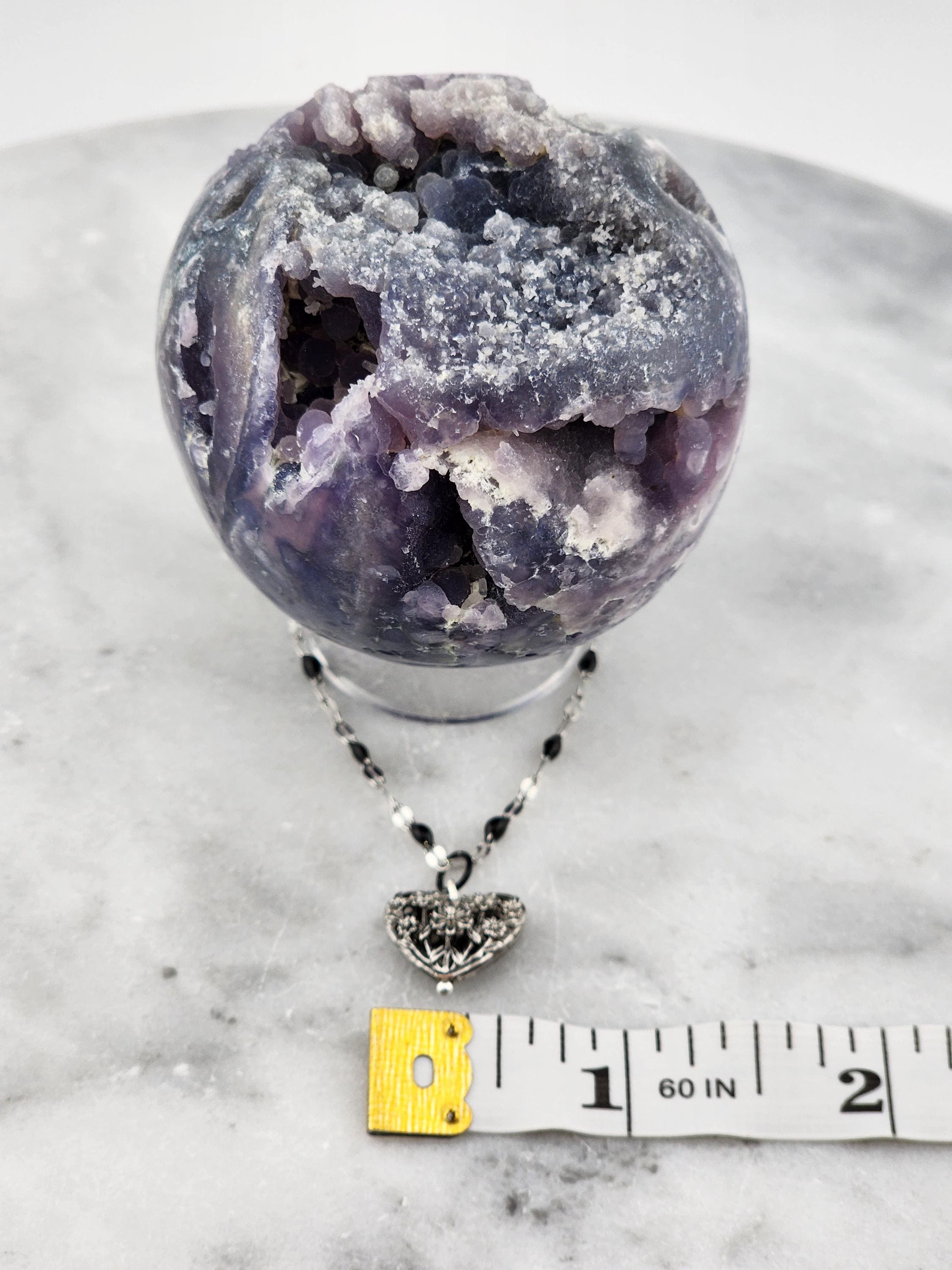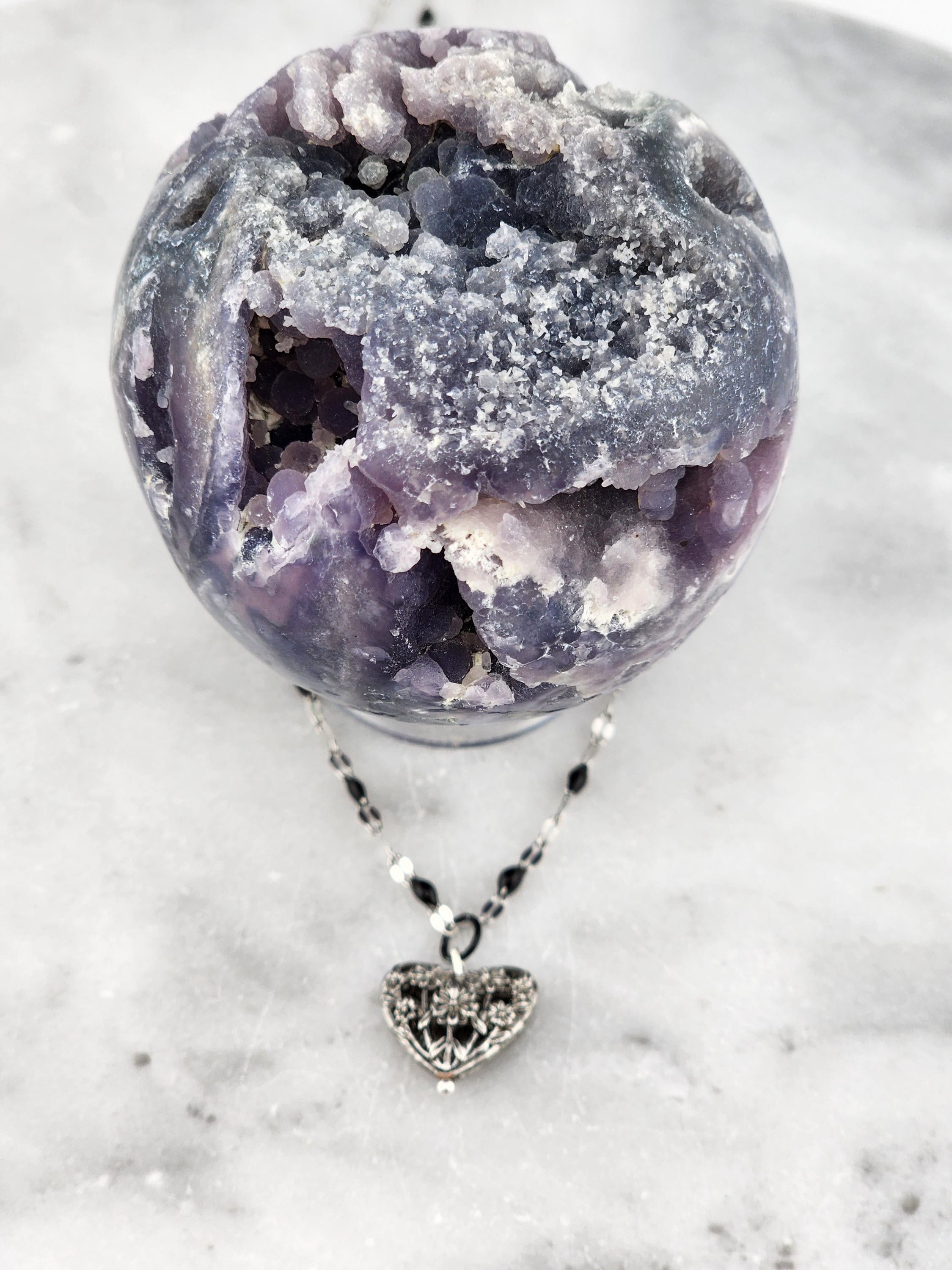 I made this necklace using silver stainless steel and black enamel link chain with an extender making it adjustable from 20"-22" in length. I added a real silver filigree flower heart pendant with a sterling silver center pin. * Your purchase will arrive in pretty packaging NOTE: Because it is real silver, the pendant will tarnish over time (there's no getting around that), but a silver polishing cloth should suffice for cleaning and keeping it bright.