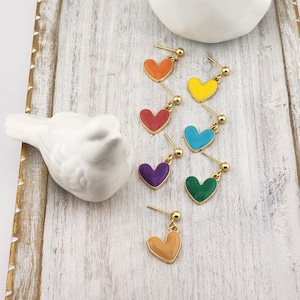 I made these earrings using silver surgical steel locking long threader hooks. Then I added Valentine's Day 'LOVE' conversation candy heart resin charms in 6 different colors.