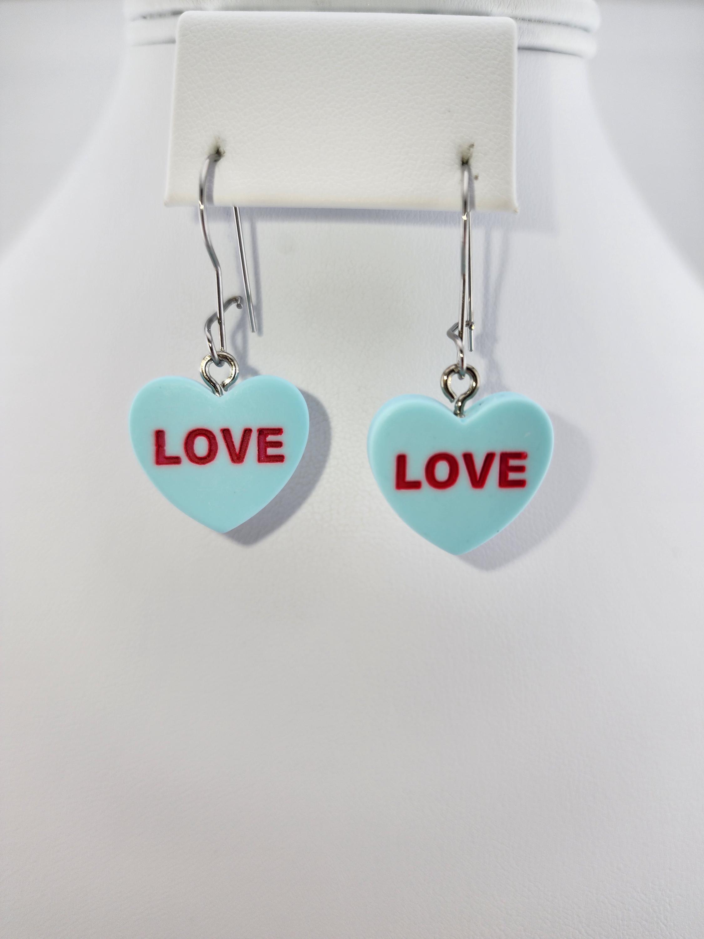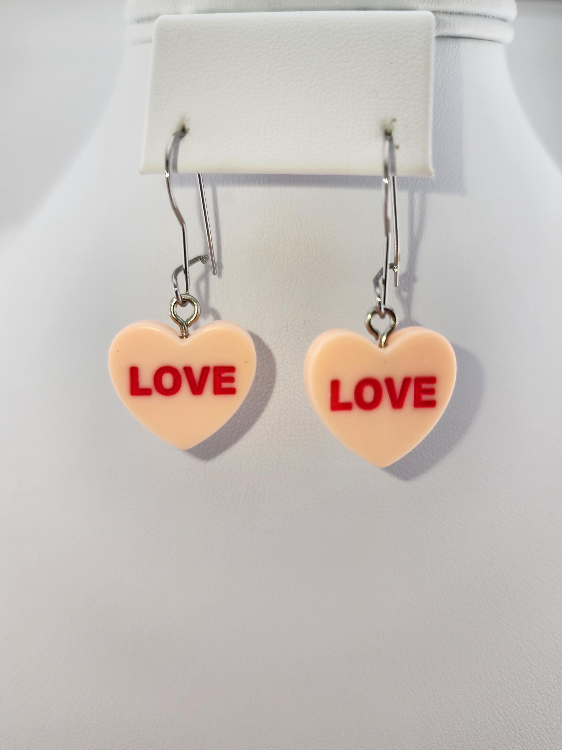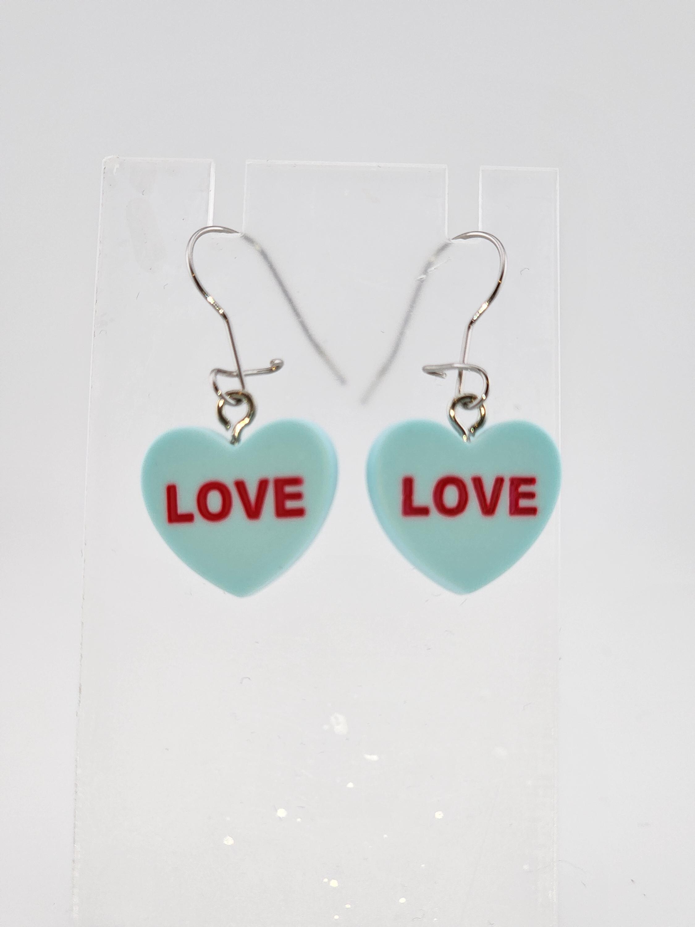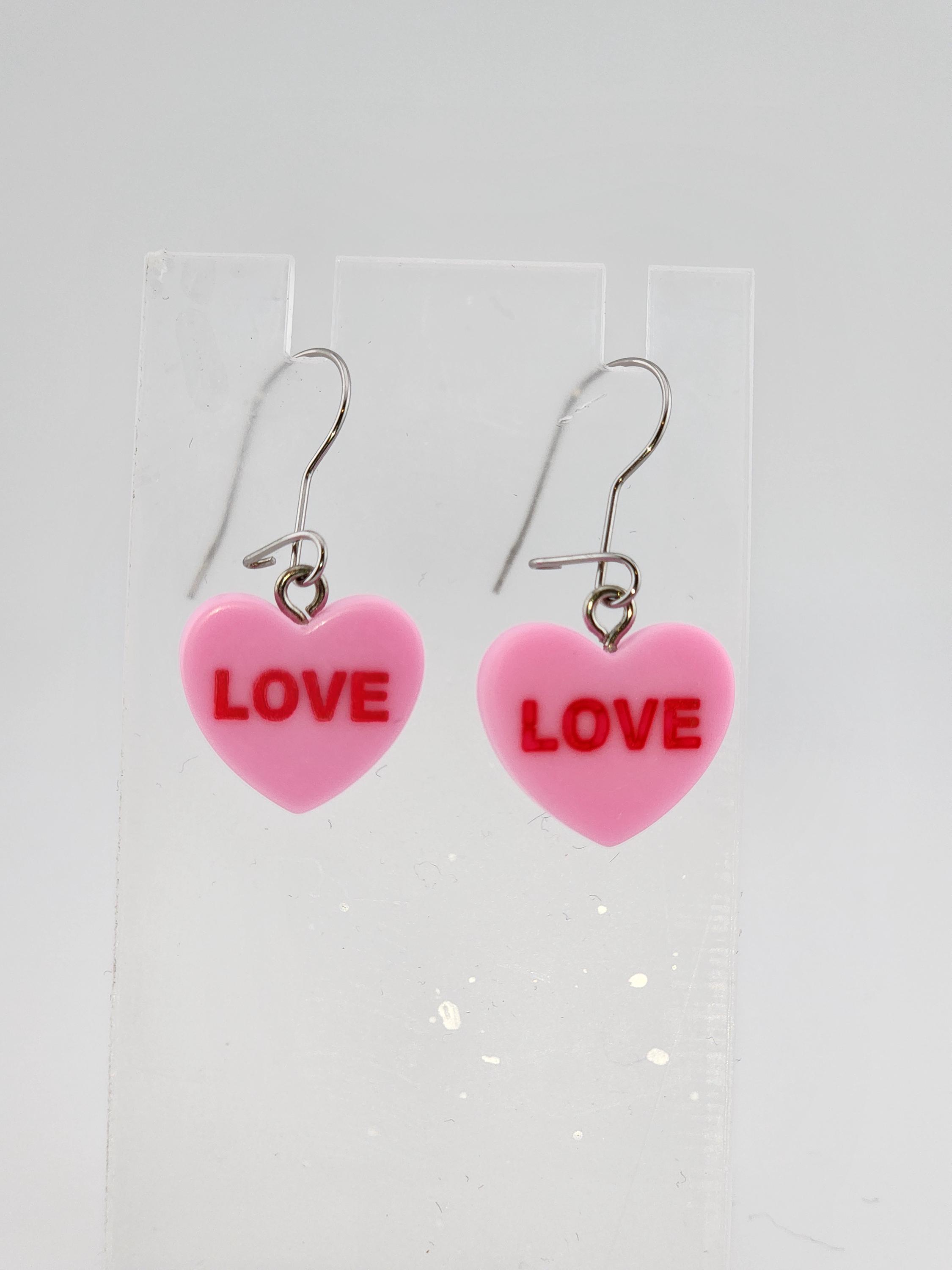 Valentine's Day 'LOVE' Conversation Candy Heart Charms on Silver Earrings