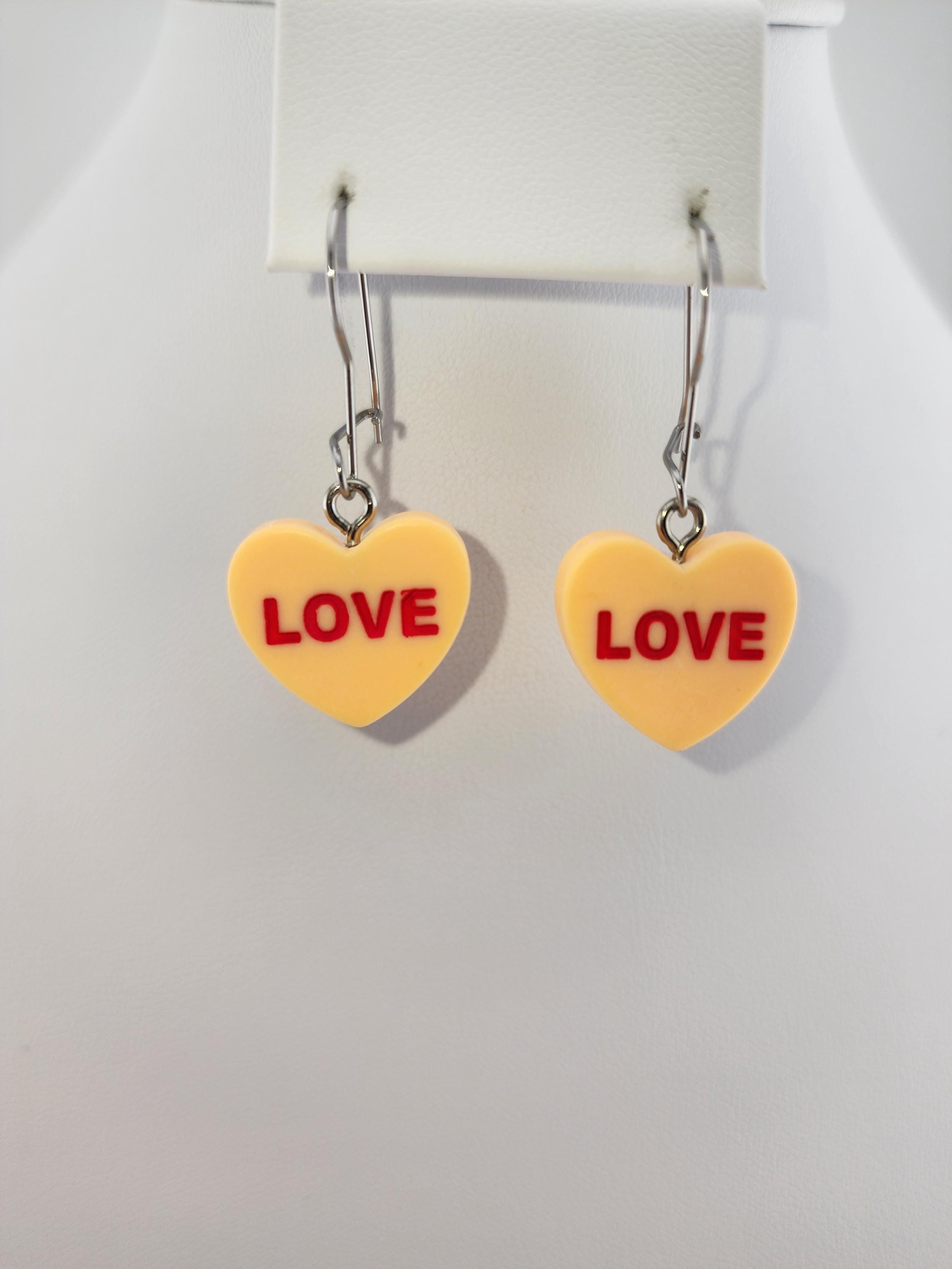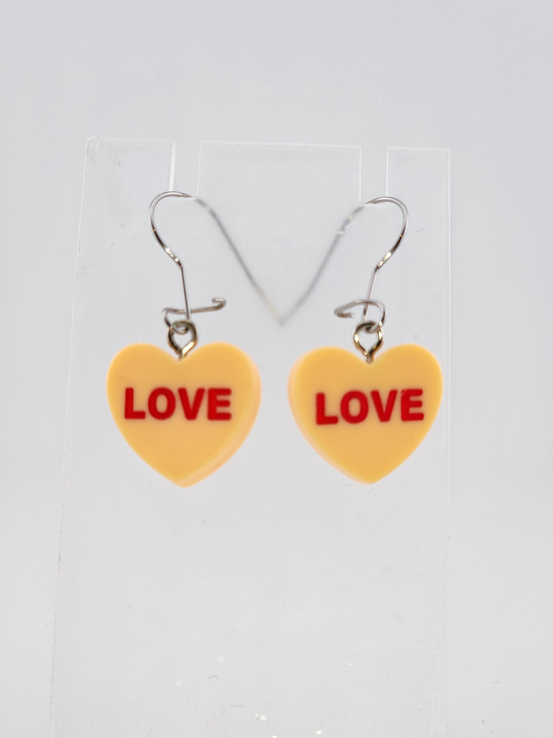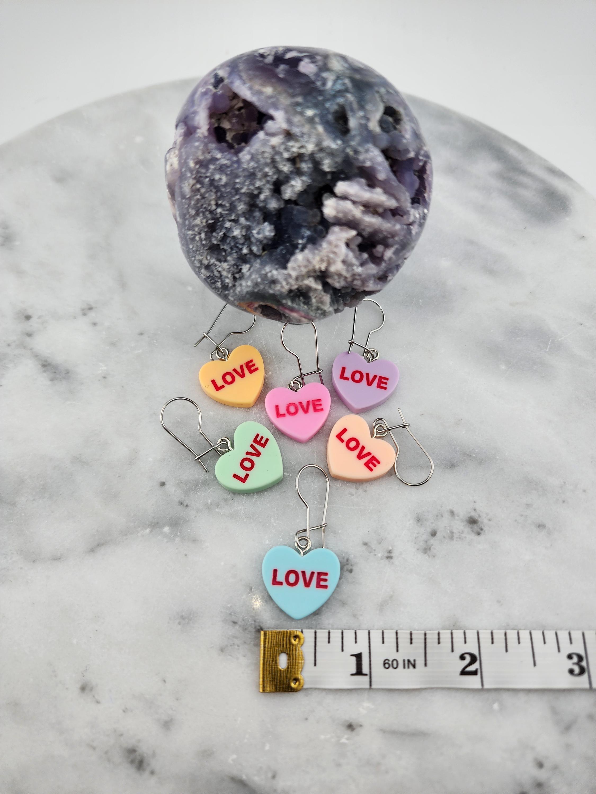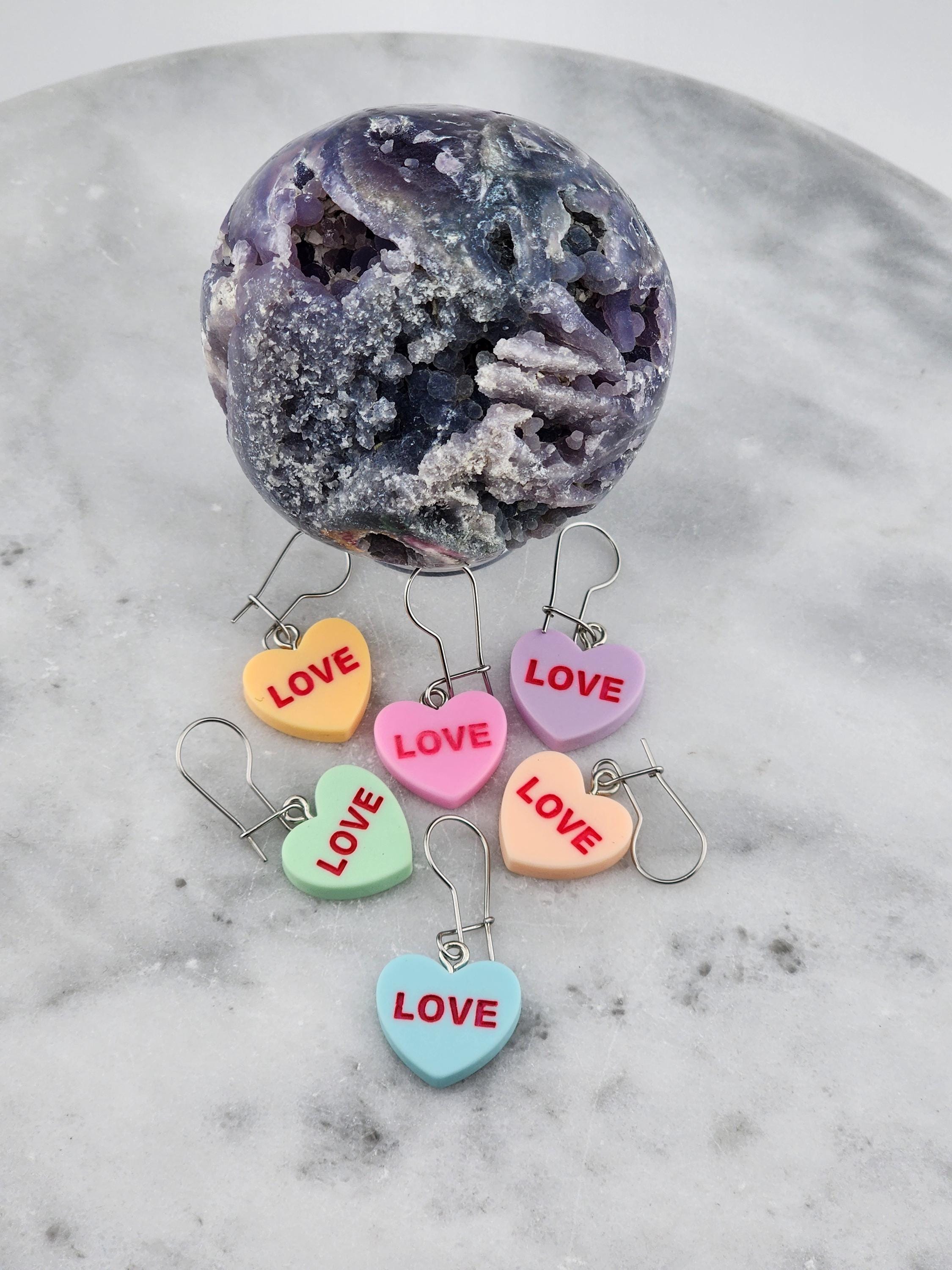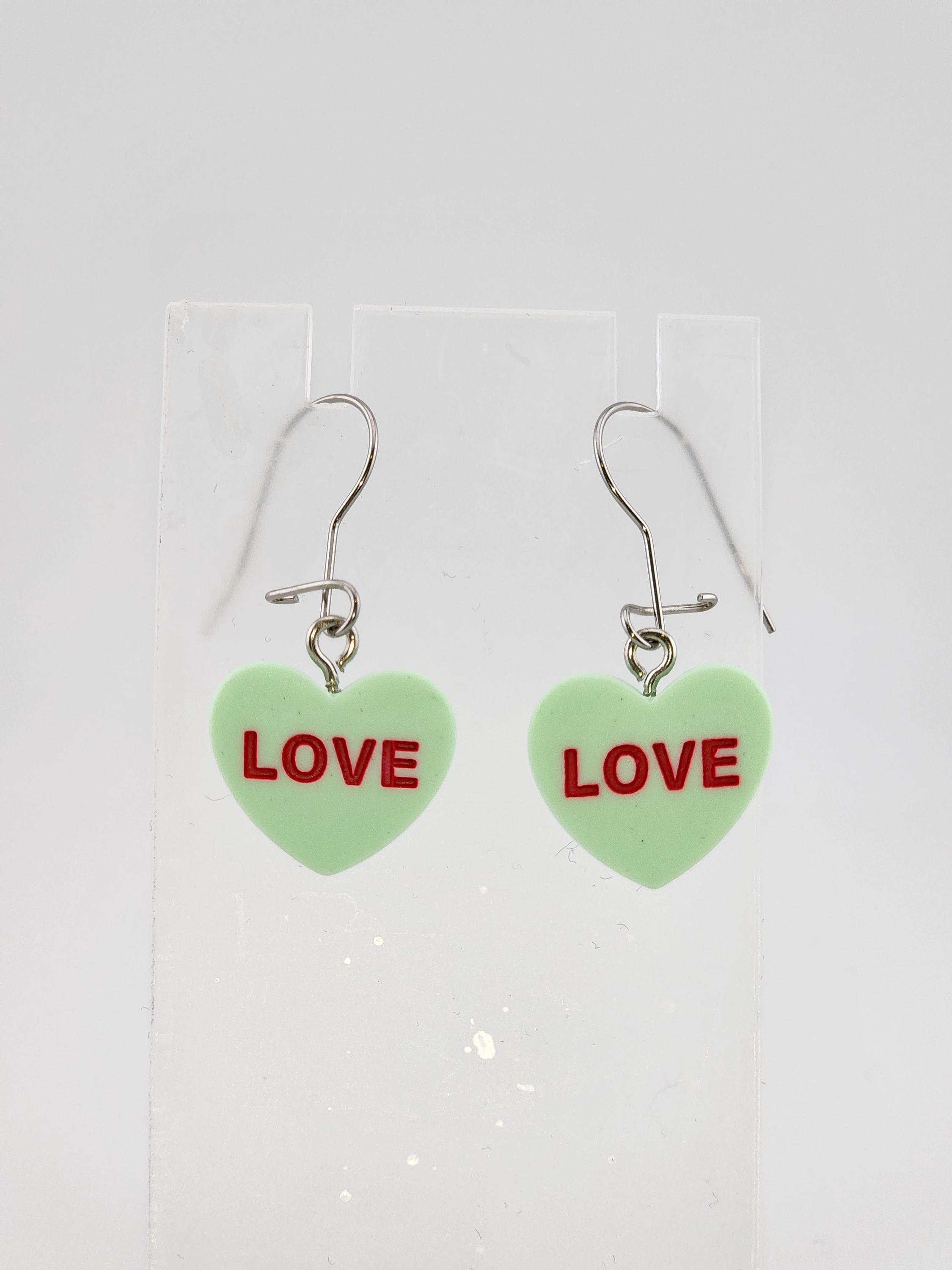 Valentine's Day 'LOVE' Conversation Candy Heart Charms on Silver Earrings