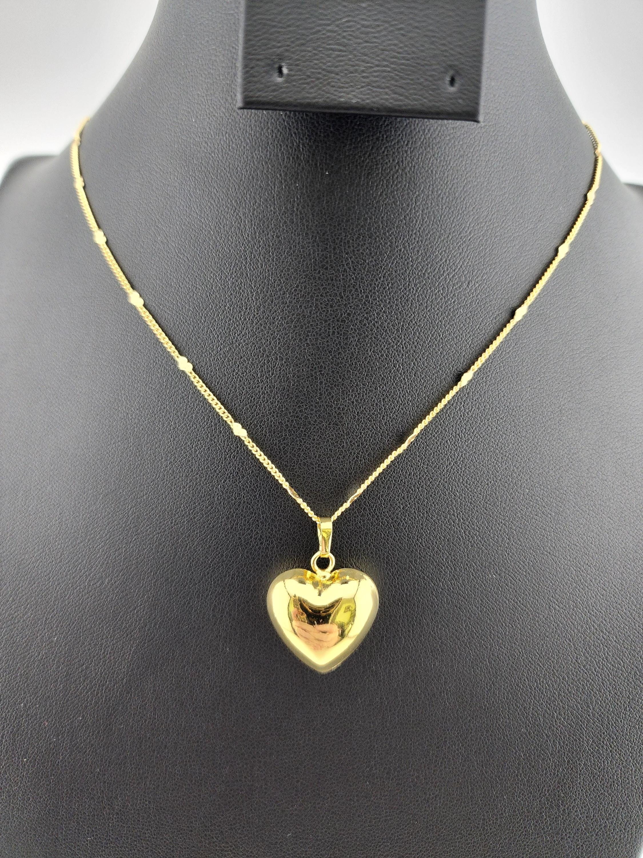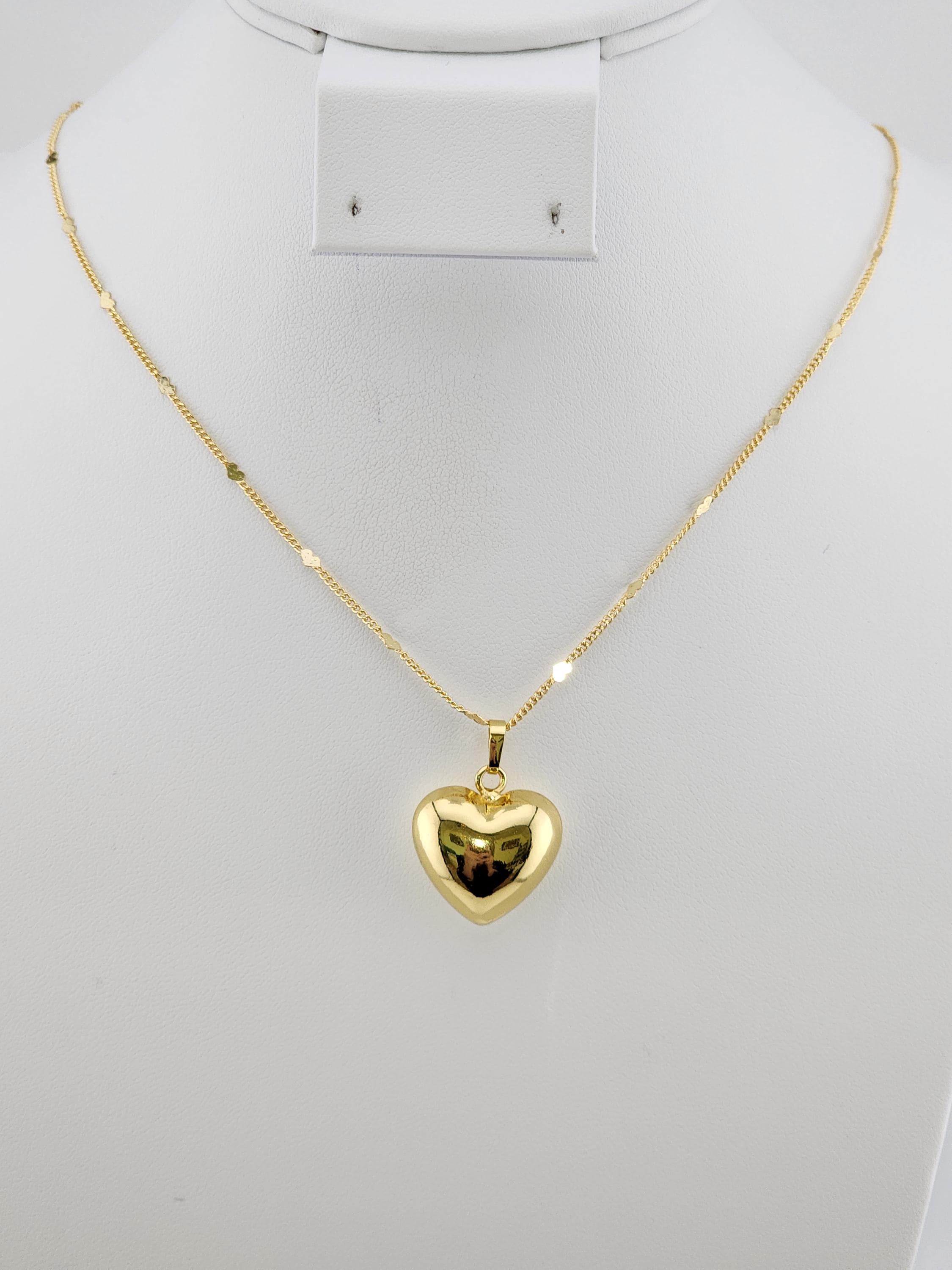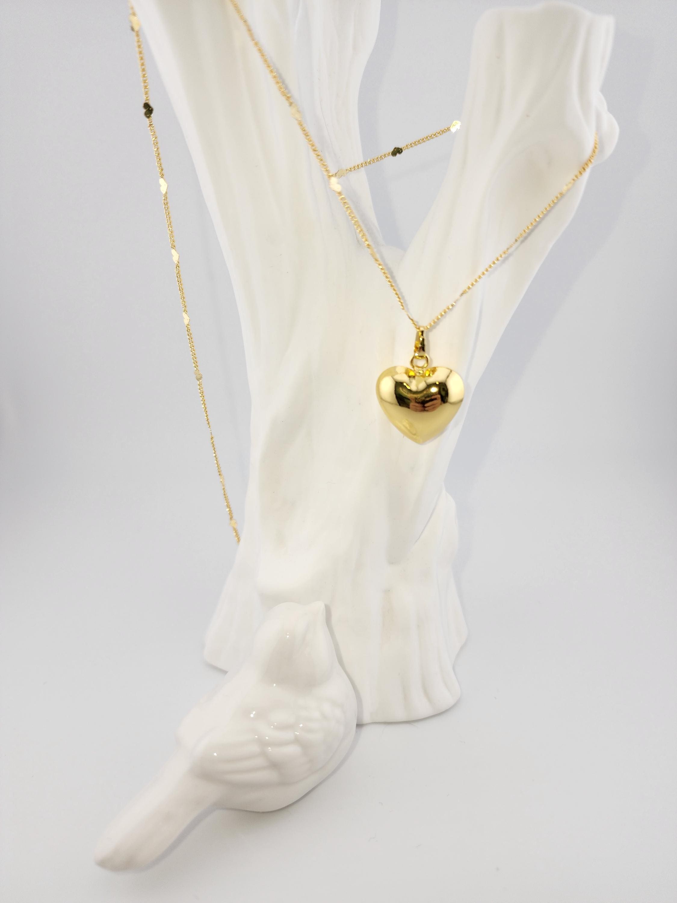 I made this necklace using gold stainless steel heart sequin chain with an extender making it adjustable from 20"-22" in length. Then I added a tarnish resistant 18K gold plated brass large puffy love pendant. * Your purchase will arrive in pretty packaging SIZE: 7.4x7.2x1.7cm