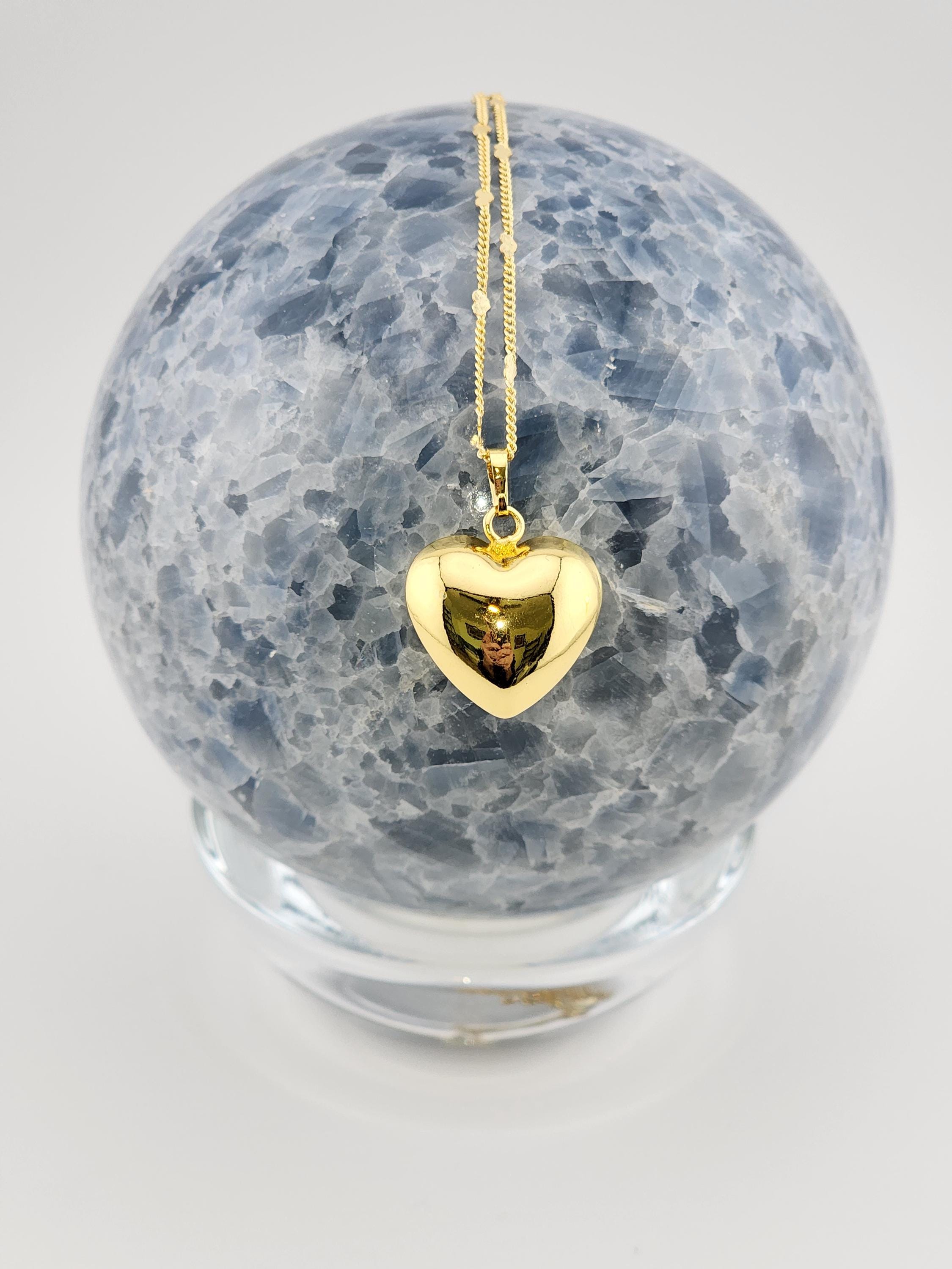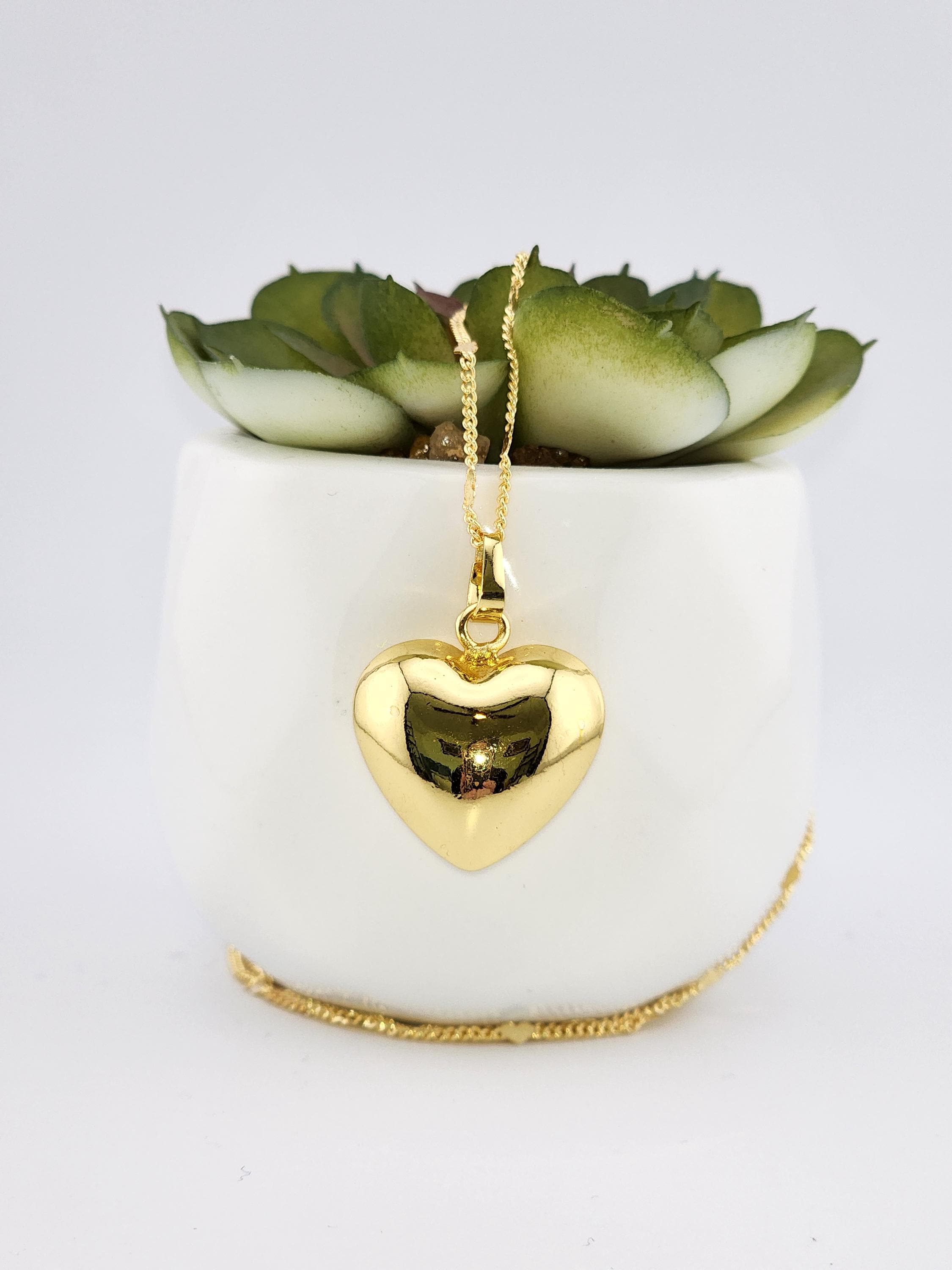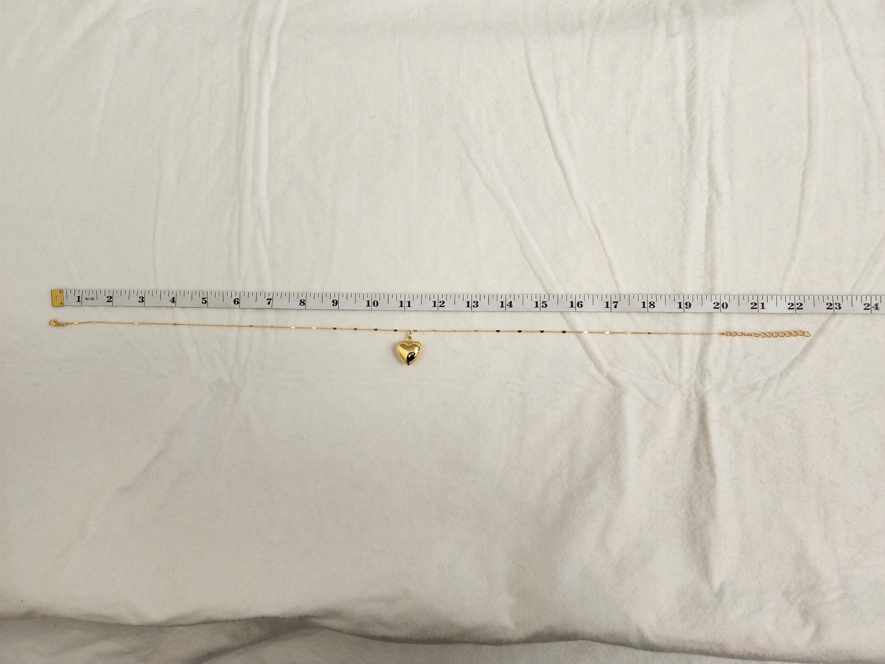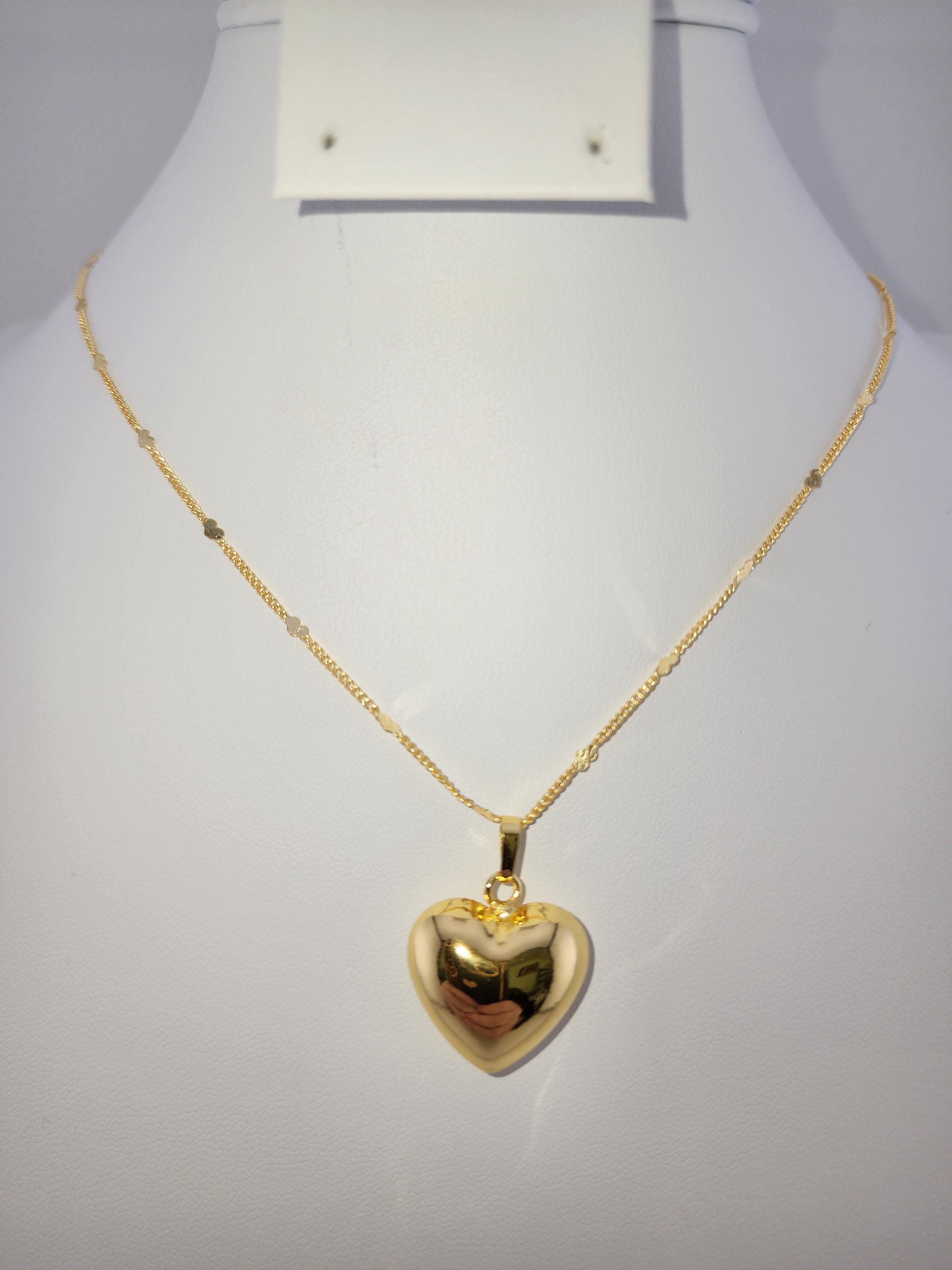 I made this necklace using gold stainless steel heart sequin chain with an extender making it adjustable from 20"-22" in length. Then I added a tarnish resistant 18K gold plated brass large puffy love pendant. * Your purchase will arrive in pretty packaging SIZE: 7.4x7.2x1.7cm