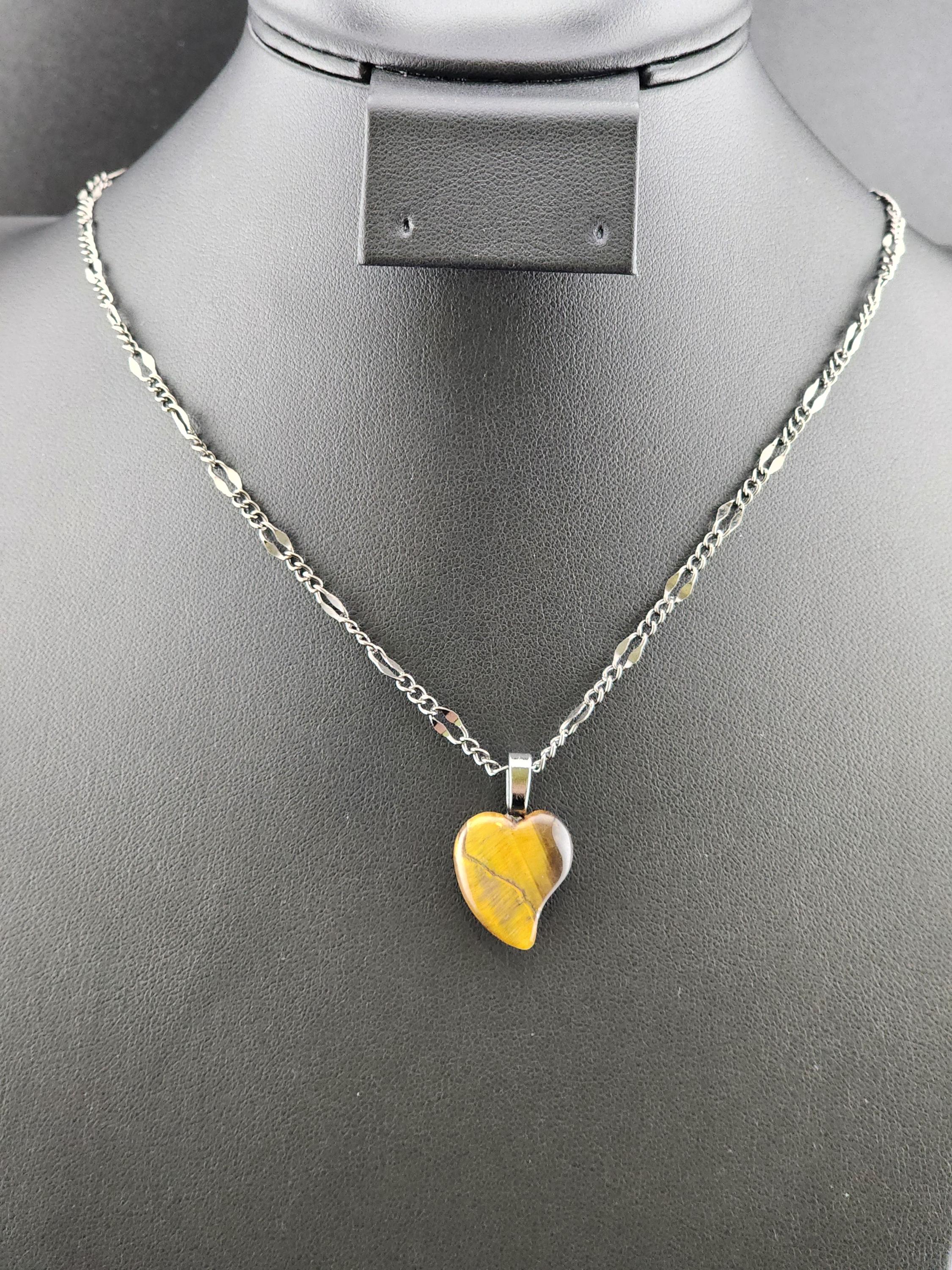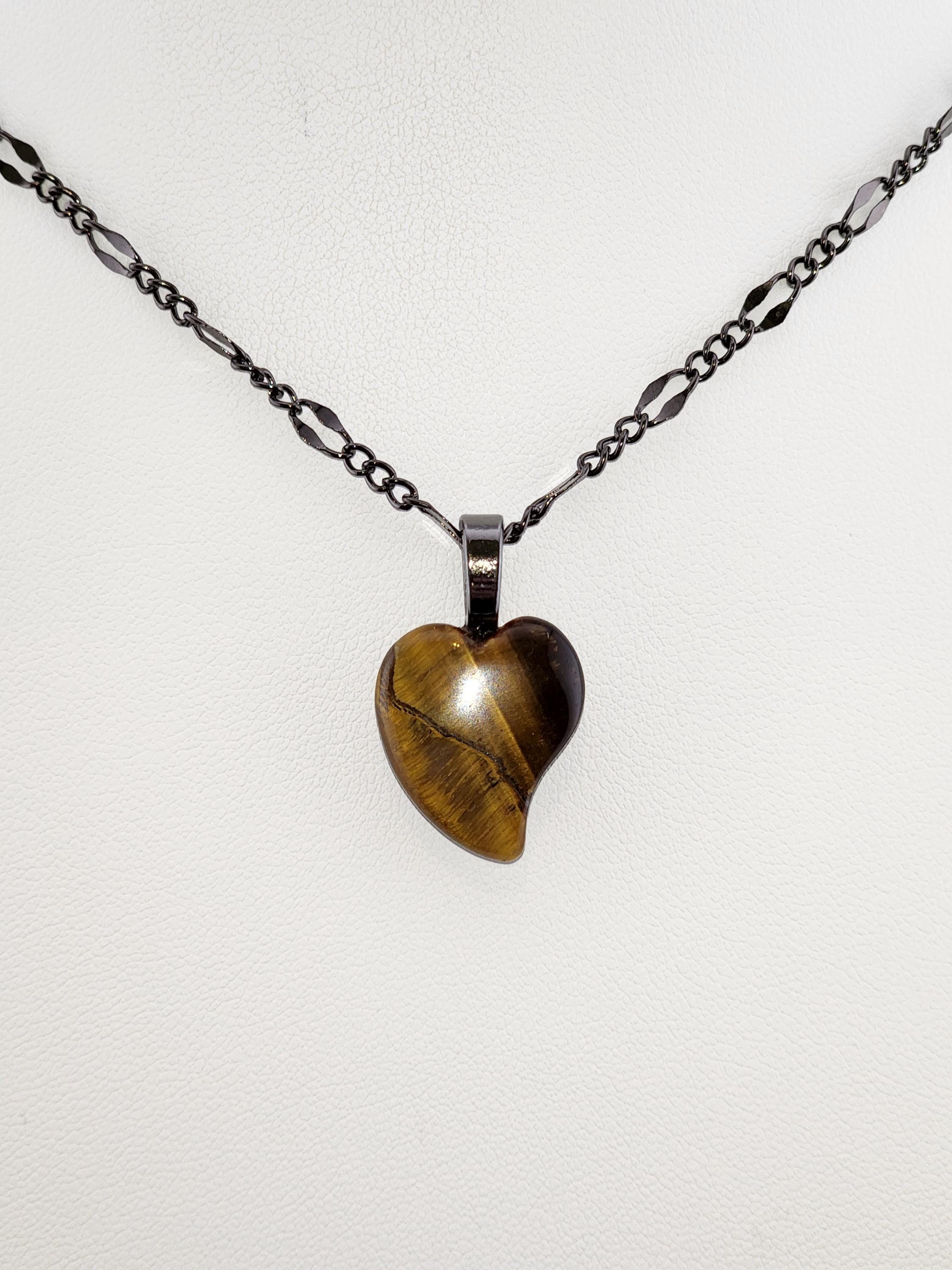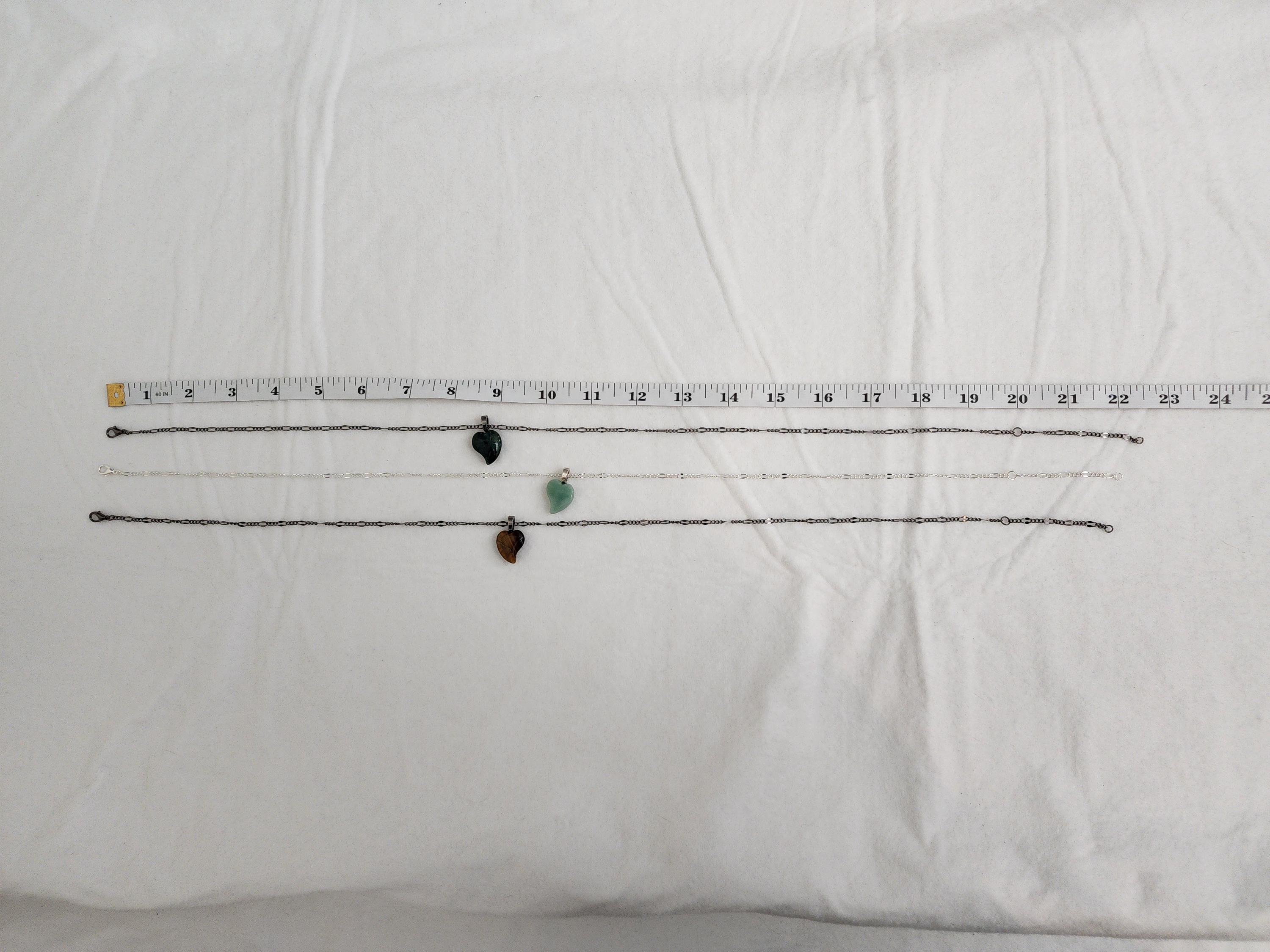 I made these necklaces using stainless steel lip chain in gunmetal gray and silver with extenders making them adjustable up to 22" long. They each have a different heart shaped semi-precious gemstone pendant. YOUR CHOICES ARE: #1- Maw-sit-sit #2- Jadeite #3- Tiger's Eye * Your purchase will arrive in pretty packaging