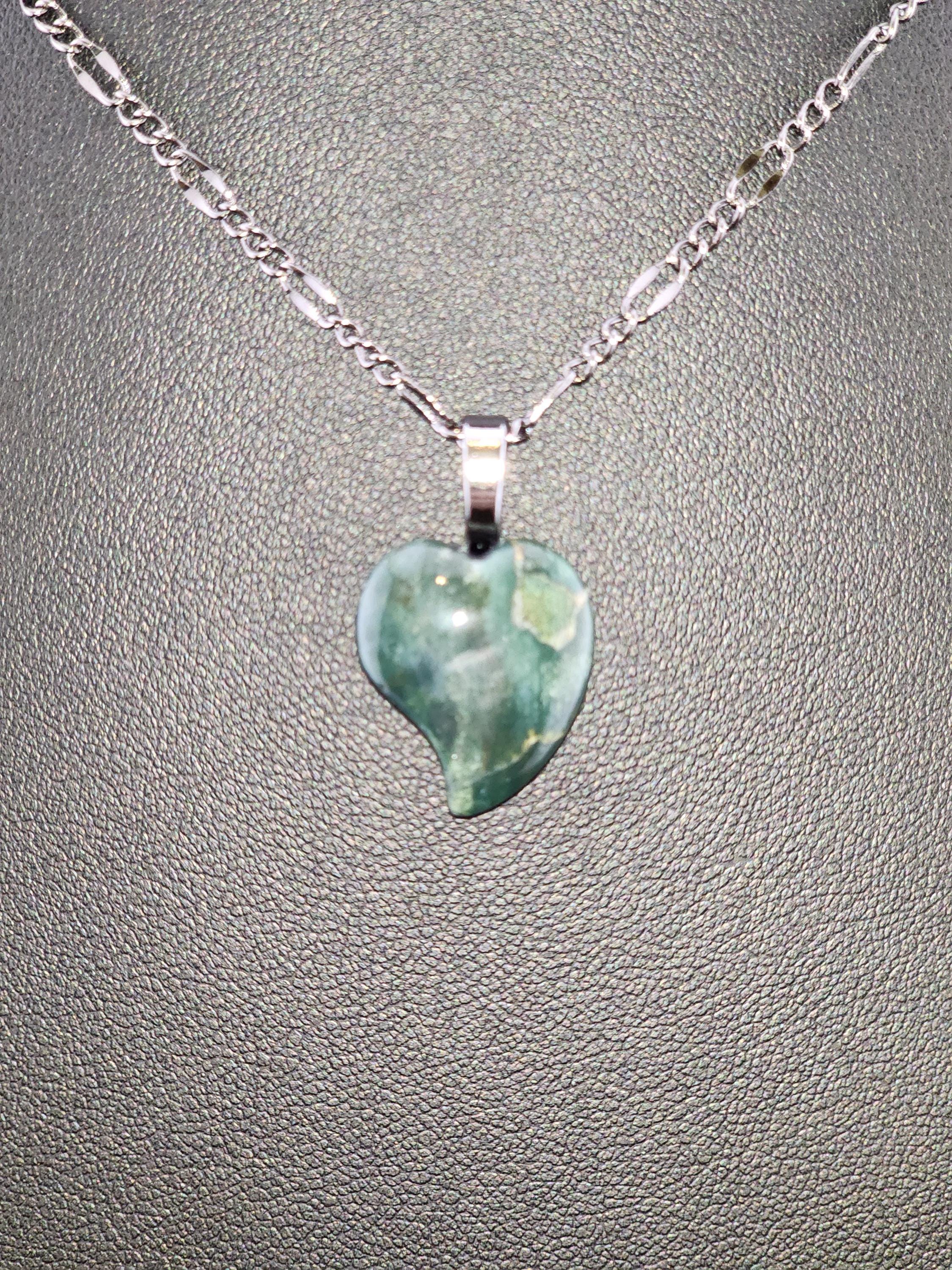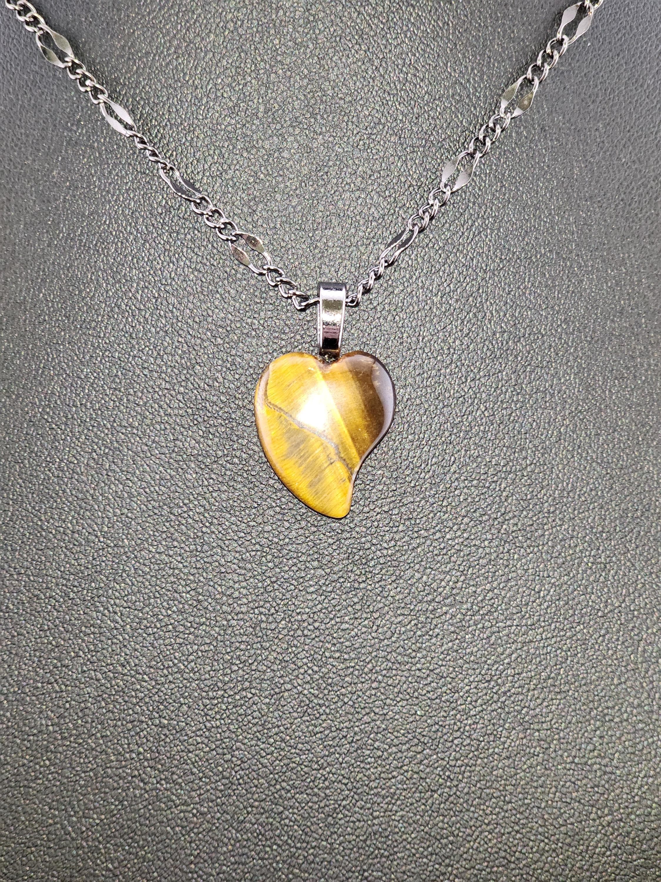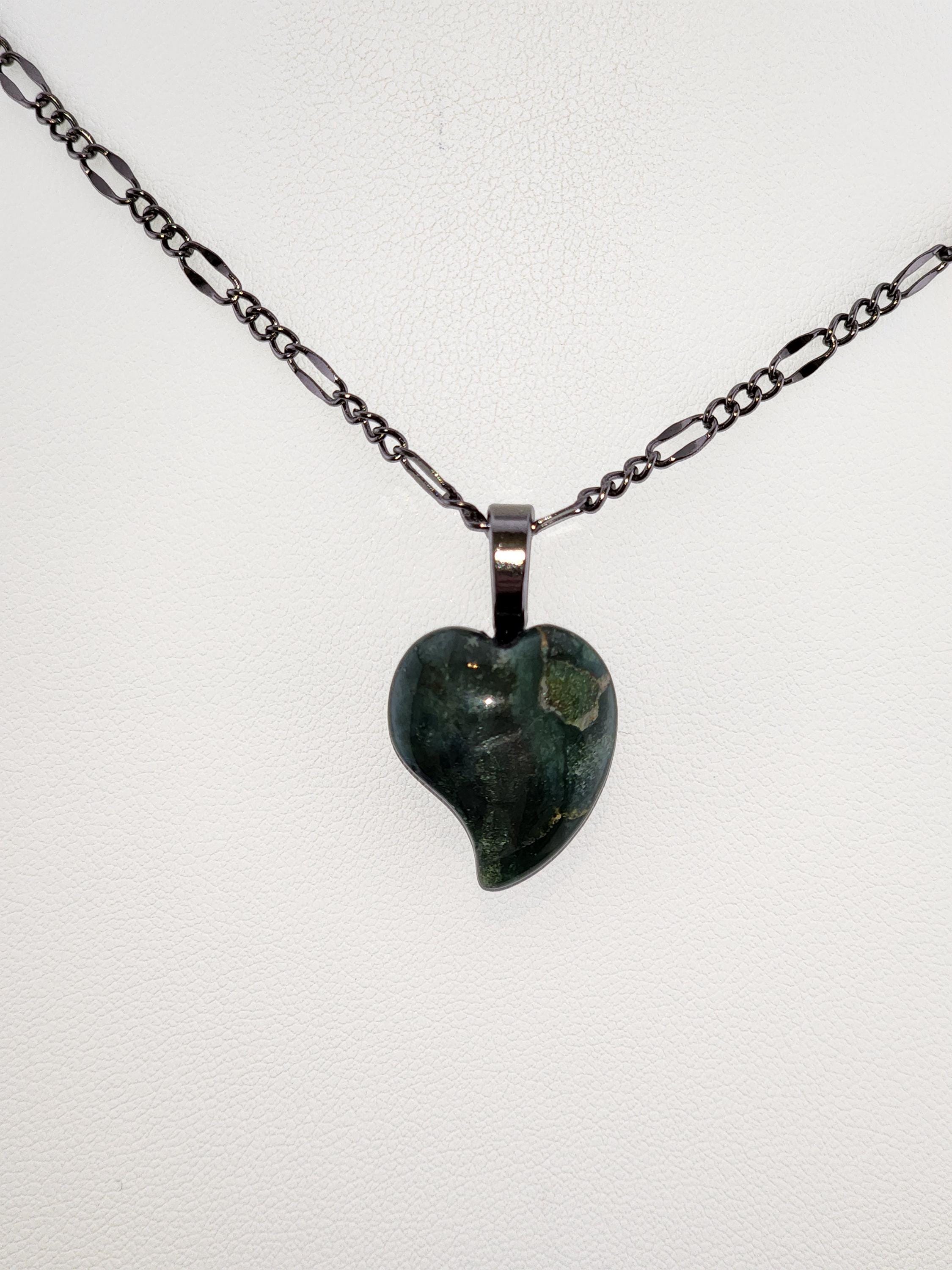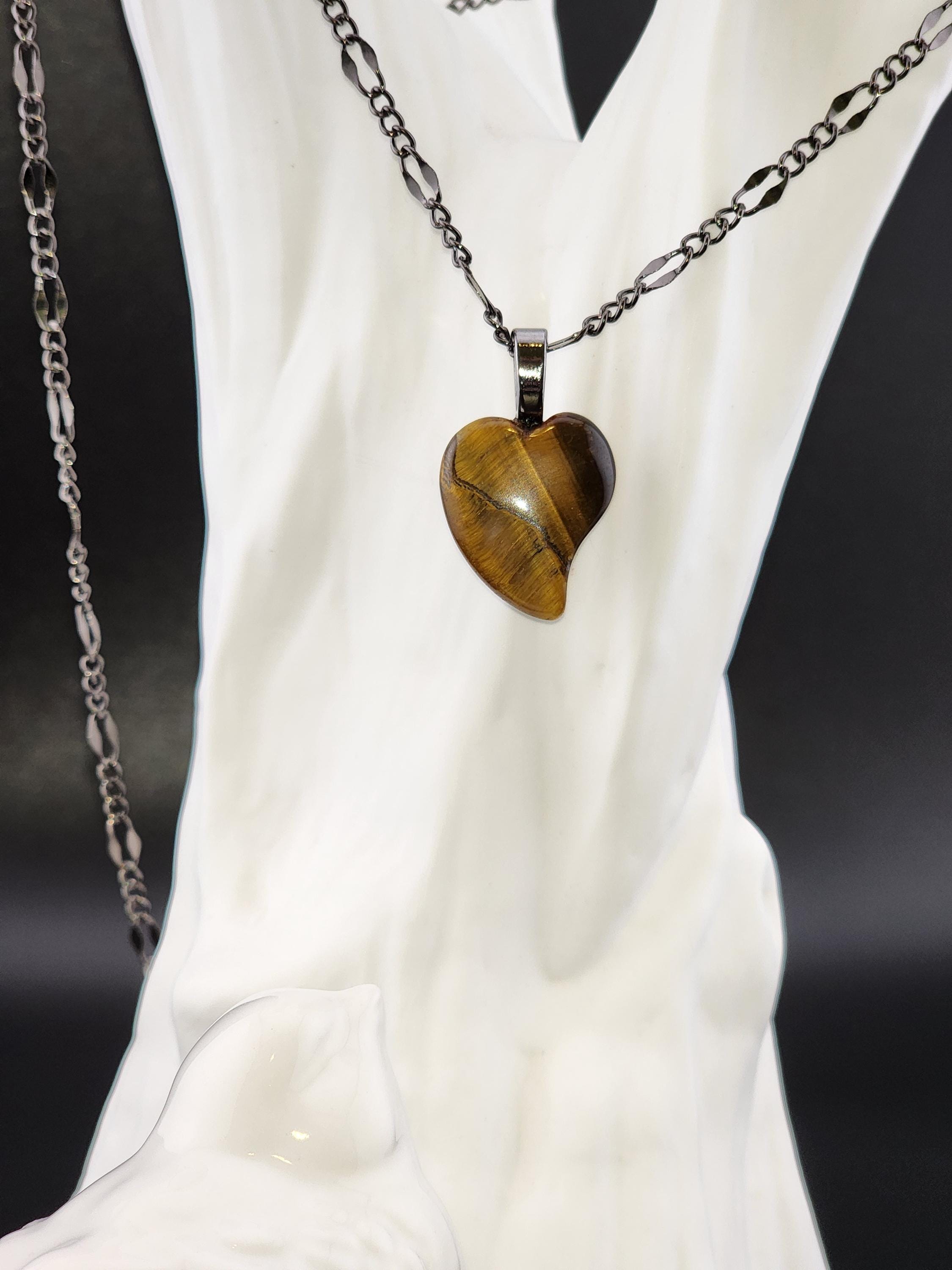 I made these necklaces using stainless steel lip chain in gunmetal gray and silver with extenders making them adjustable up to 22" long. They each have a different heart shaped semi-precious gemstone pendant. YOUR CHOICES ARE: #1- Maw-sit-sit #2- Jadeite #3- Tiger's Eye * Your purchase will arrive in pretty packaging