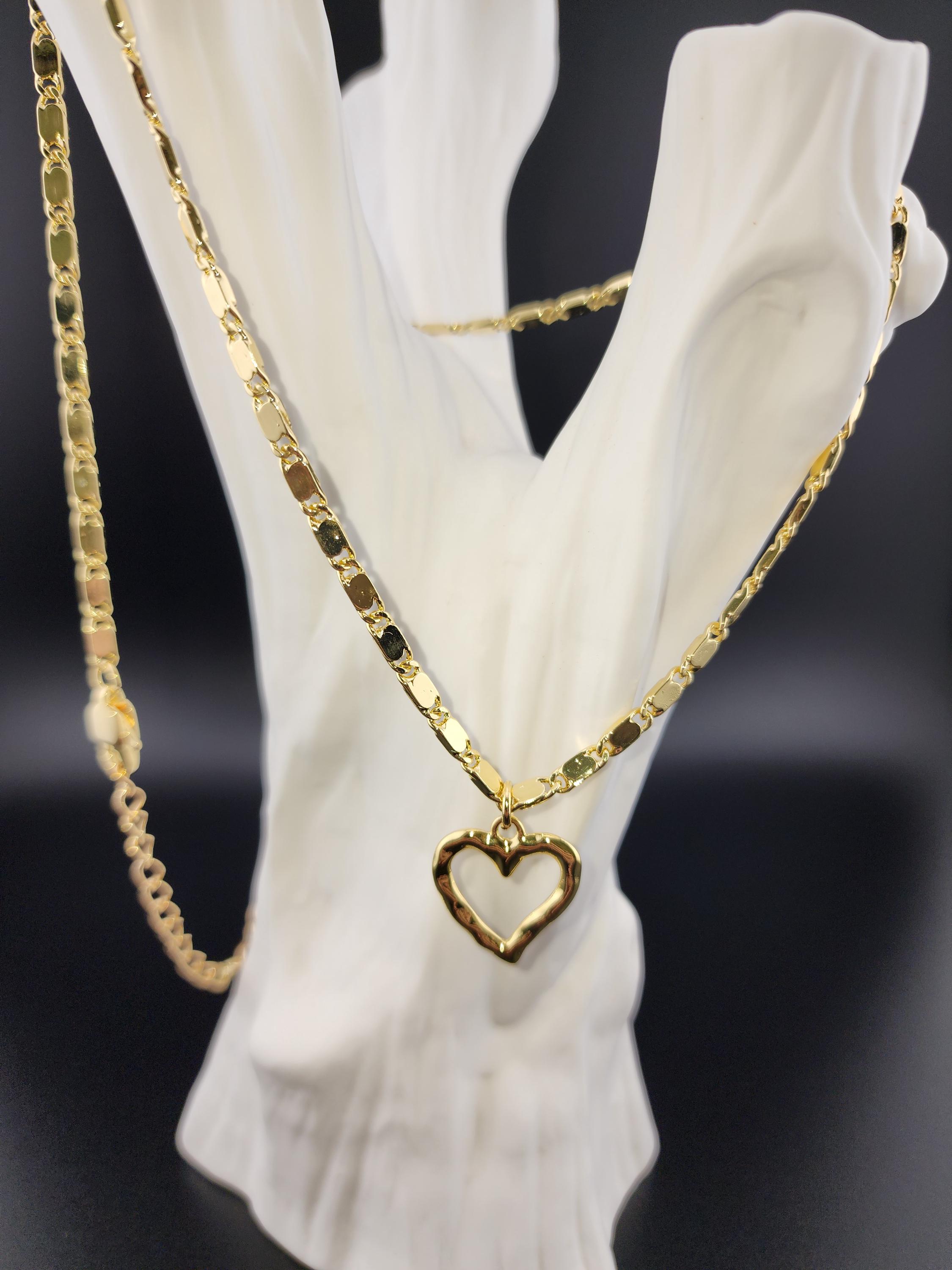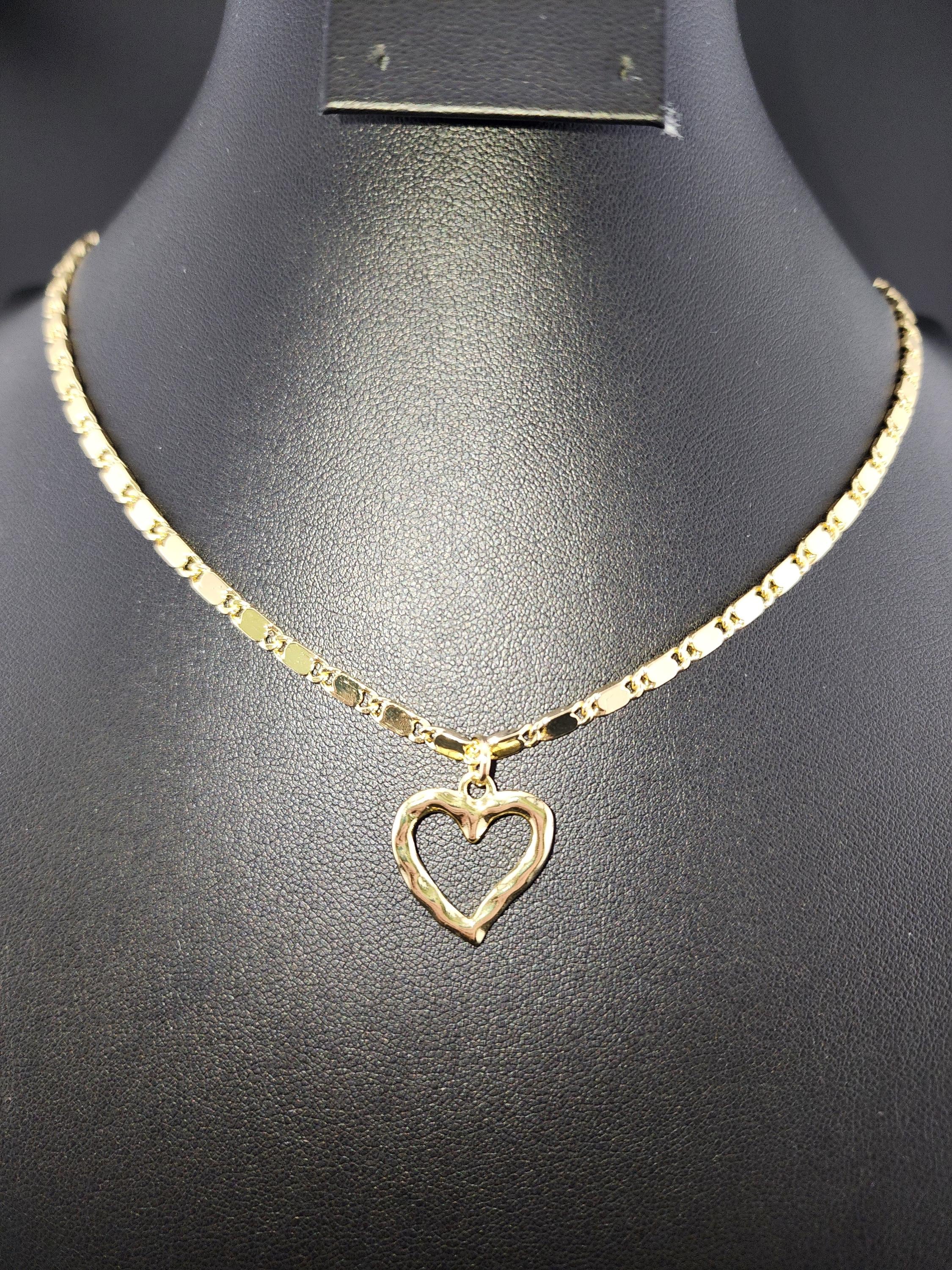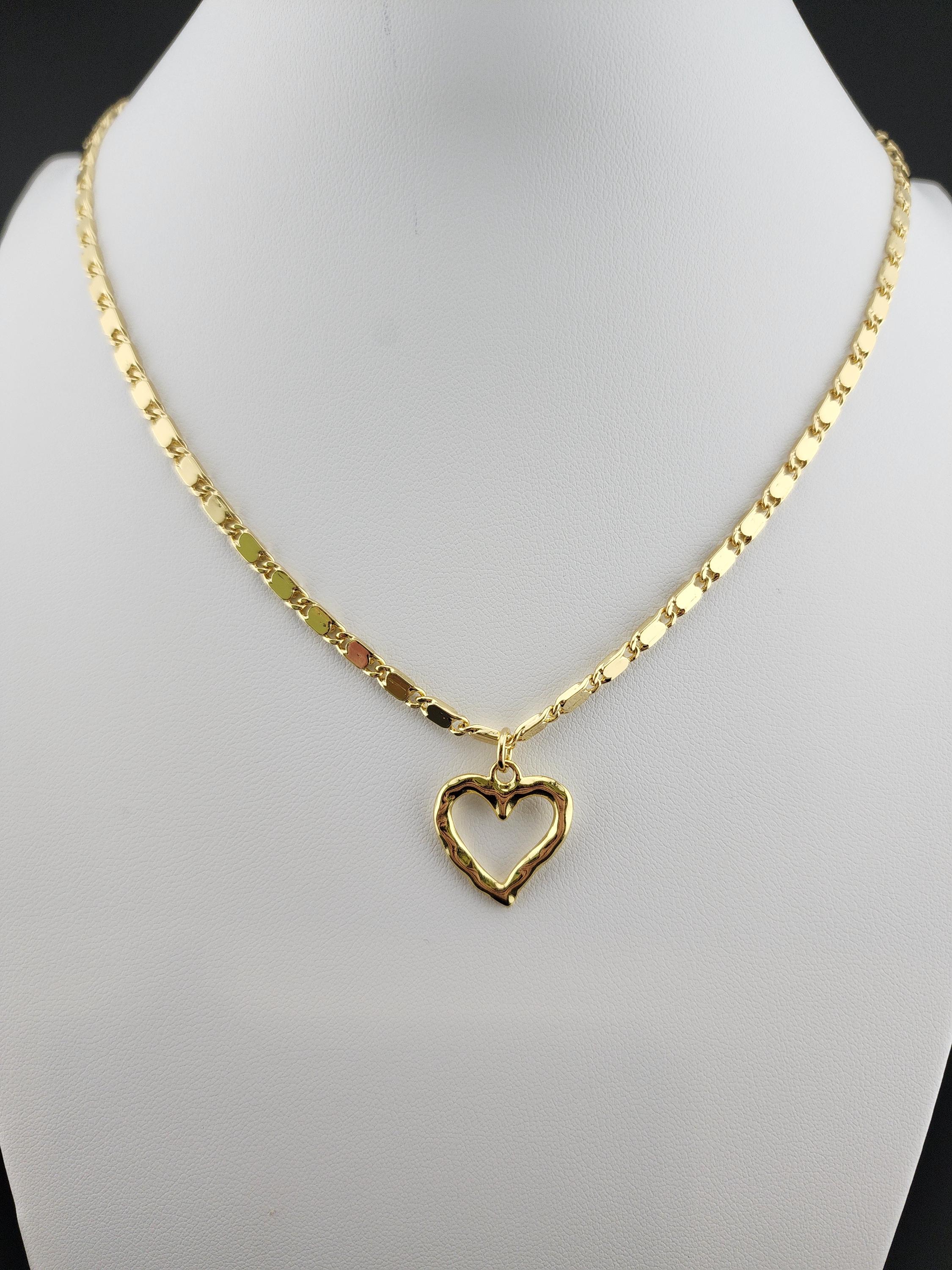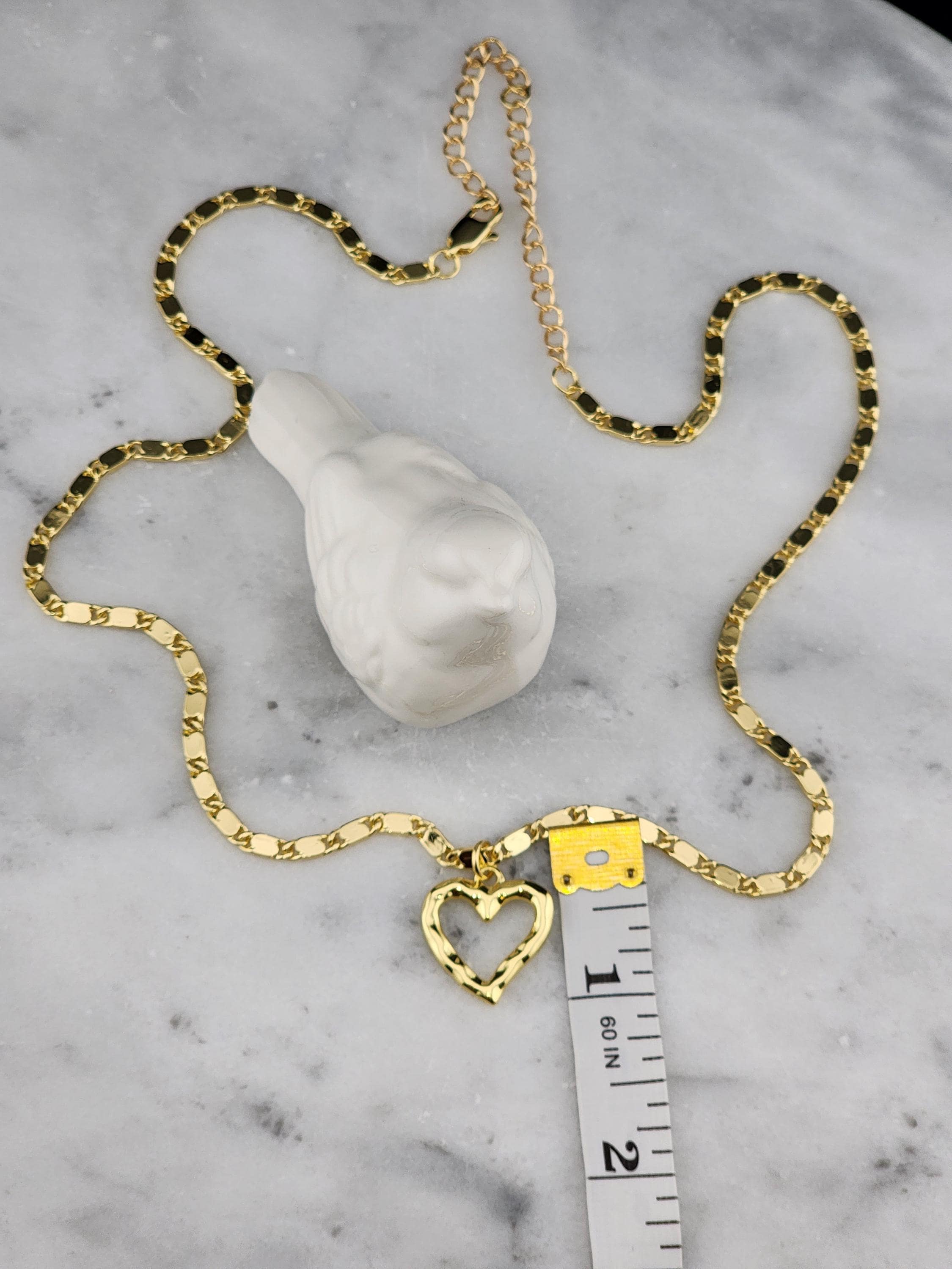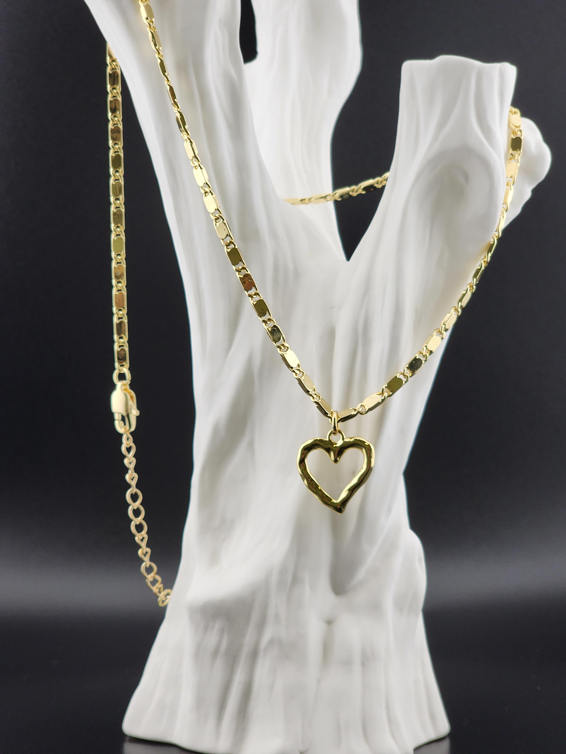 I made this necklace using tarnish resistant 16k gold plated flat link chain. It has a 16k gold plated clasp and 18k gold plated connecting rings. There are extenders making it adjustable anywhere from 19"-23" in length. I added a wavy gold heart pendant with an 18k gold plated connecting ring. * Purchase will arrive in pretty packaging * Chain Size Details: the size of jewelry making chains is about 10mm long, 3.5mm wide and 1mm thick. * Pendant Size Details. about 17-20 x 16-18 x 2-4 mm, hole: 3 mm