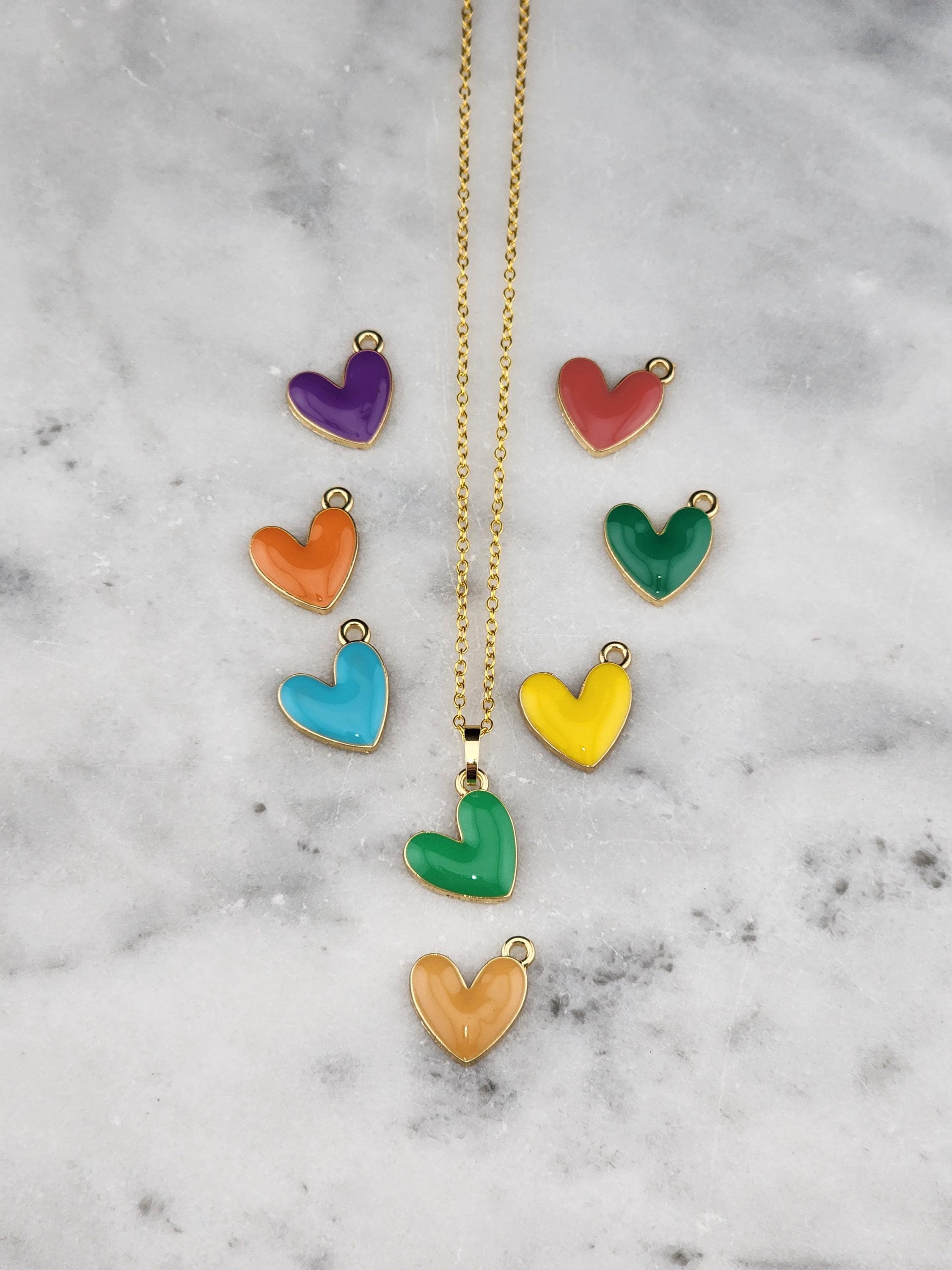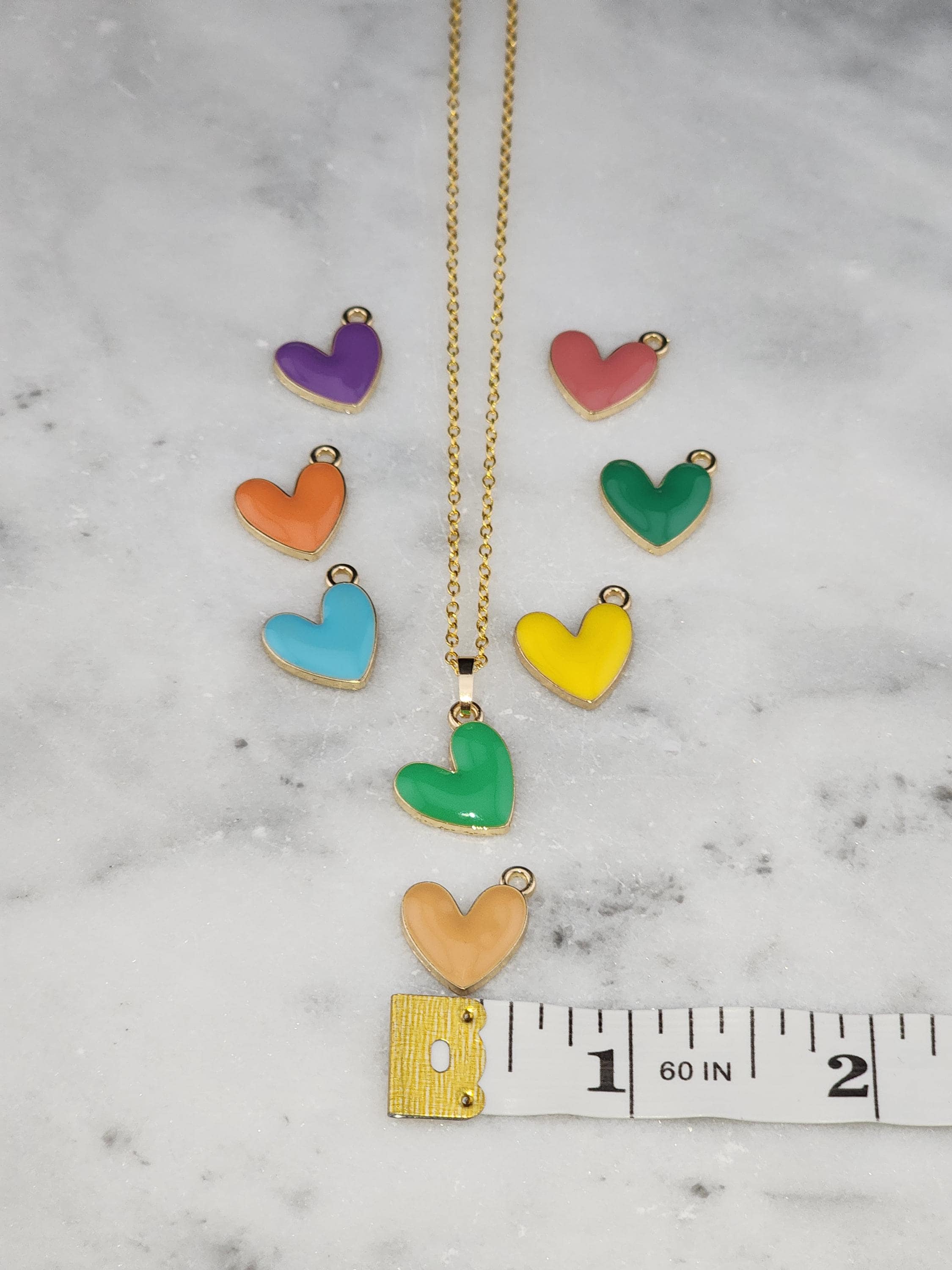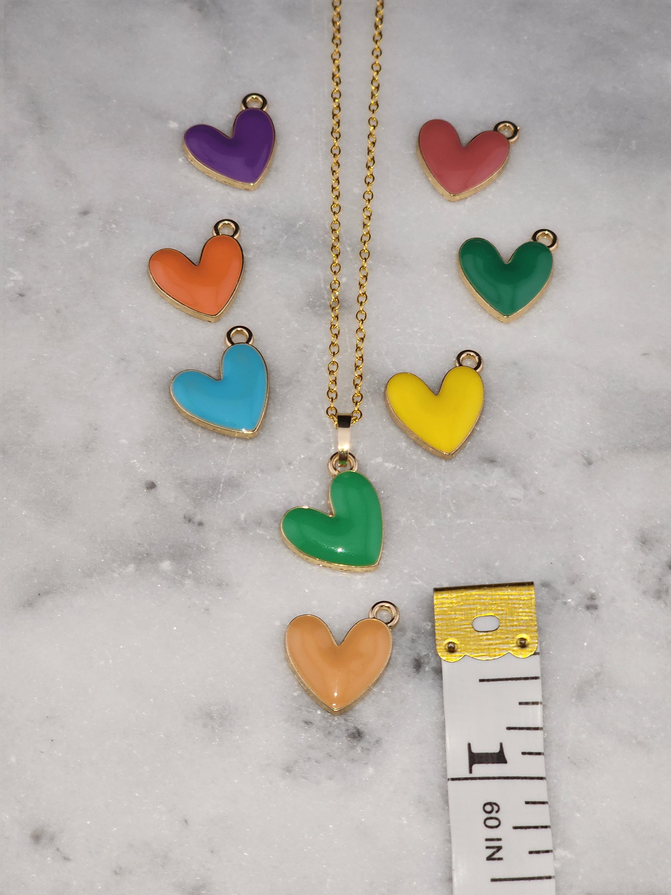 I made these necklaces using tarnish resistant gold/925 silver chain with extenders making them adjustable from 18"-20"-22" in length. You have 8 enamel Kawaii love heart pendants to choose from. There are 18k gold plated connecting rings. * Your purchase will arrive in pretty packaging * Necklace measurements: 1.2mm thick. * Pendant size: 16mm in long, 15mm in wide, 3mm in thickness, 1.6mm in hole size.