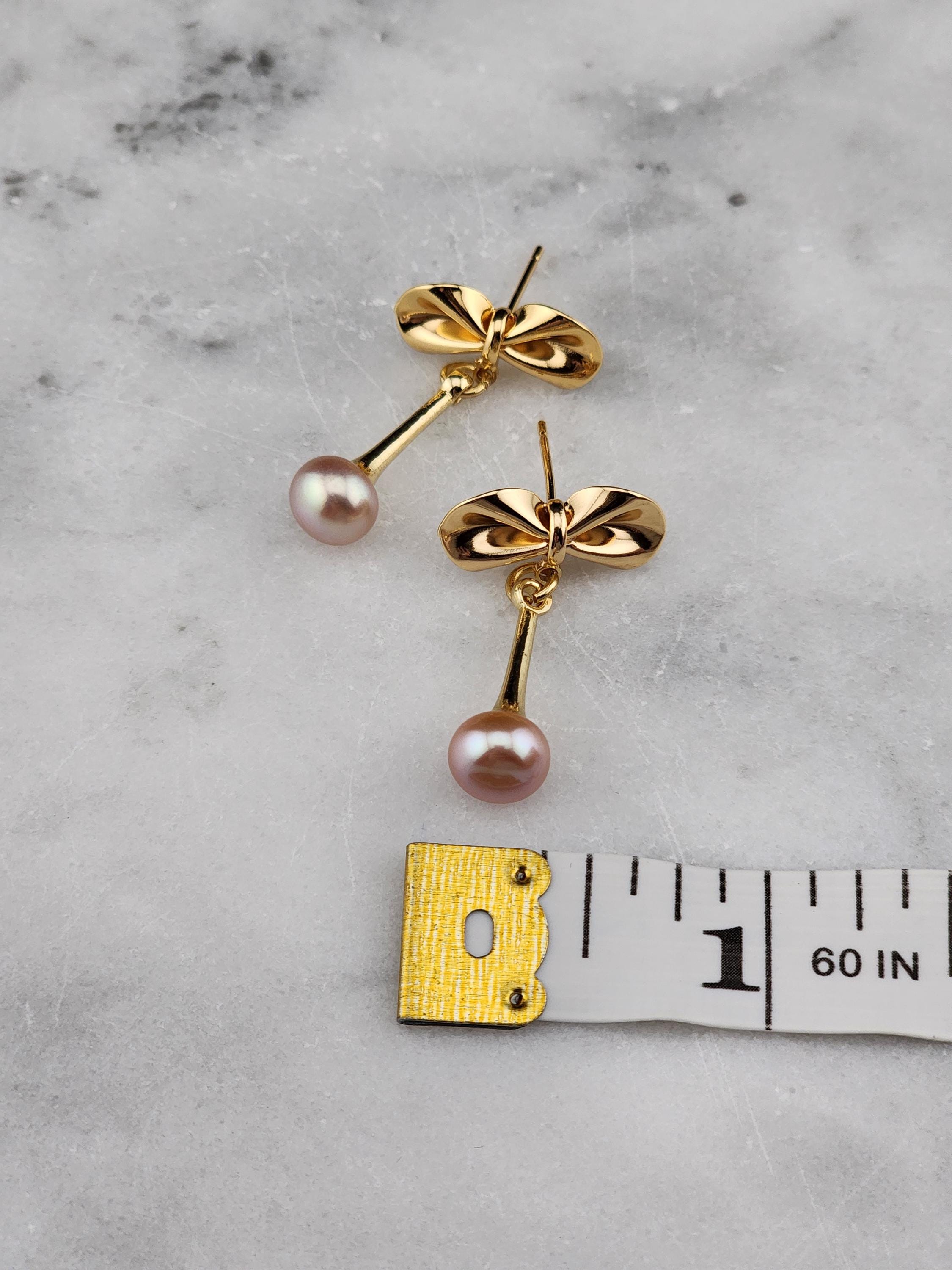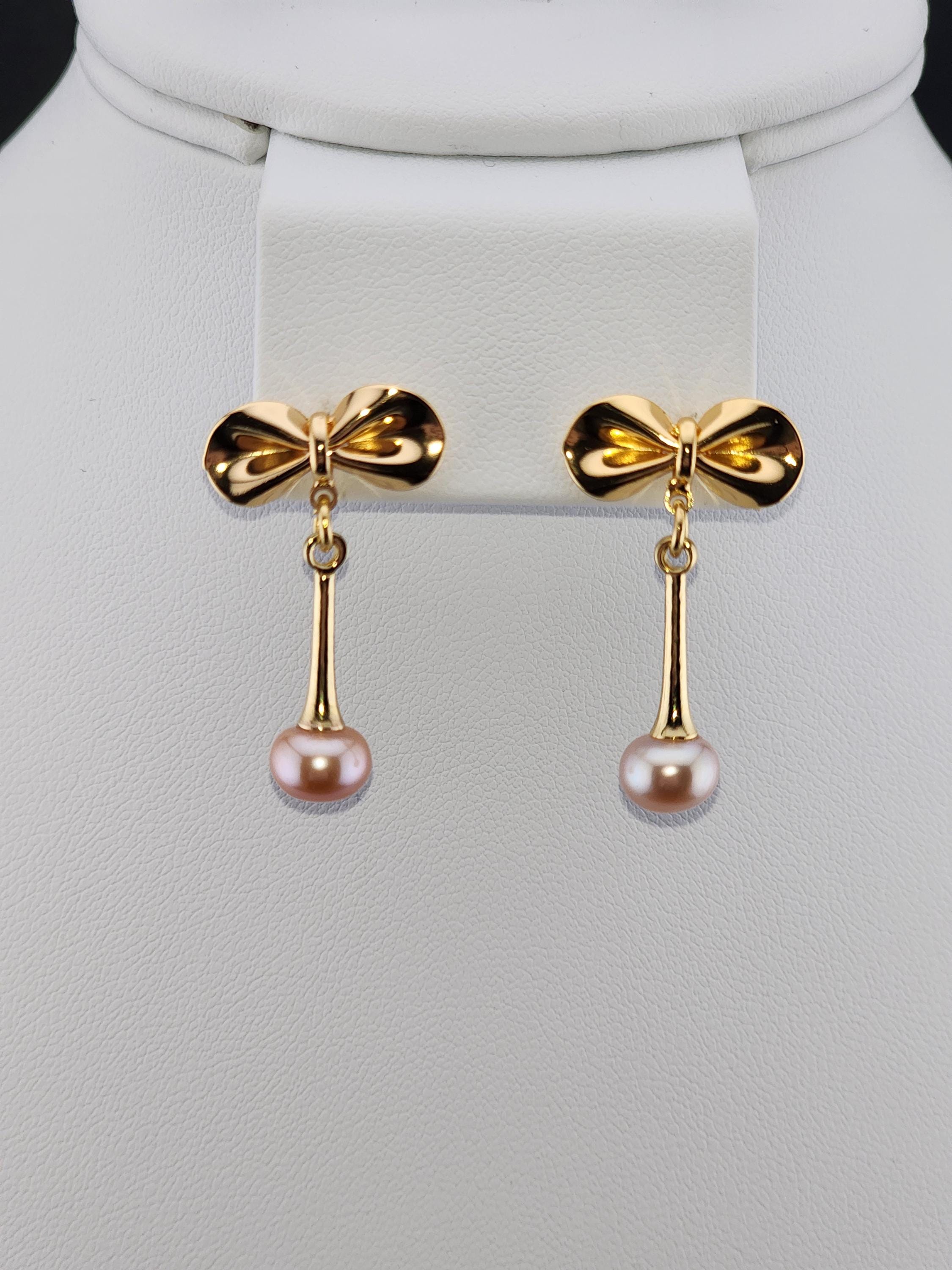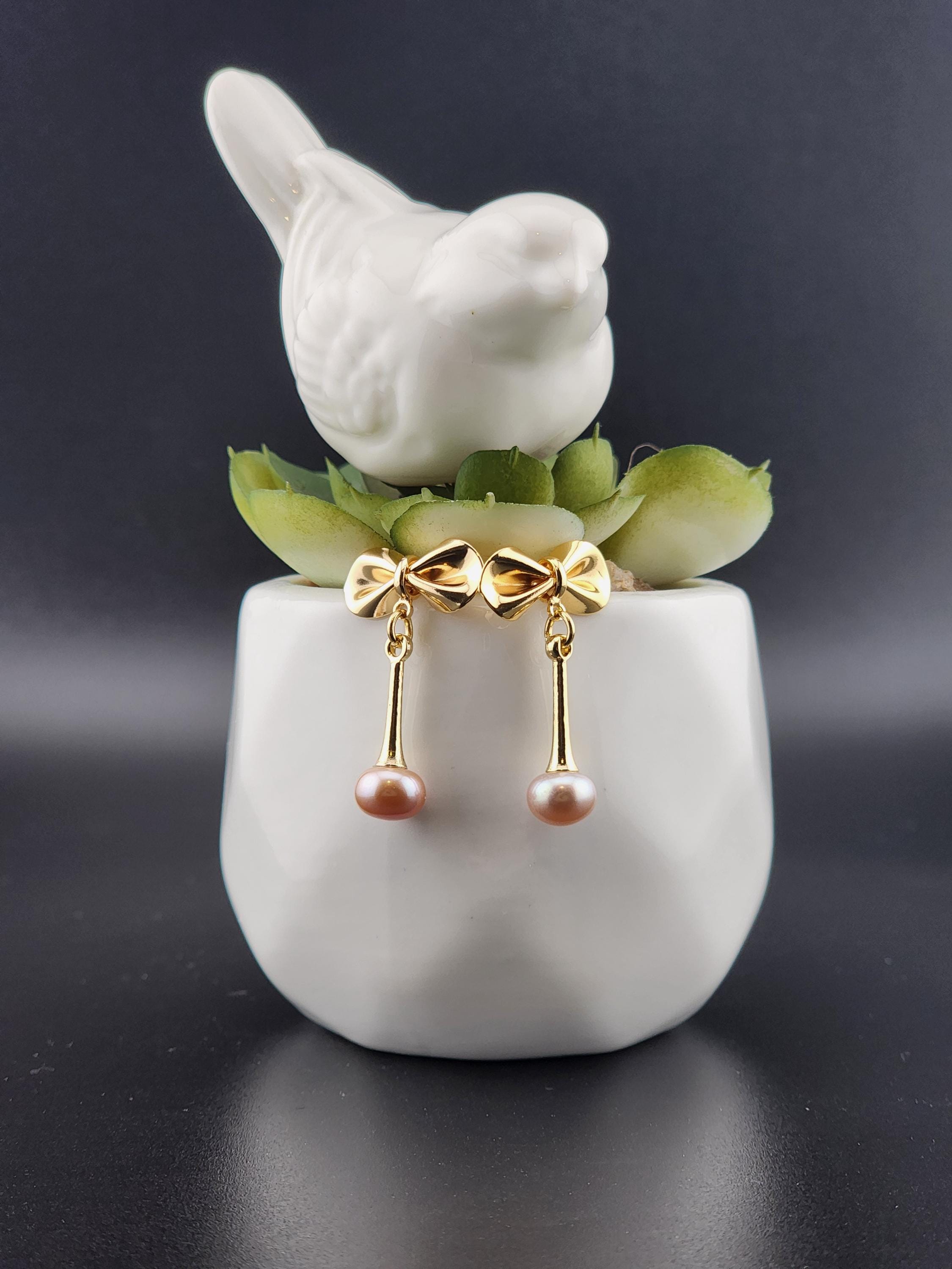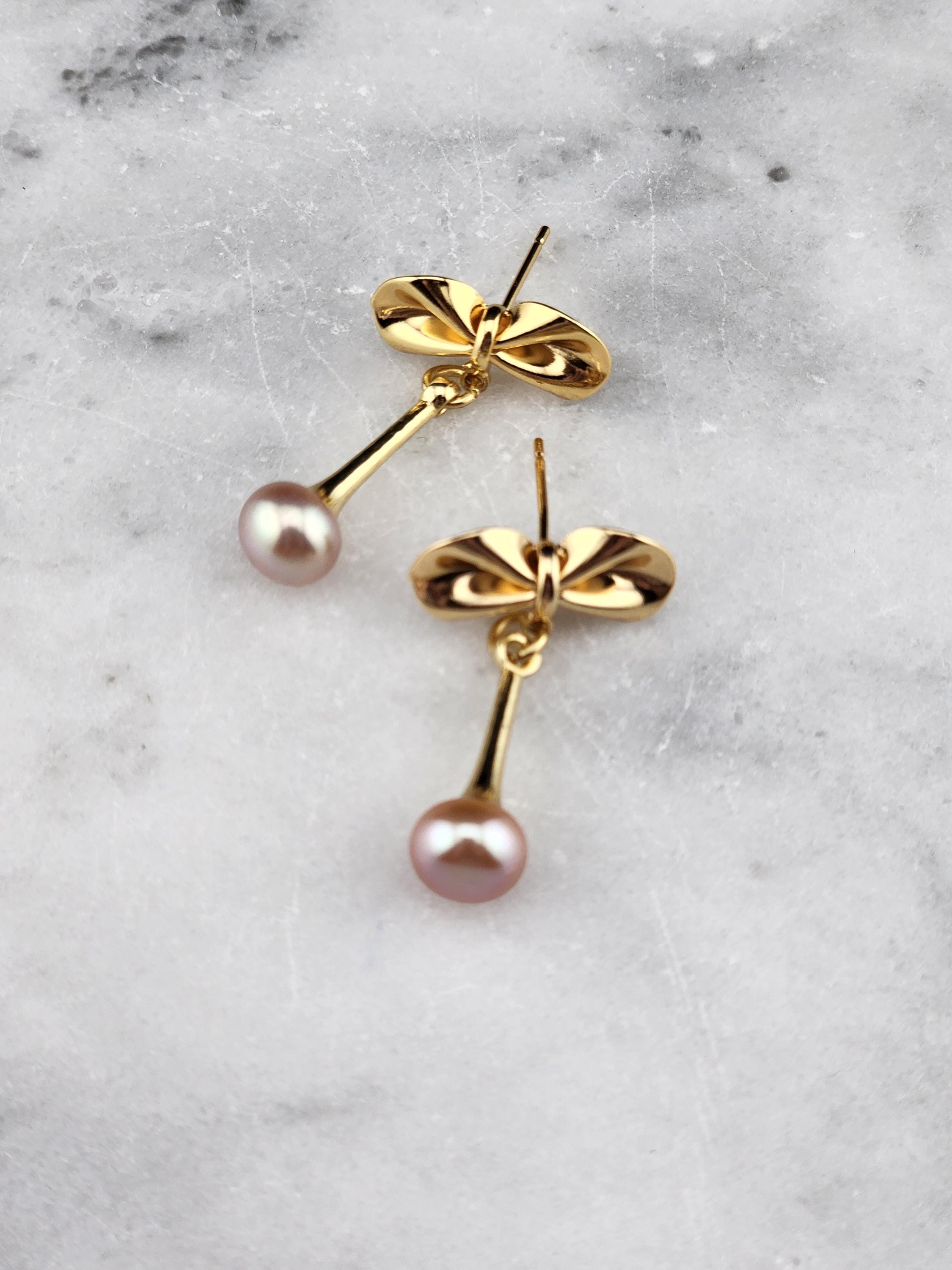 I made these earrings using tarnish resistant 18k gold plated brass bow posts. From them are 14k gold plated eye pin cup charms that hold gorgeous freshwater peach pearls. They hang from 18k gold plated connecting rings. Perfect as wedding jewelry and as gifts for her for any occasion. * Your purchase will arrive in pretty packaging