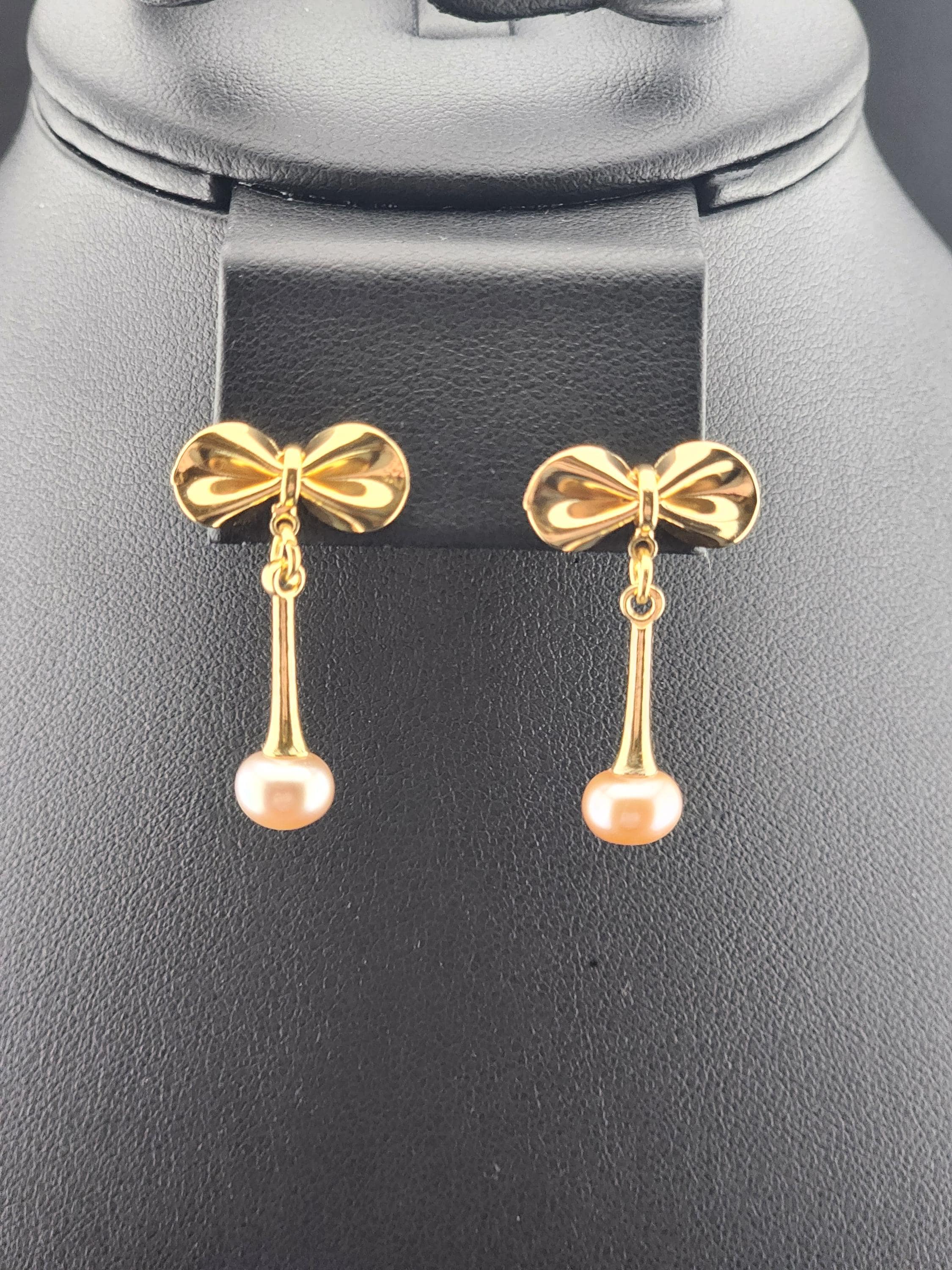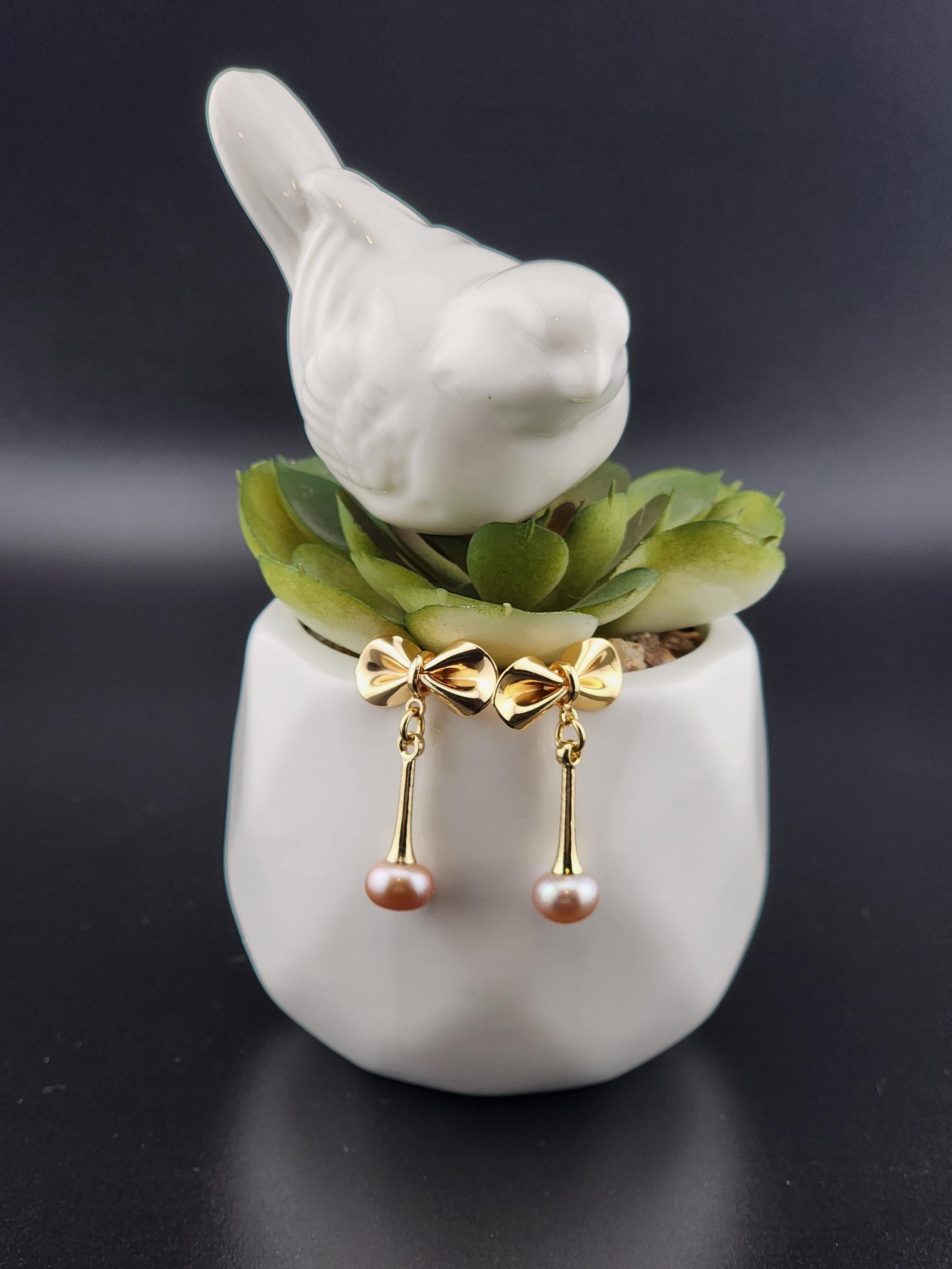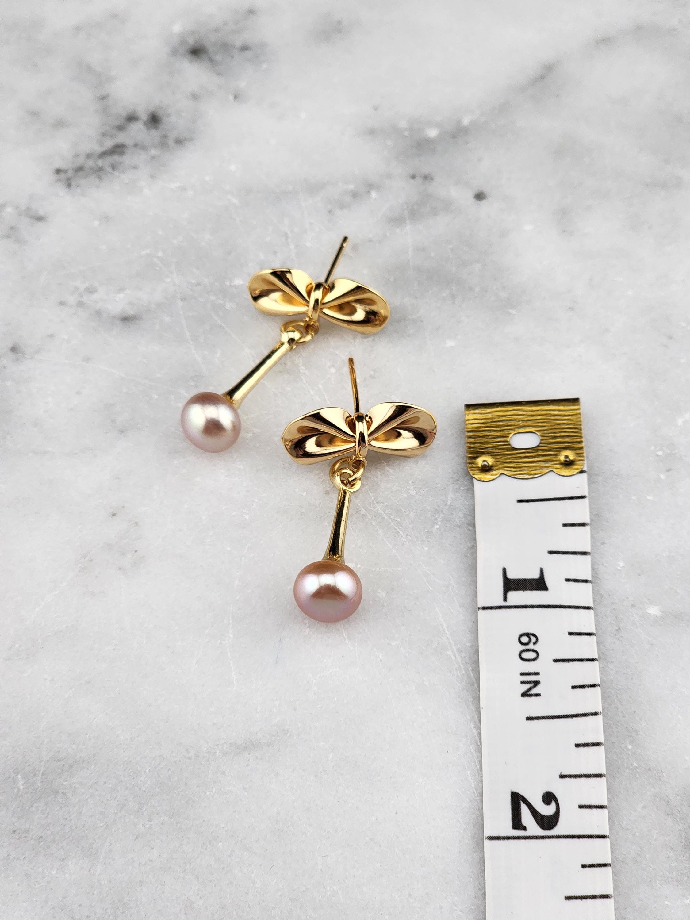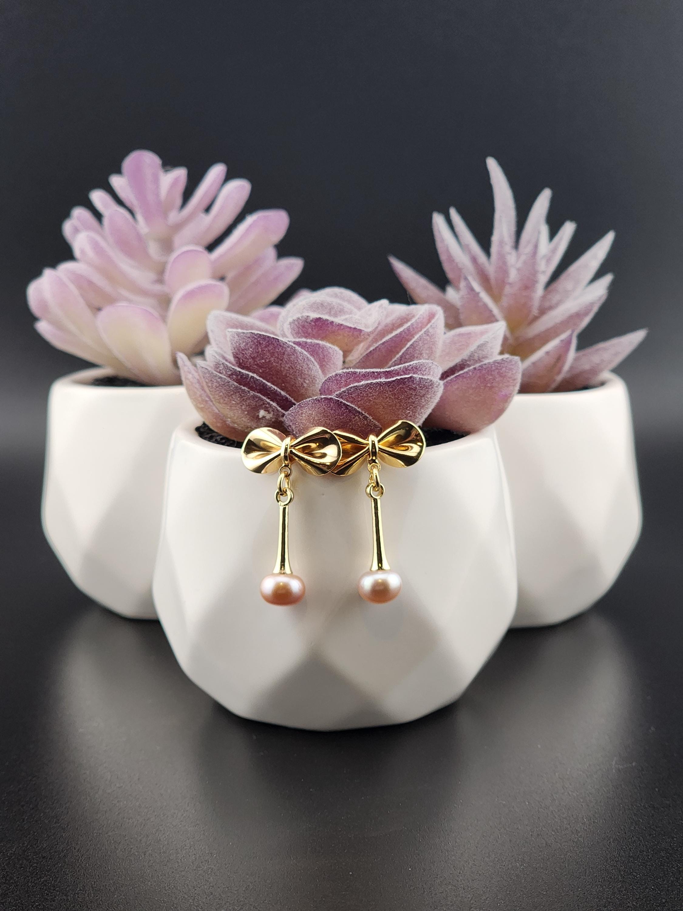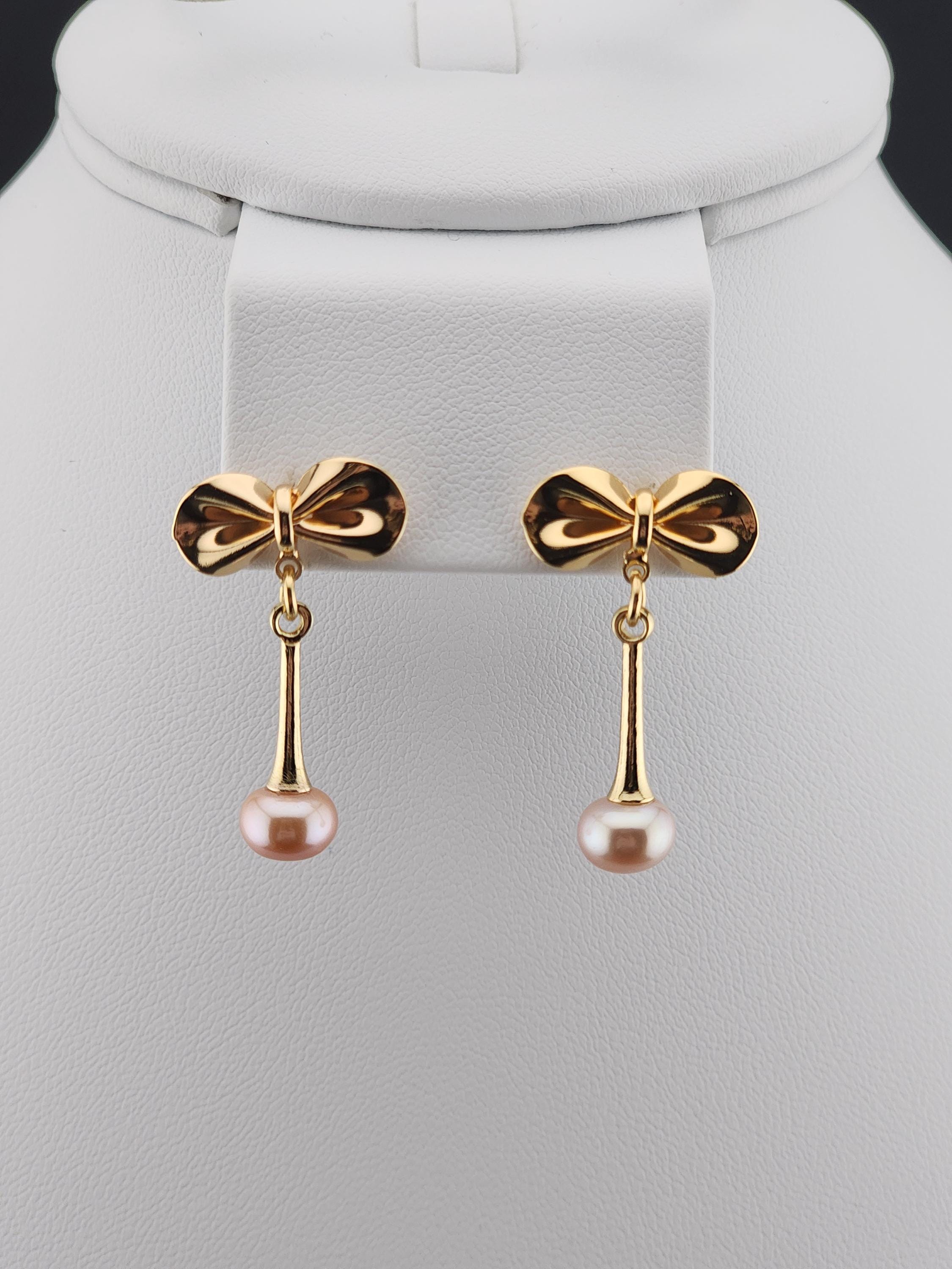 I made these earrings using tarnish resistant 18k gold plated brass bow posts. From them are 14k gold plated eye pin cup charms that hold gorgeous freshwater peach pearls. They hang from 18k gold plated connecting rings. Perfect as wedding jewelry and as gifts for her for any occasion. * Your purchase will arrive in pretty packaging