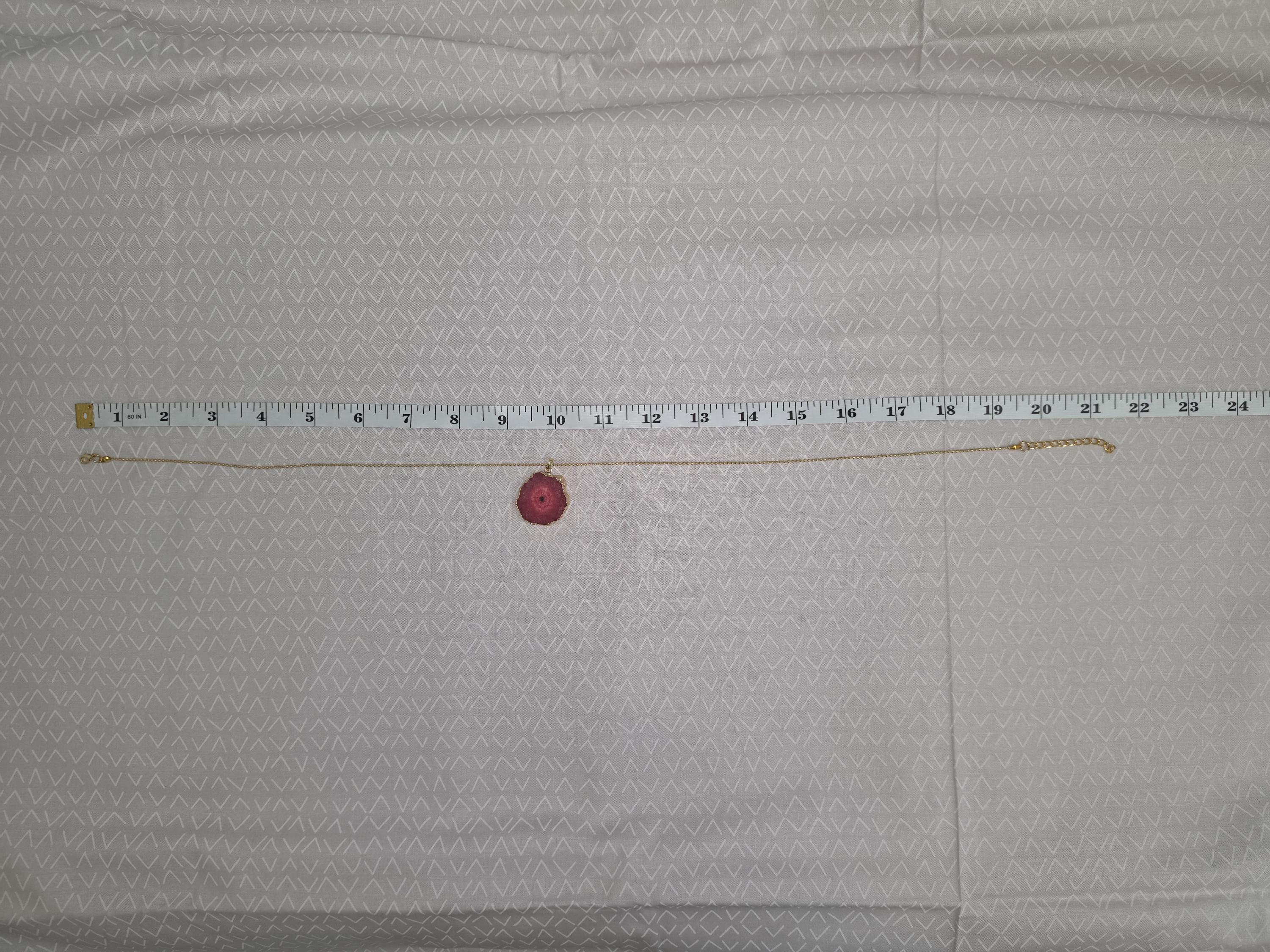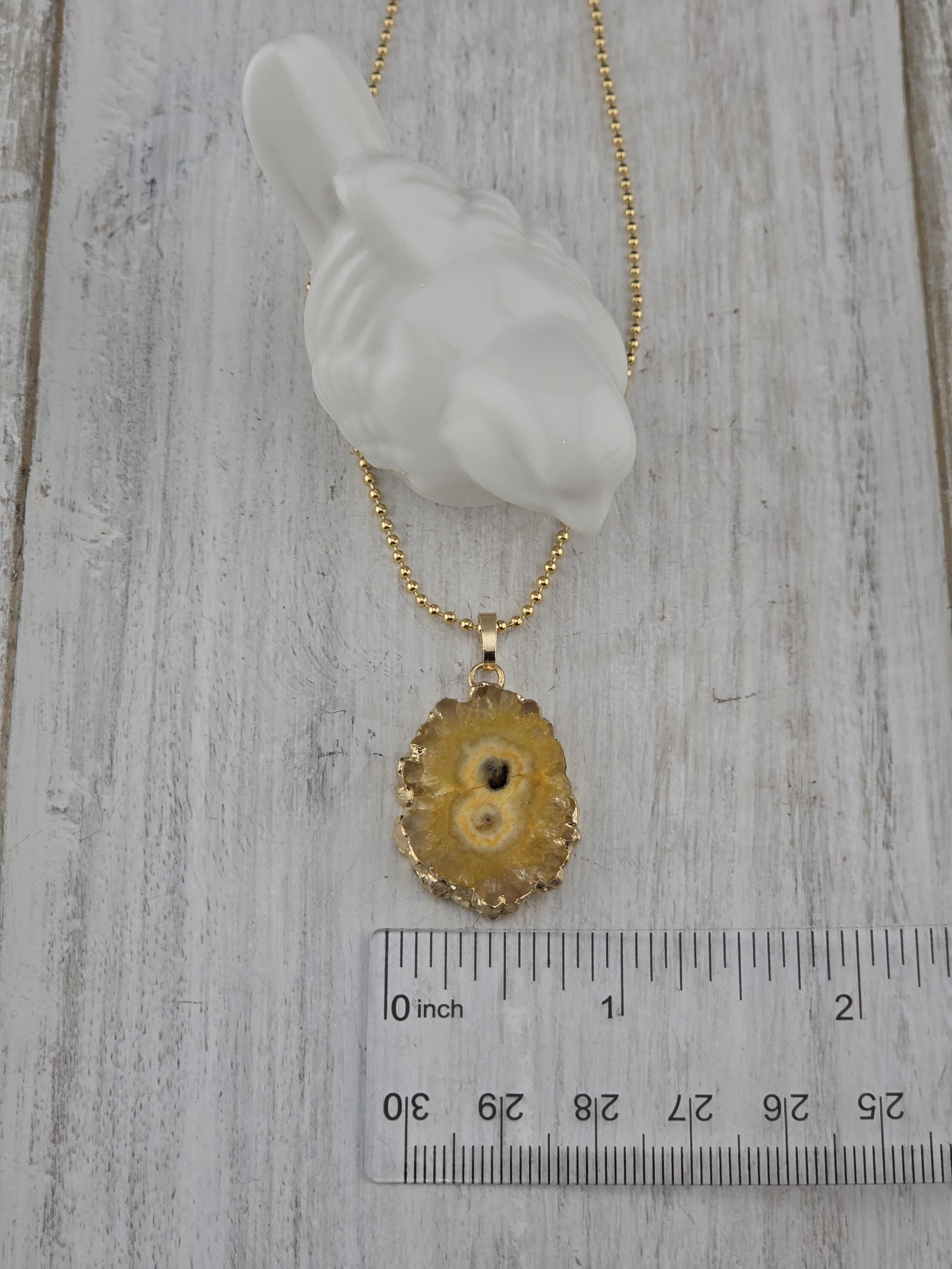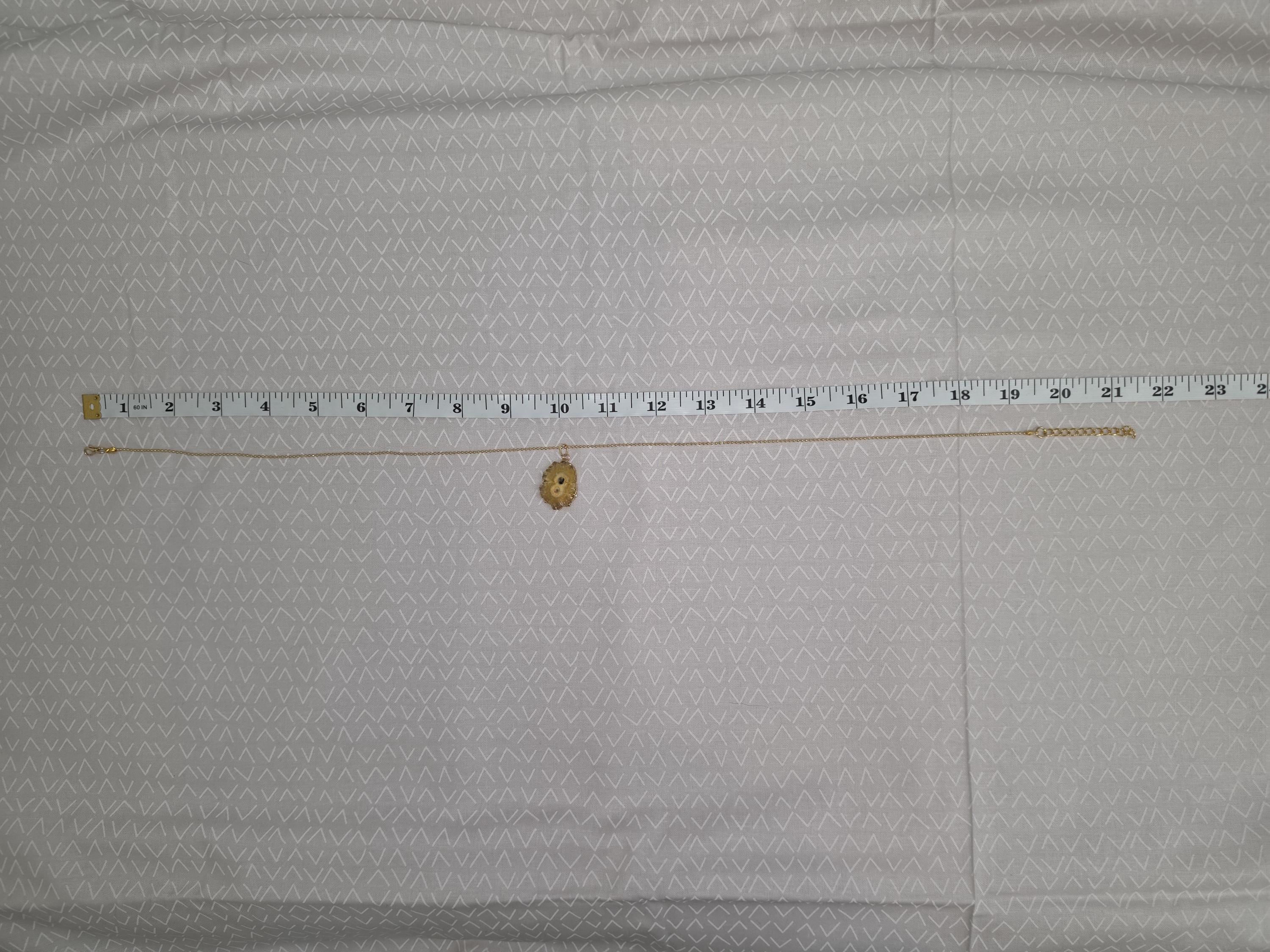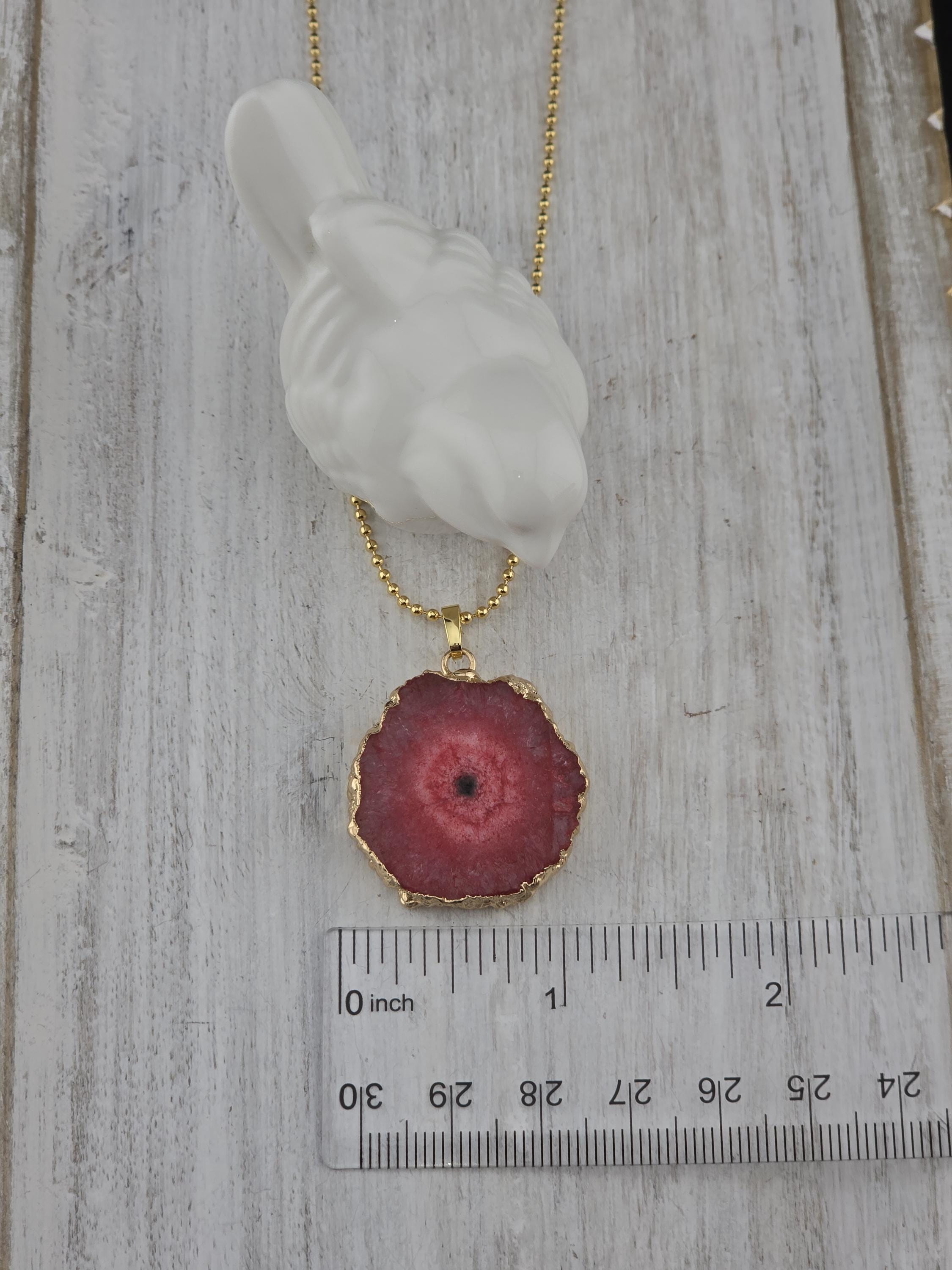 I made these 2 necklaces using tarnish resistant 18k gold plated brass dot chain with 18k gold plated connecting rings. They have extenders making them adjustable from 19 1/2" to 22" in length. The pendants are organically shape quartz slices wrapped in gold leaf and hang from a 18k gold plated bail. YOUR CHOICES OF PENDANT ARE: #1- Yellow #2- Green #3- Rose Red * Your purchase will arrive in pretty packaging