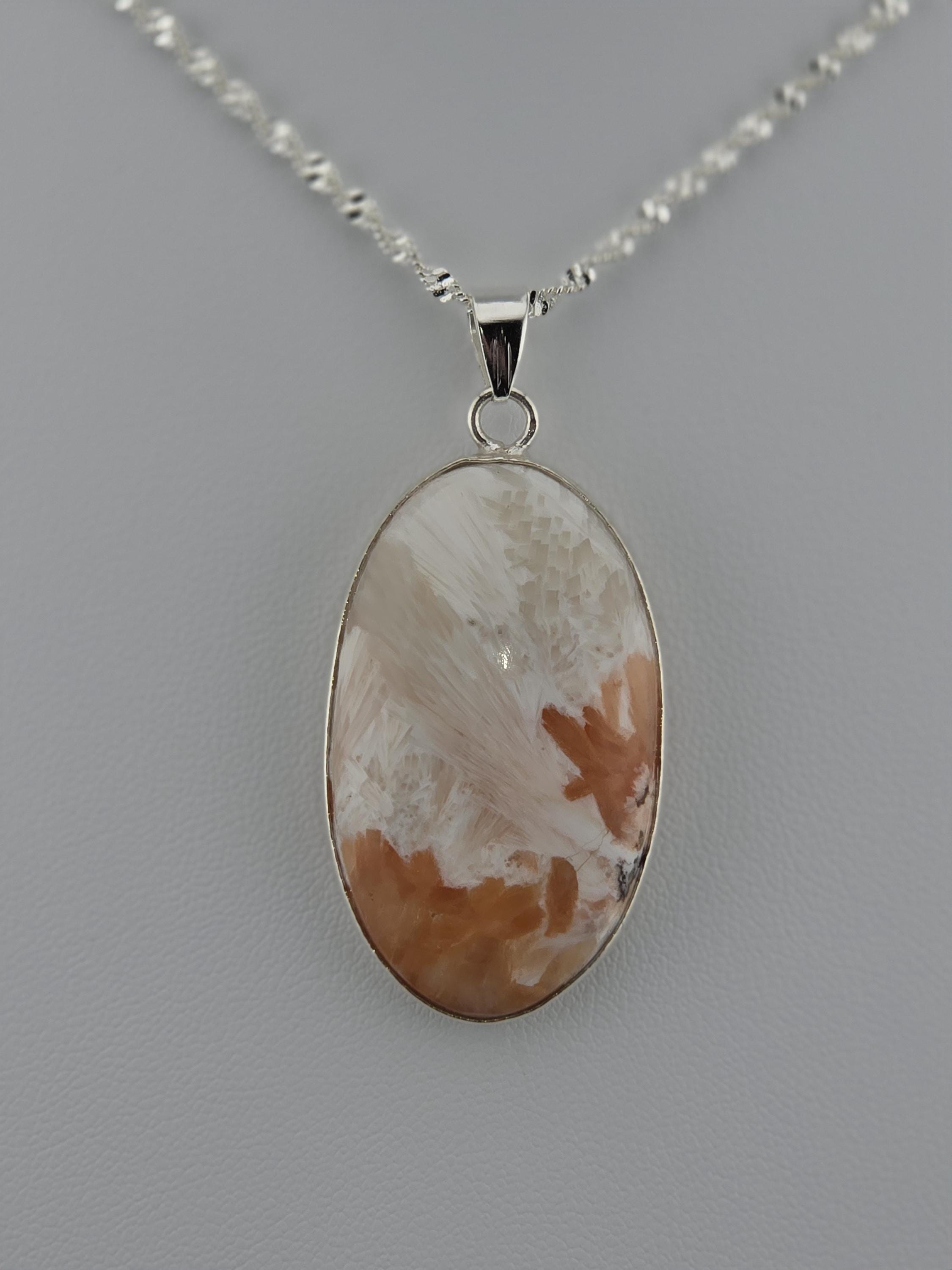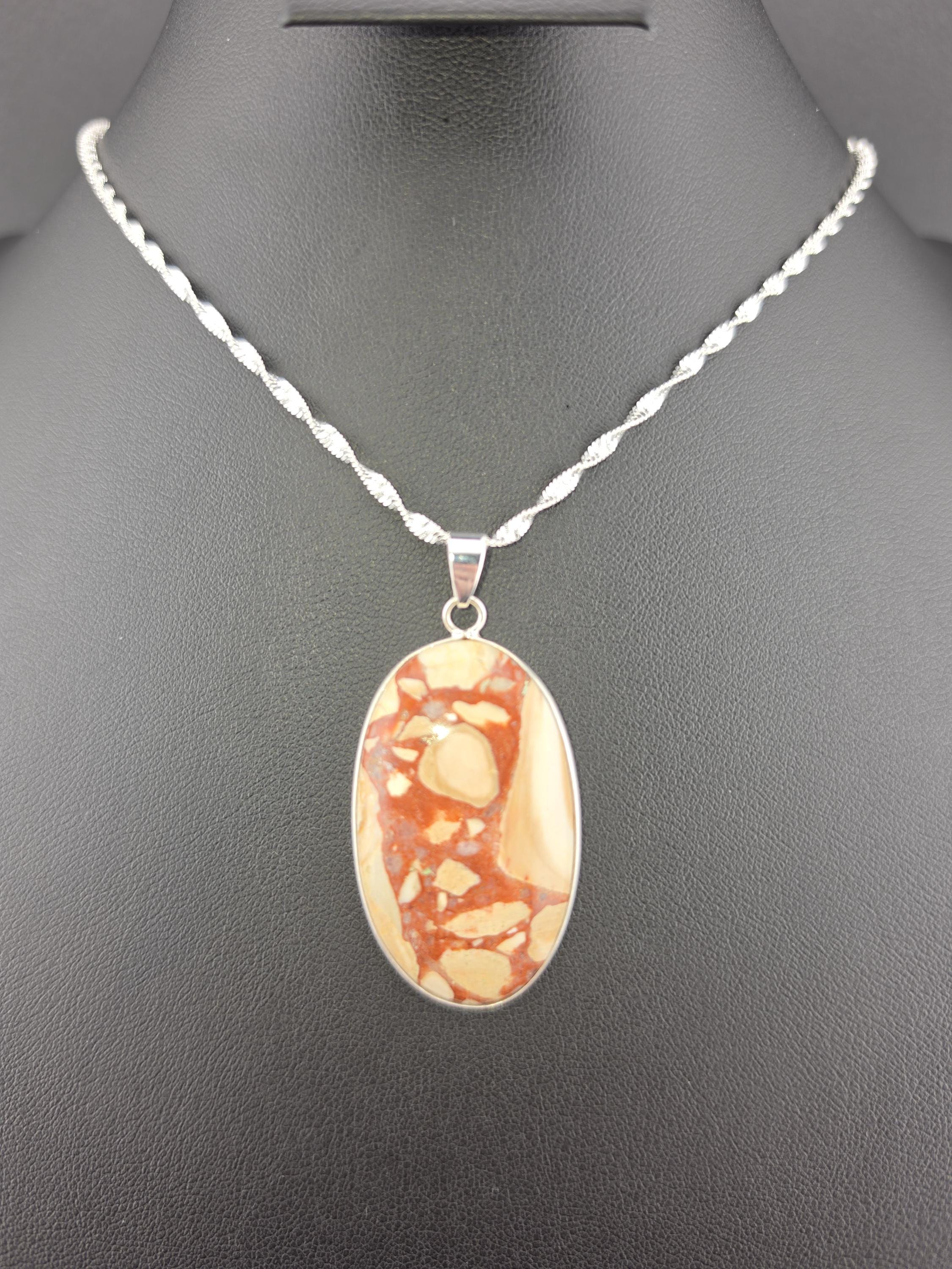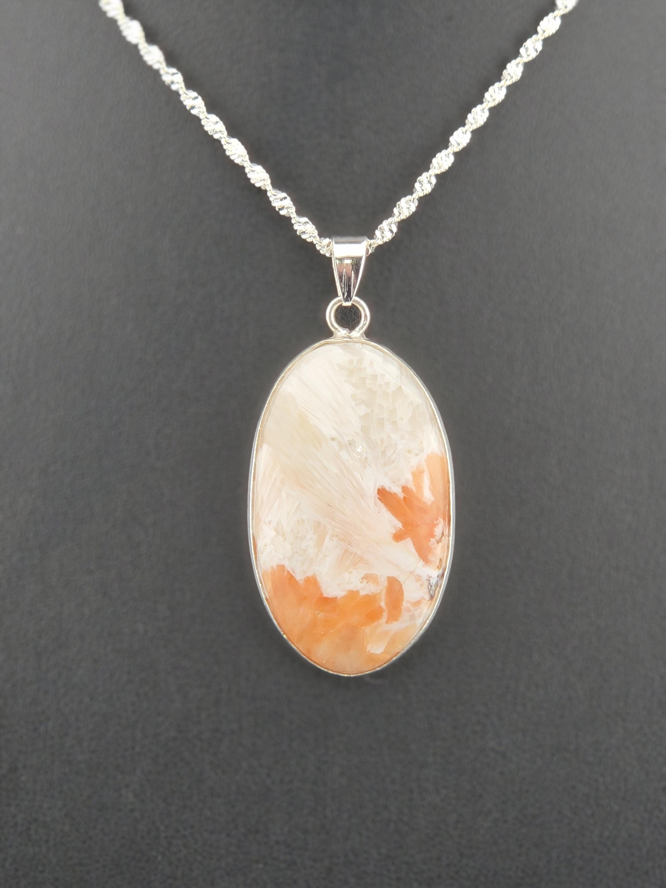 I made these necklaces using bright shiny twisted 925 sterling silver plated chain that have extenders making them adjustable from 20" to 22" in length. I added handcrafted oval gemstone pendants set in 925 sterling silver. YOUR CHOICES ARE: #1- Orange Scolecite #2-Mookaite Jasper #3-AAA Rosarito #4-Yellow Lace Agate * Your purchase will arrive in pretty packaging