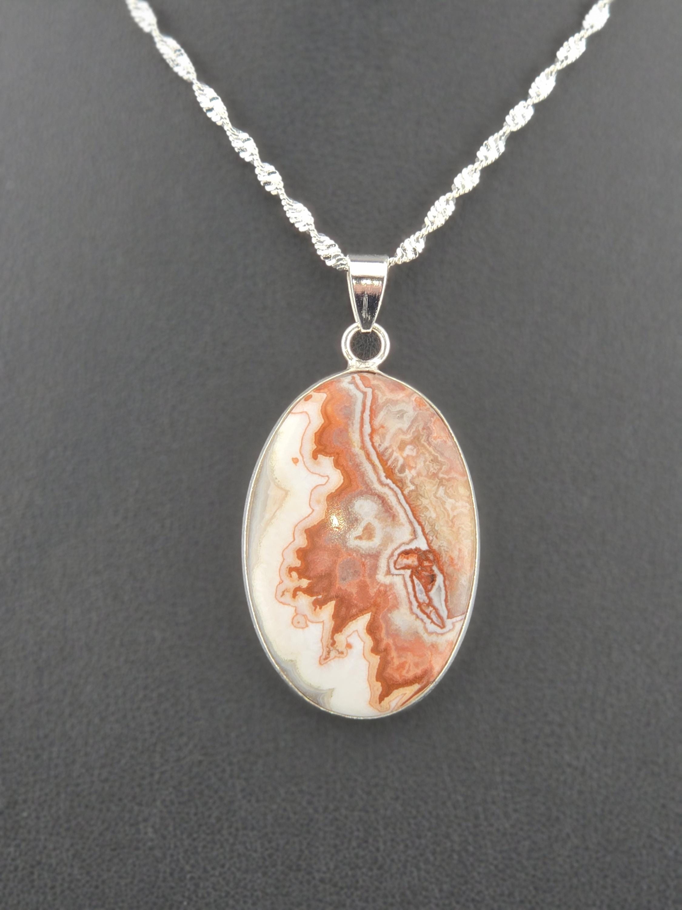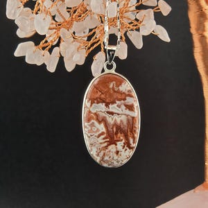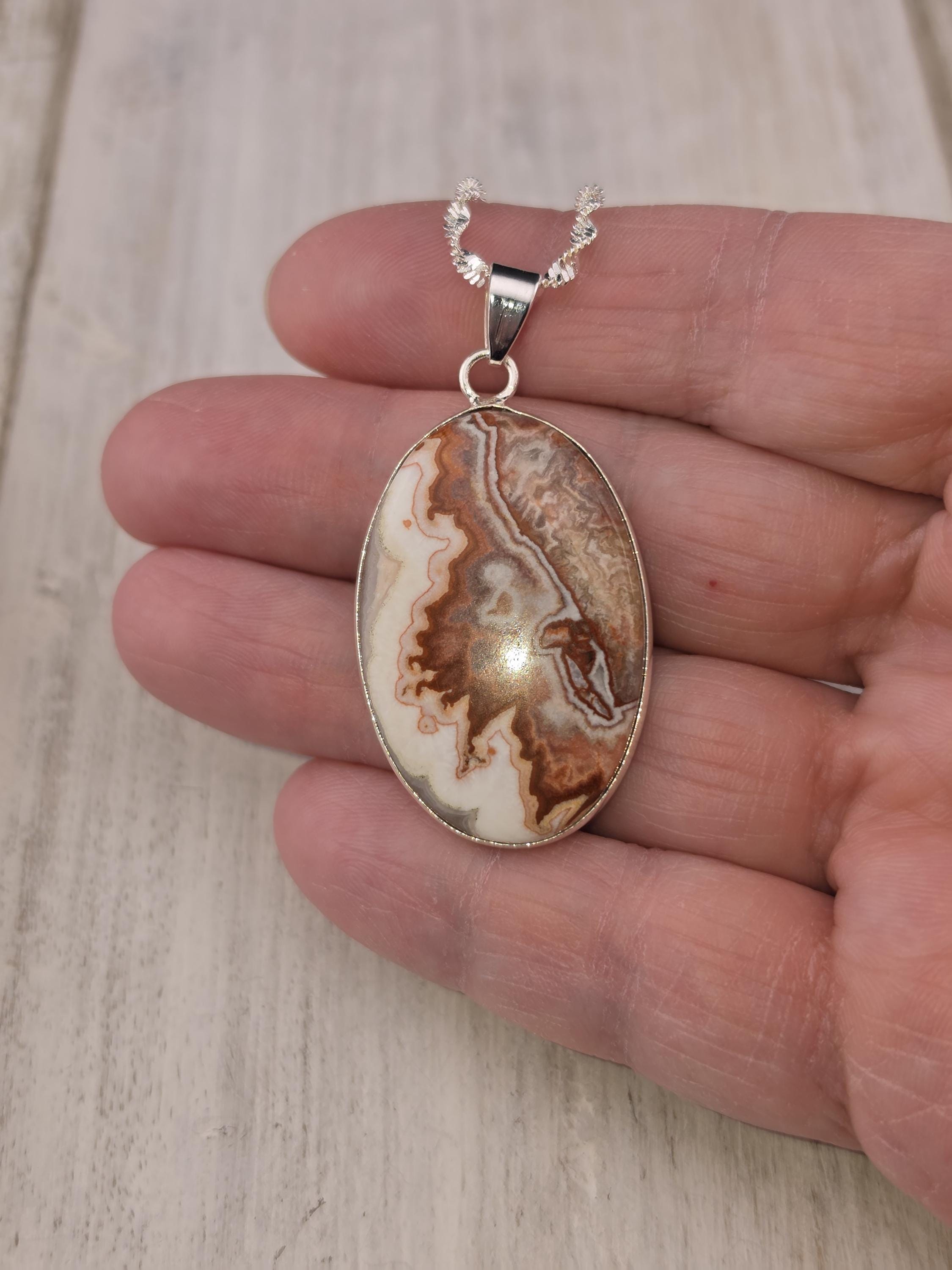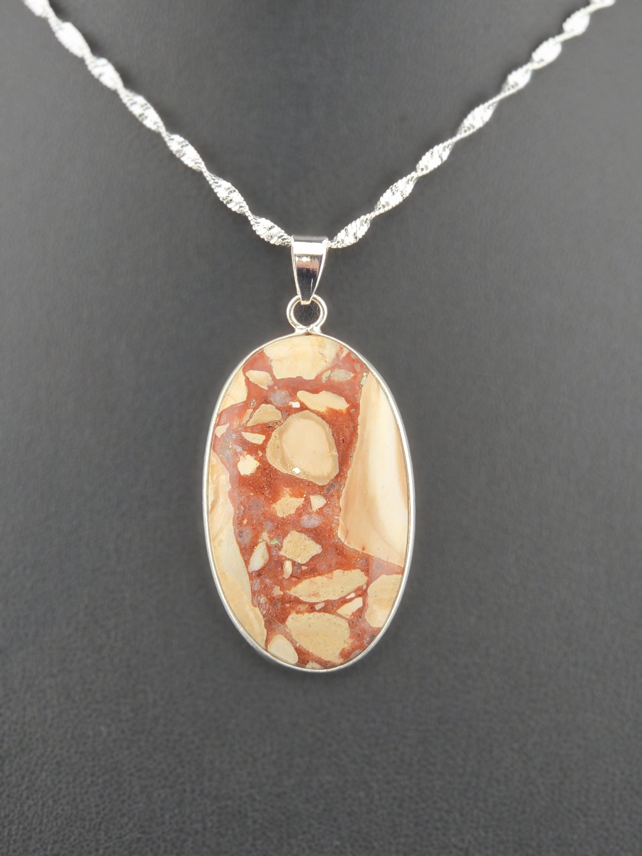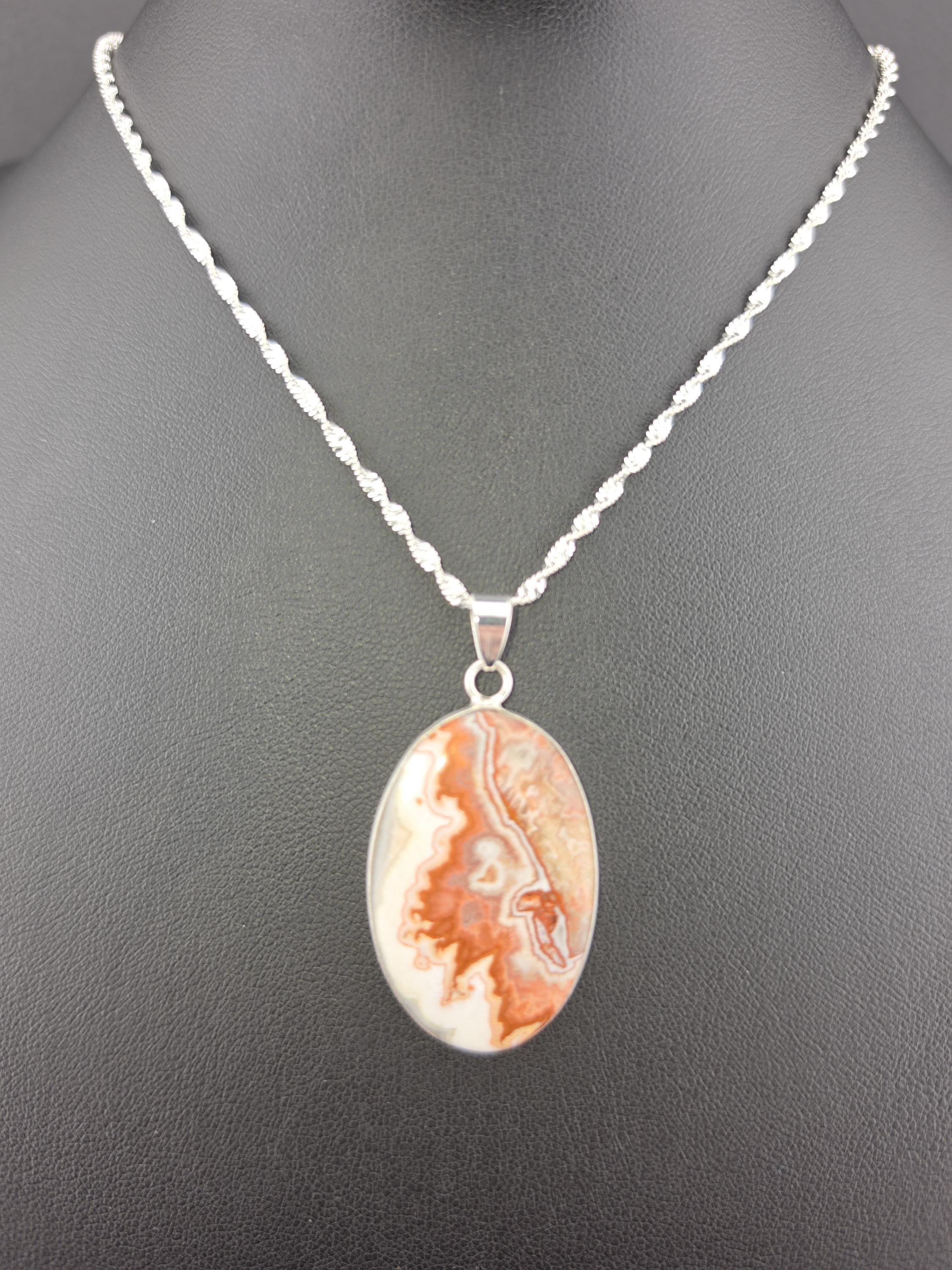 I made these necklaces using bright shiny twisted 925 sterling silver plated chain that have extenders making them adjustable from 20" to 22" in length. I added handcrafted oval gemstone pendants set in 925 sterling silver. YOUR CHOICES ARE: #1- Orange Scolecite #2-Mookaite Jasper #3-AAA Rosarito #4-Yellow Lace Agate * Your purchase will arrive in pretty packaging