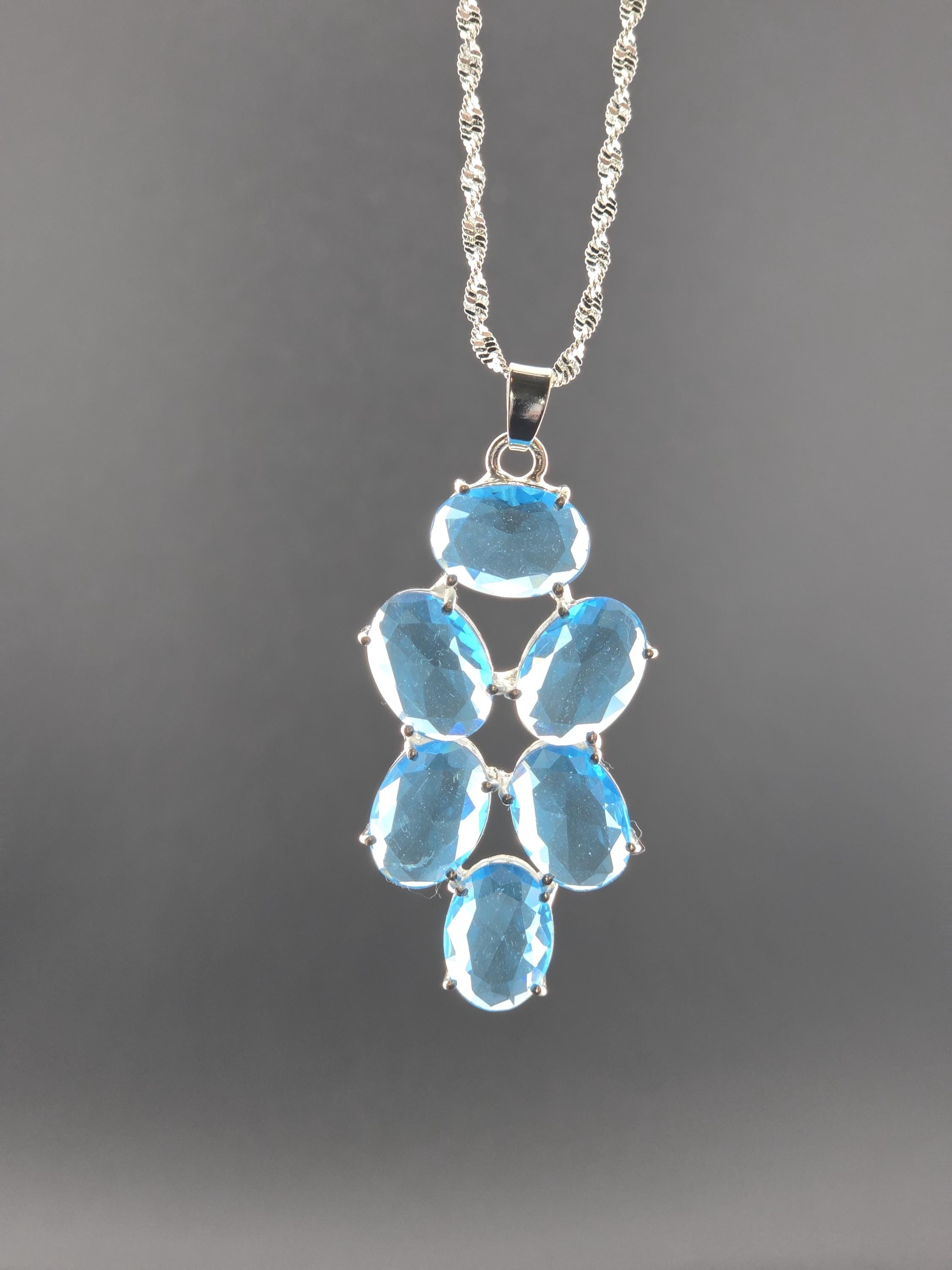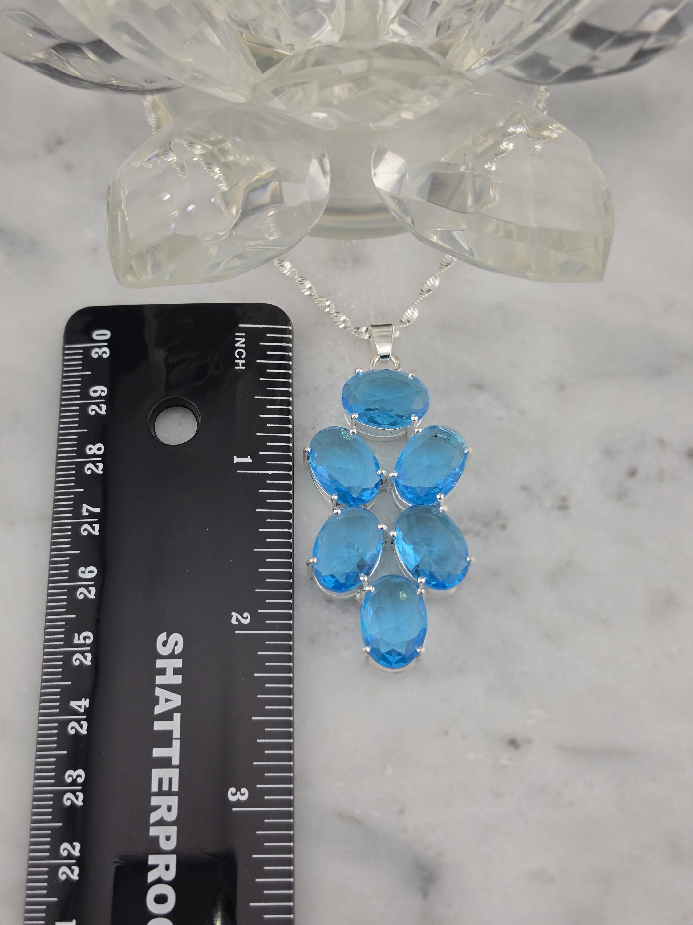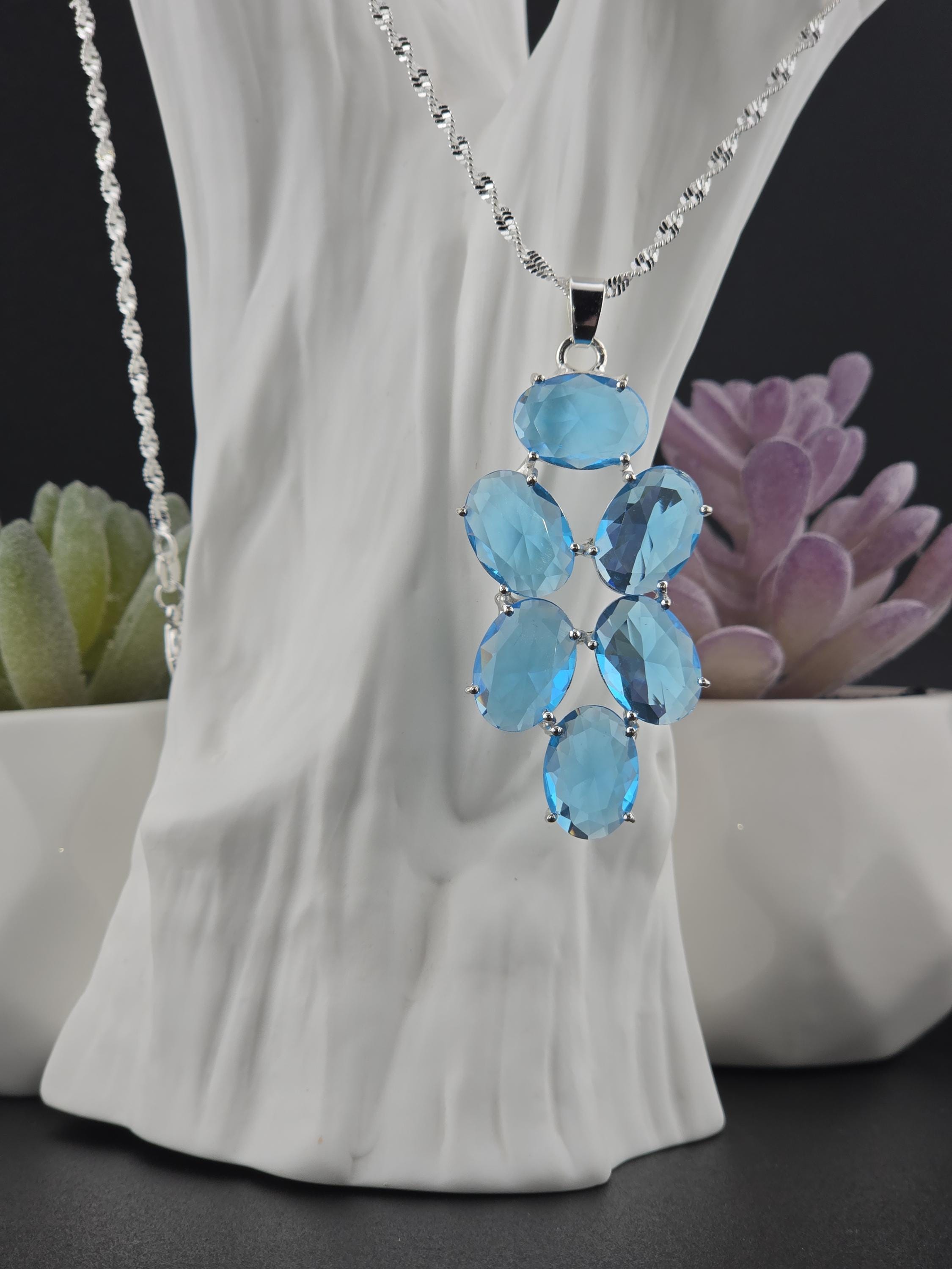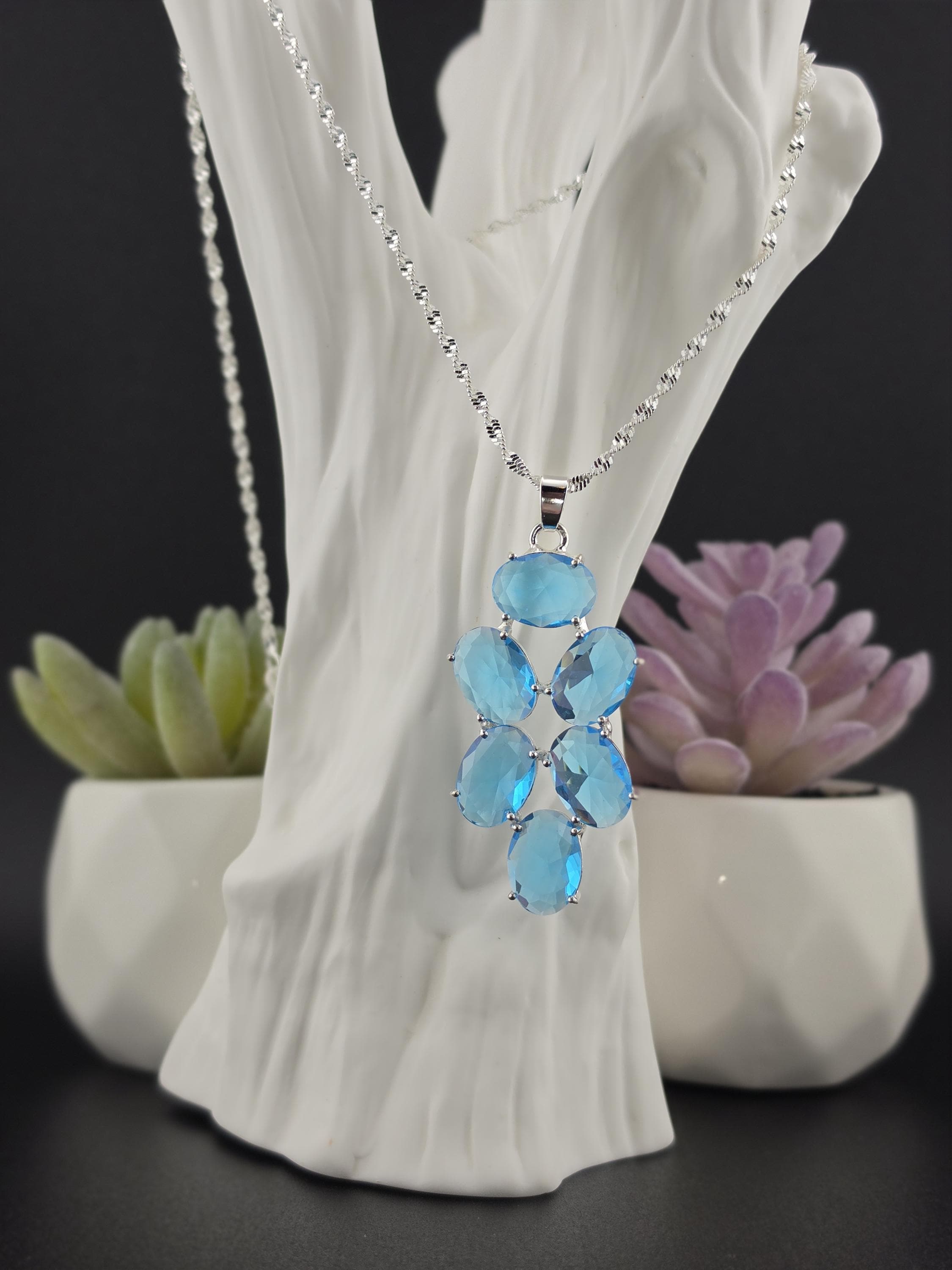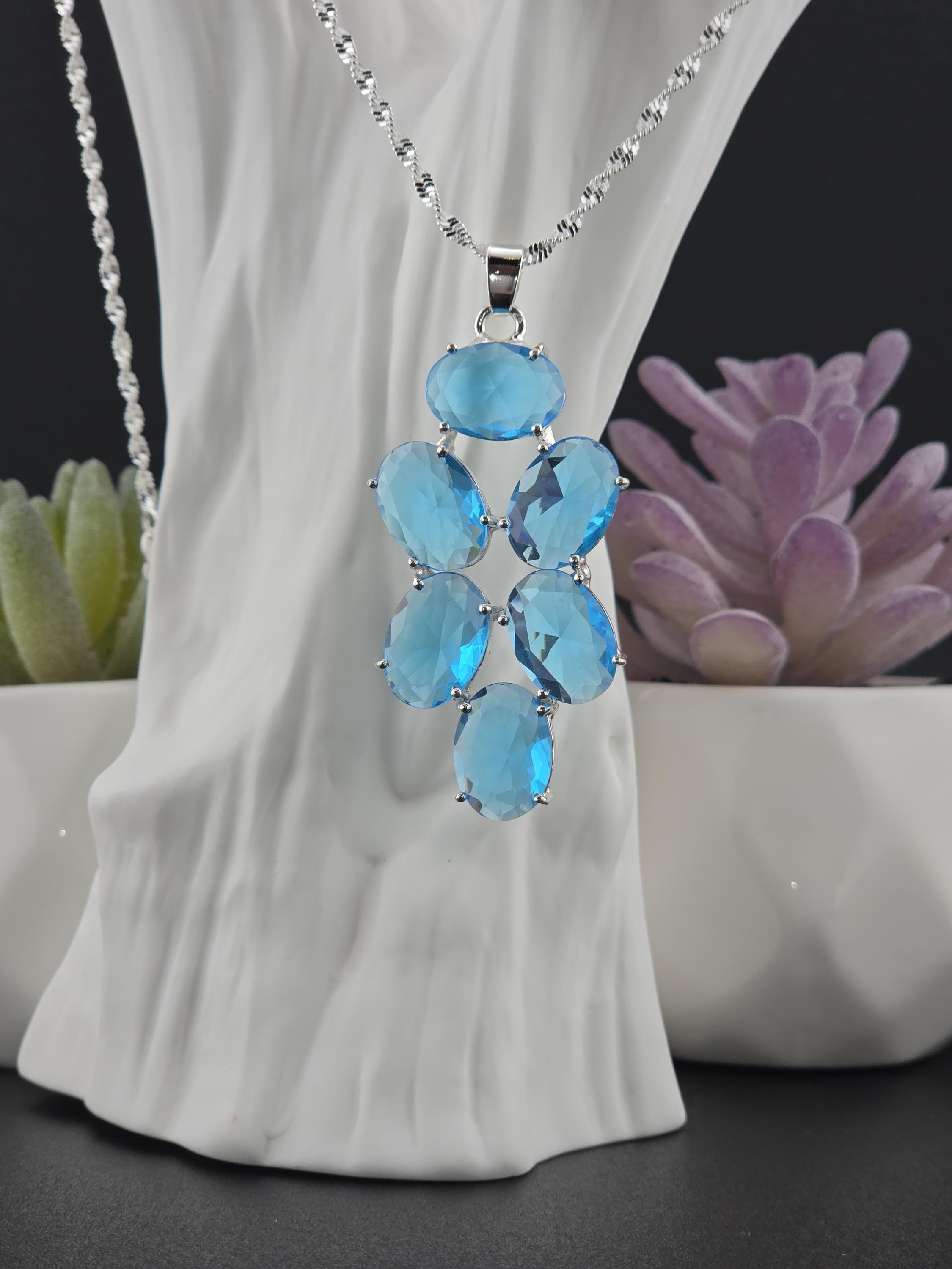 This necklace was made using bright shiny twisted 925 sterling silver plated chain with extenders making is adjustable from 20.5" - 24.5" in length. The pendant is made up of 6 gorgeous lab-created oval cut Swiss Blue Topaz stones set in 925 sterling silver. * Your purchase will arrive in pretty packaging ● BENEFITS OF WEARING SILVER Silver is a powerful antimicrobial agent and can help fight infections, heal wounds, aid in cold and flu prevention, and so much more. Positively charged silver ions form a conductive field stimulating the body's natural conductivity, improving blood circulation, body temperature balance, and overall health. OR, SO THEY SAY...