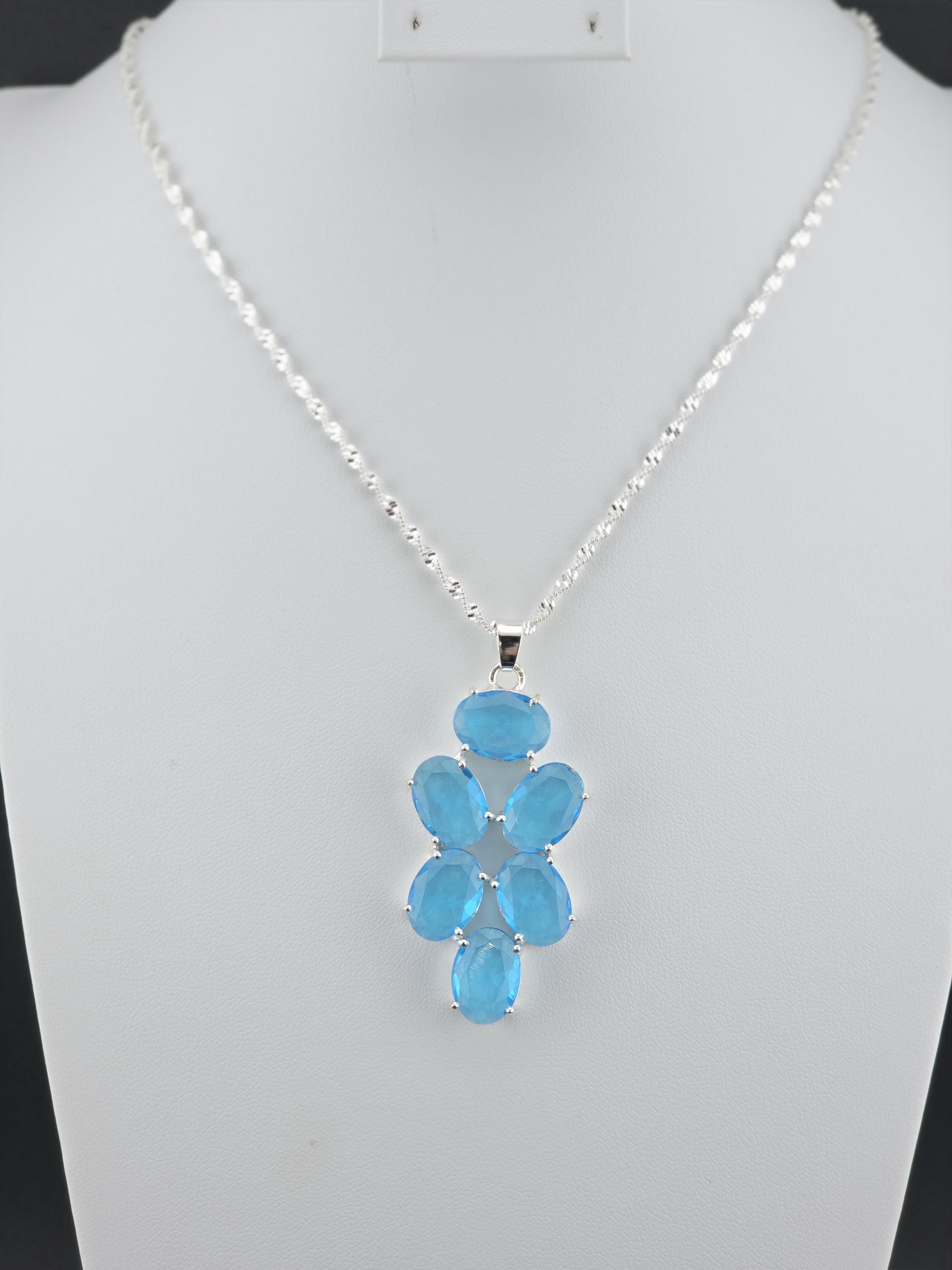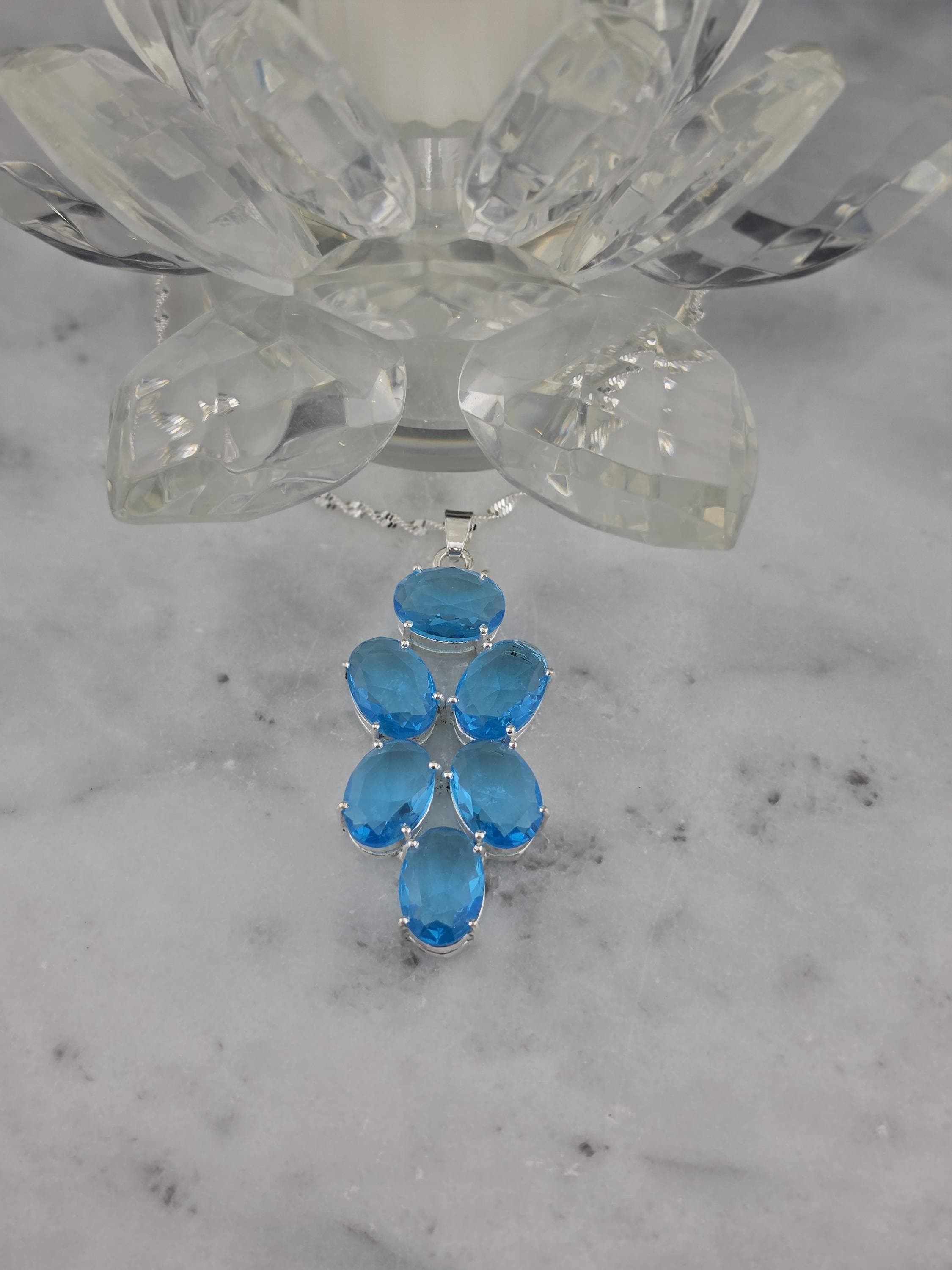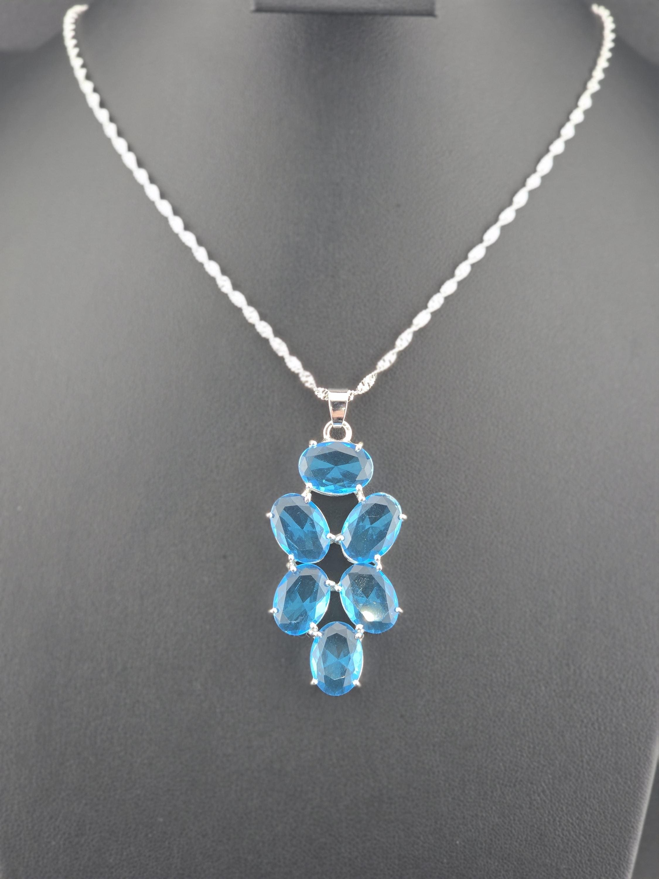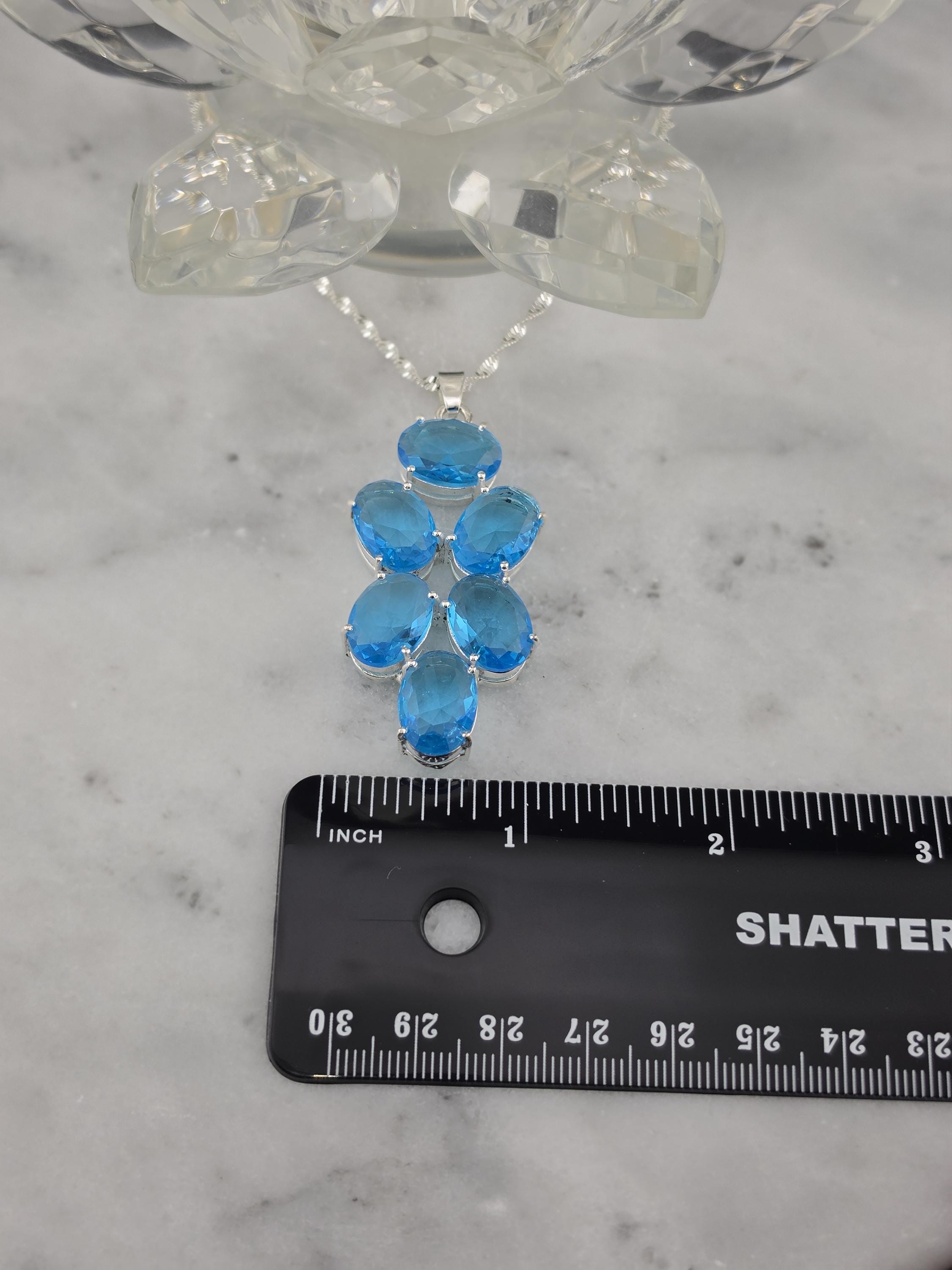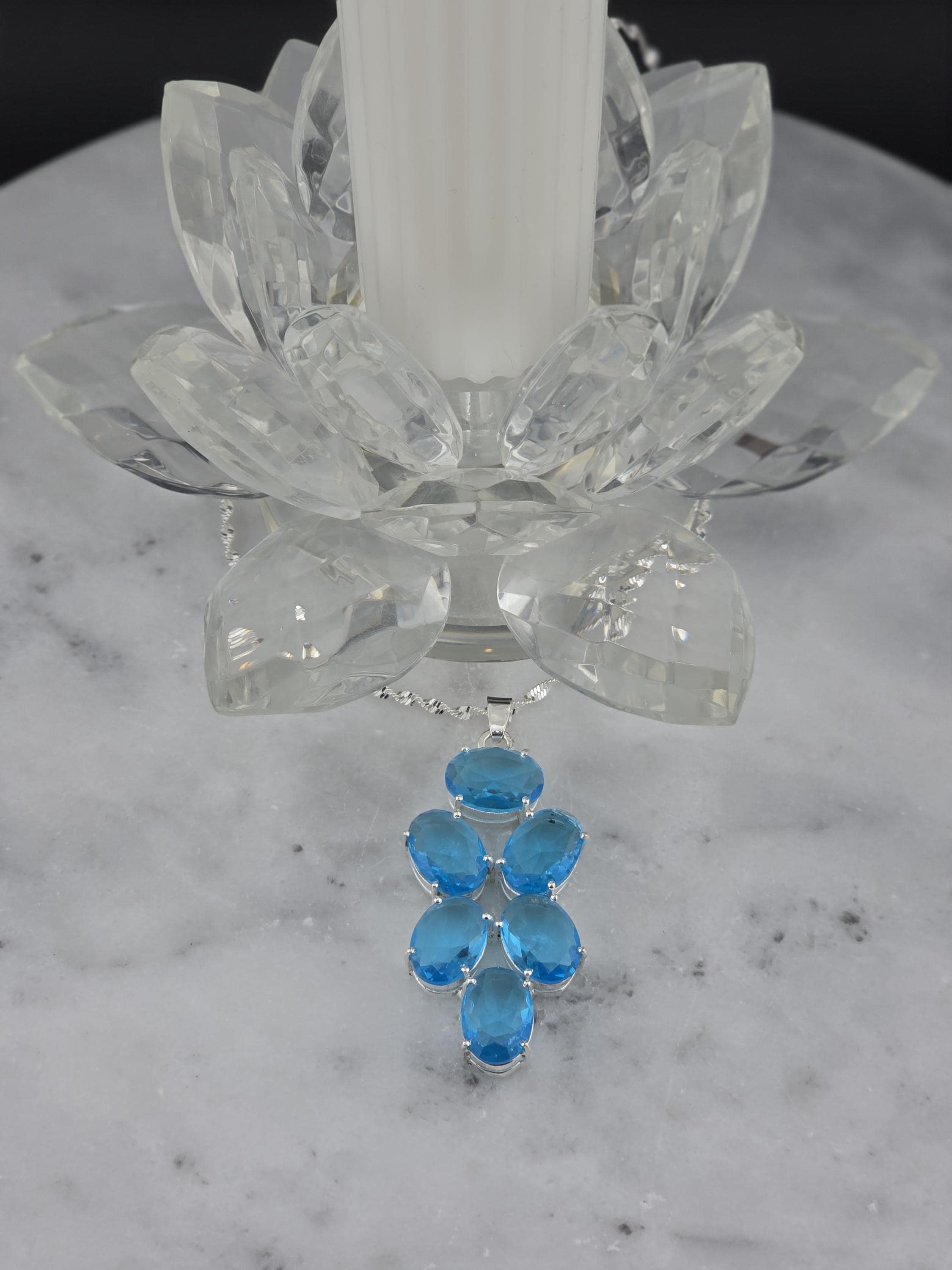 This necklace was made using bright shiny twisted 925 sterling silver plated chain with extenders making is adjustable from 20.5" - 24.5" in length. The pendant is made up of 6 gorgeous lab-created oval cut Swiss Blue Topaz stones set in 925 sterling silver. * Your purchase will arrive in pretty packaging ● BENEFITS OF WEARING SILVER Silver is a powerful antimicrobial agent and can help fight infections, heal wounds, aid in cold and flu prevention, and so much more. Positively charged silver ions form a conductive field stimulating the body's natural conductivity, improving blood circulation, body temperature balance, and overall health. OR, SO THEY SAY...