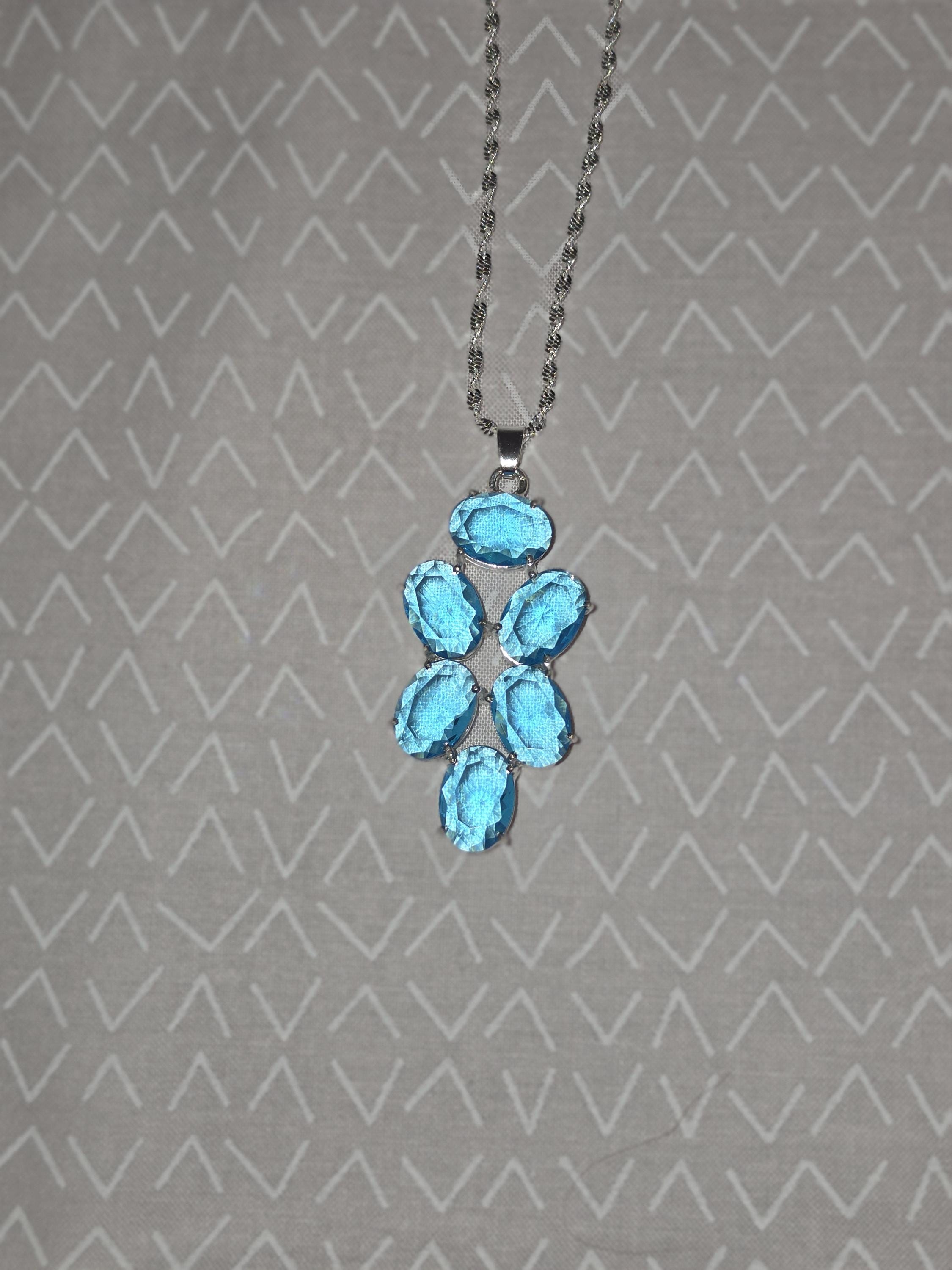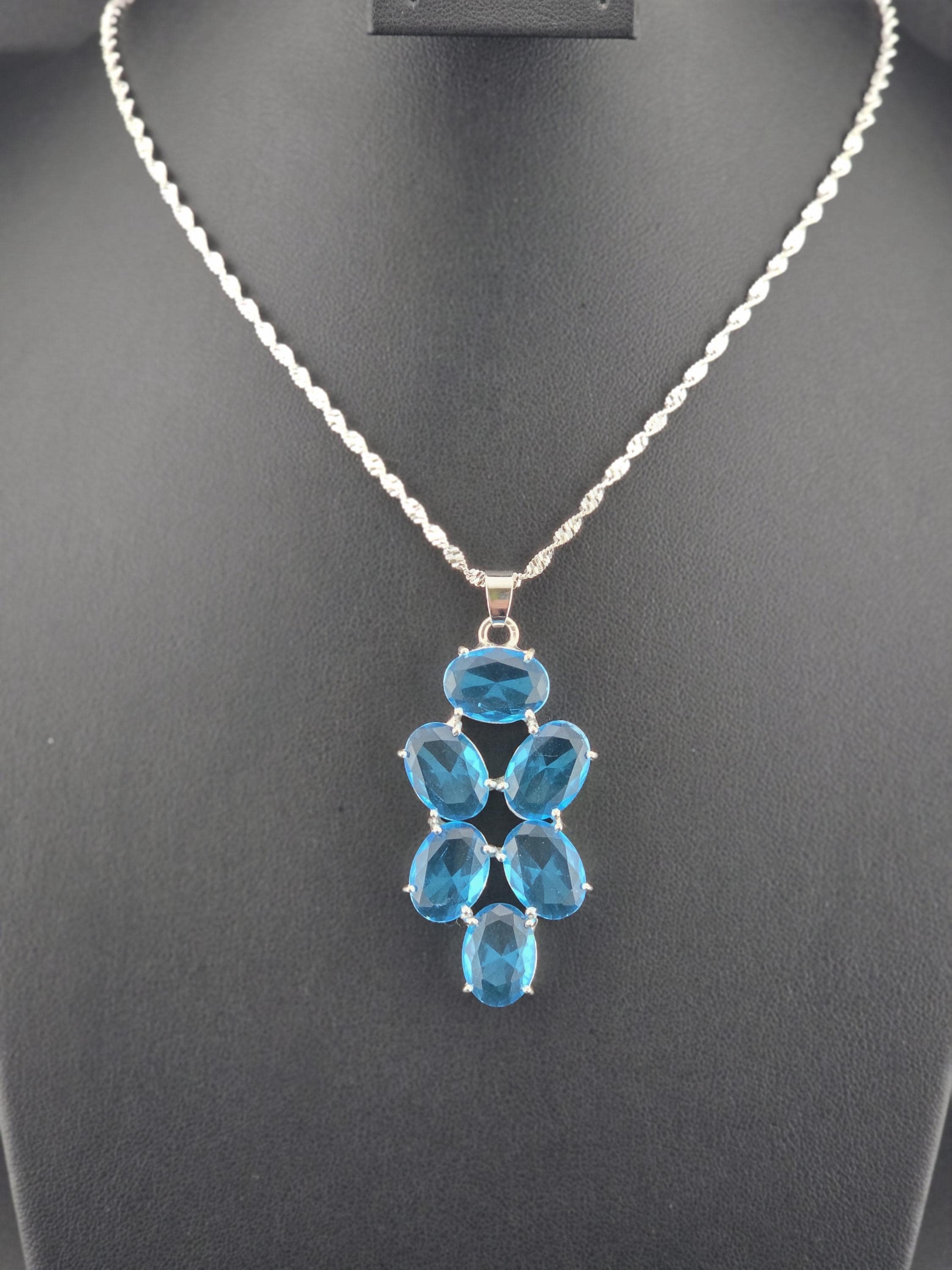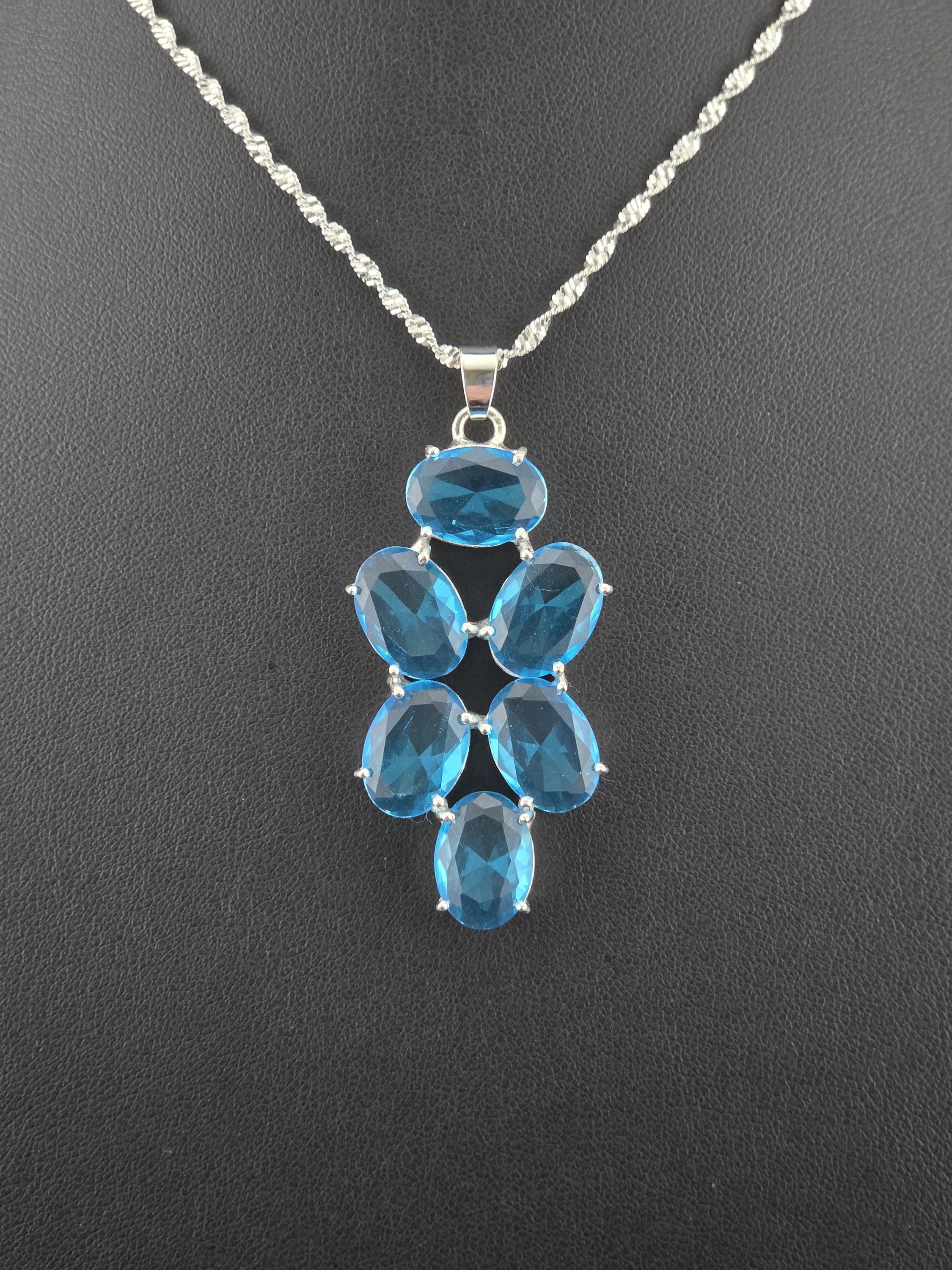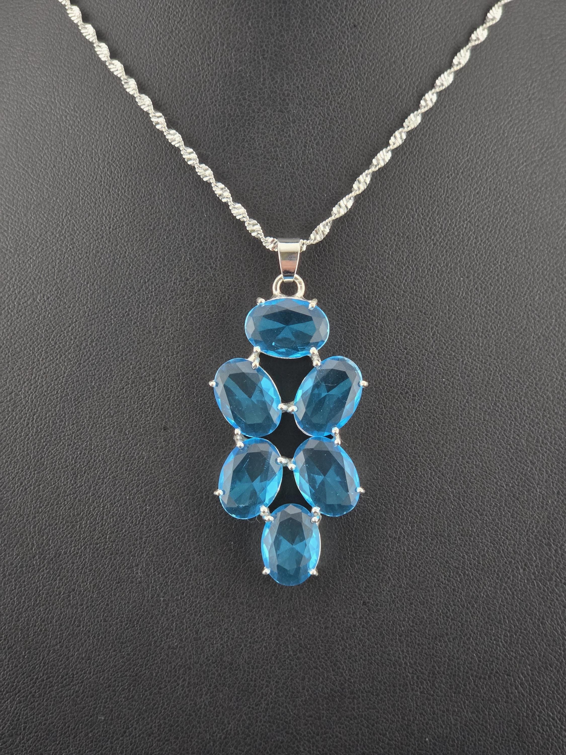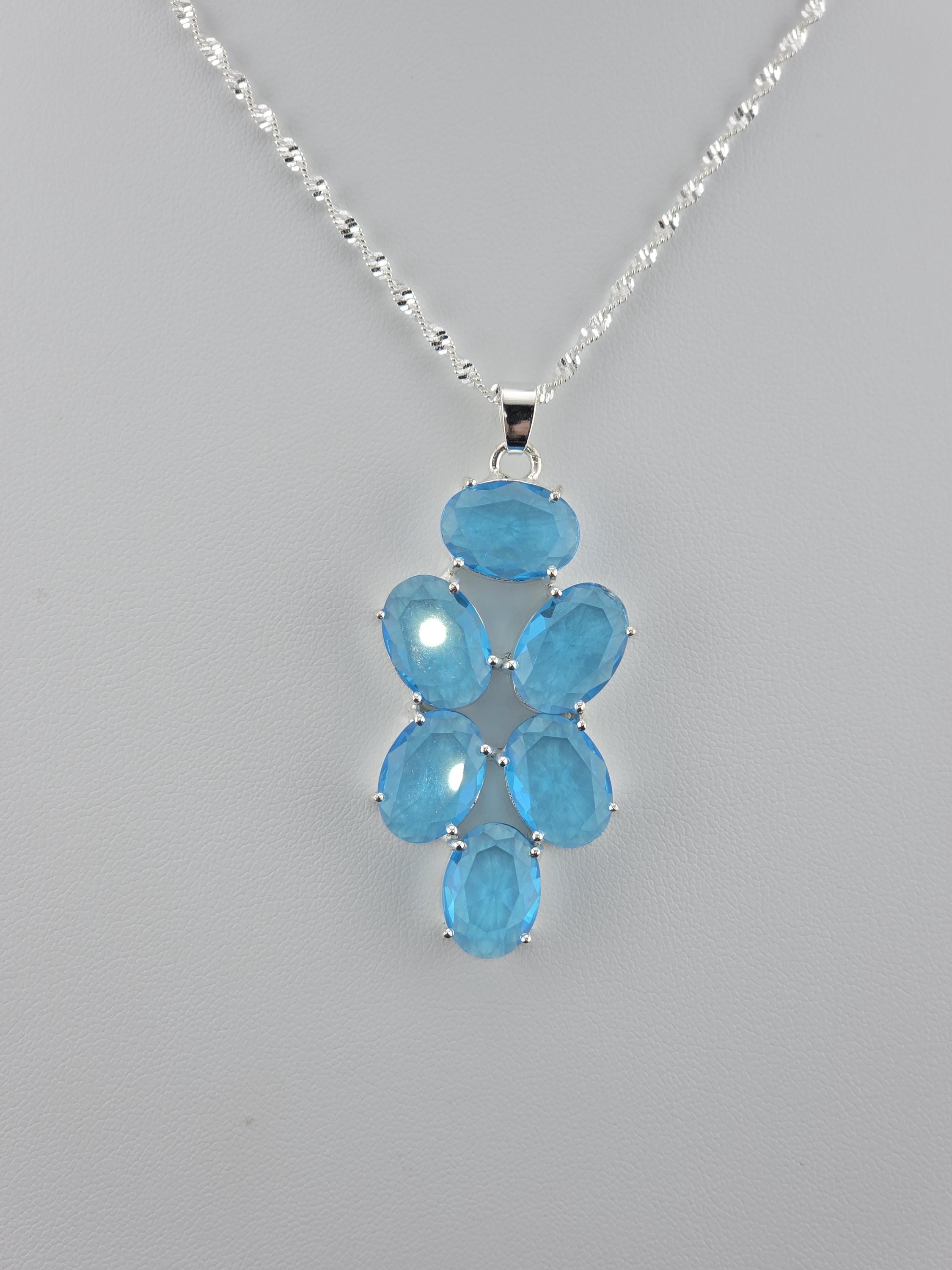 This necklace was made using bright shiny twisted 925 sterling silver plated chain with extenders making is adjustable from 20.5" - 24.5" in length. The pendant is made up of 6 gorgeous lab-created oval cut Swiss Blue Topaz stones set in 925 sterling silver. * Your purchase will arrive in pretty packaging ● BENEFITS OF WEARING SILVER Silver is a powerful antimicrobial agent and can help fight infections, heal wounds, aid in cold and flu prevention, and so much more. Positively charged silver ions form a conductive field stimulating the body's natural conductivity, improving blood circulation, body temperature balance, and overall health. OR, SO THEY SAY...