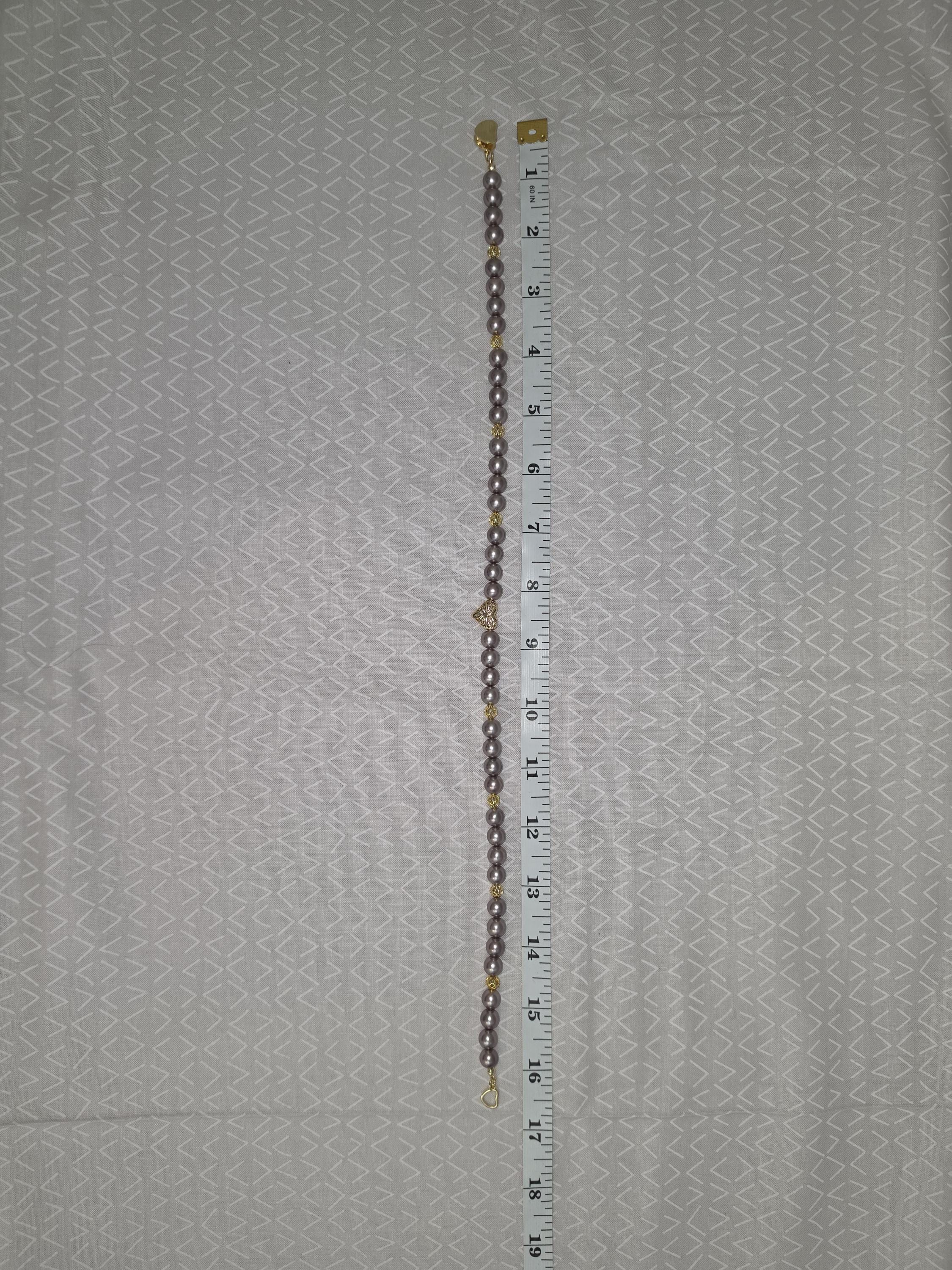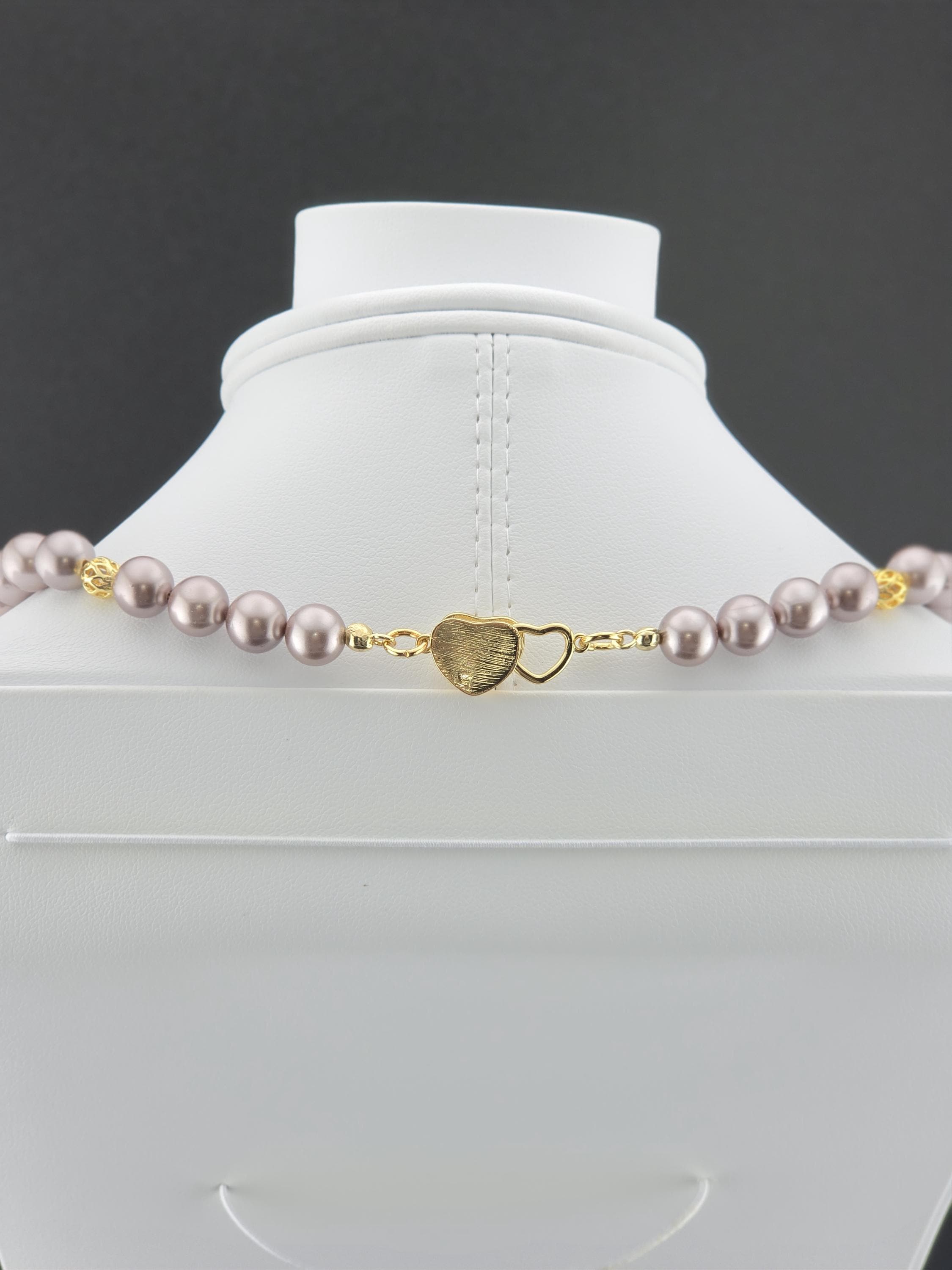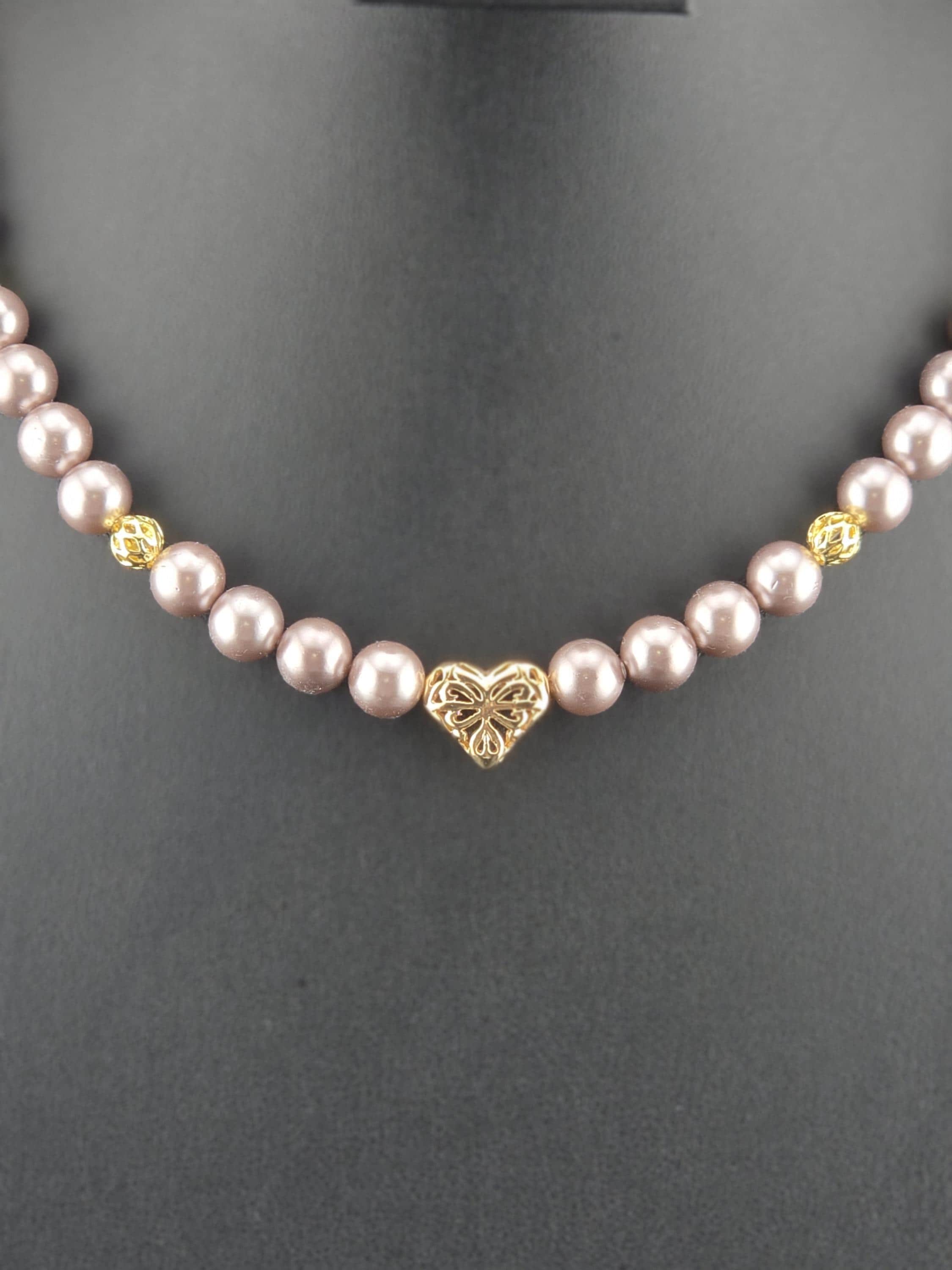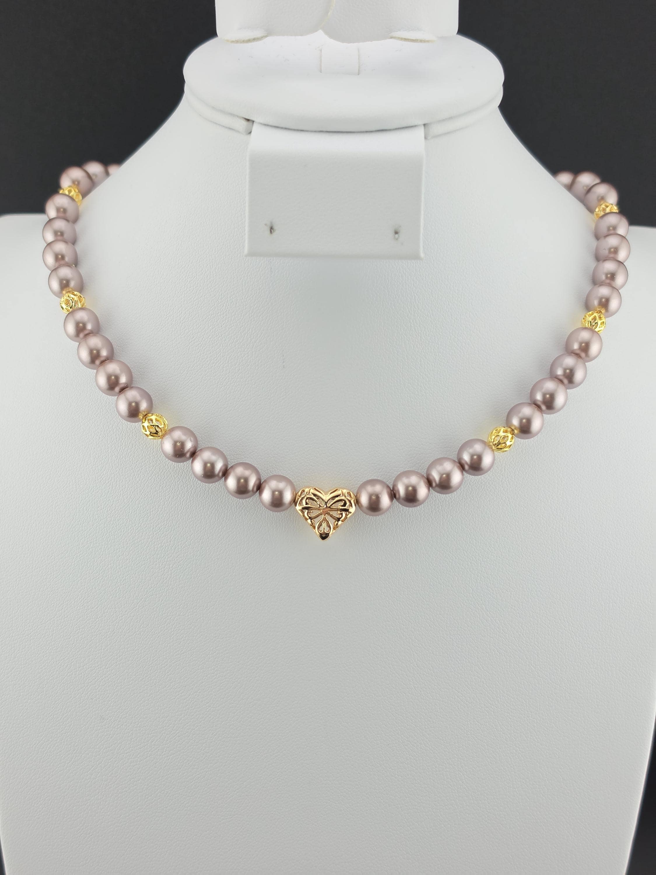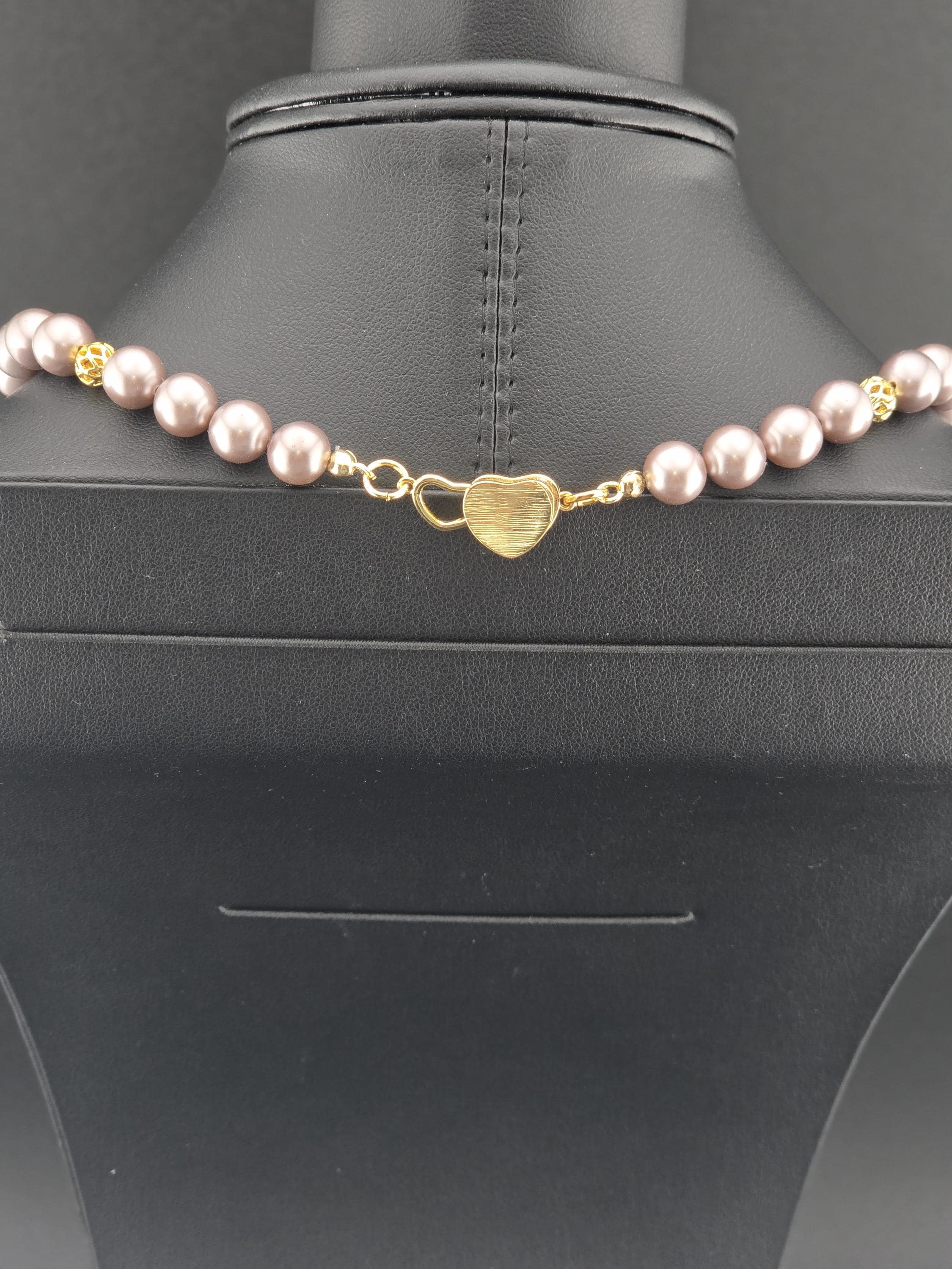 I made this necklace by stringing together 8mm AAA grade purple pearls. In the center of the necklace is an 18k gold plated brass filigree heart. It has a brushed 18k gold plated brass heart clasp and 18k gold plated connecting rings. It really is impressive. * Your purchase will arrive in pretty packaging