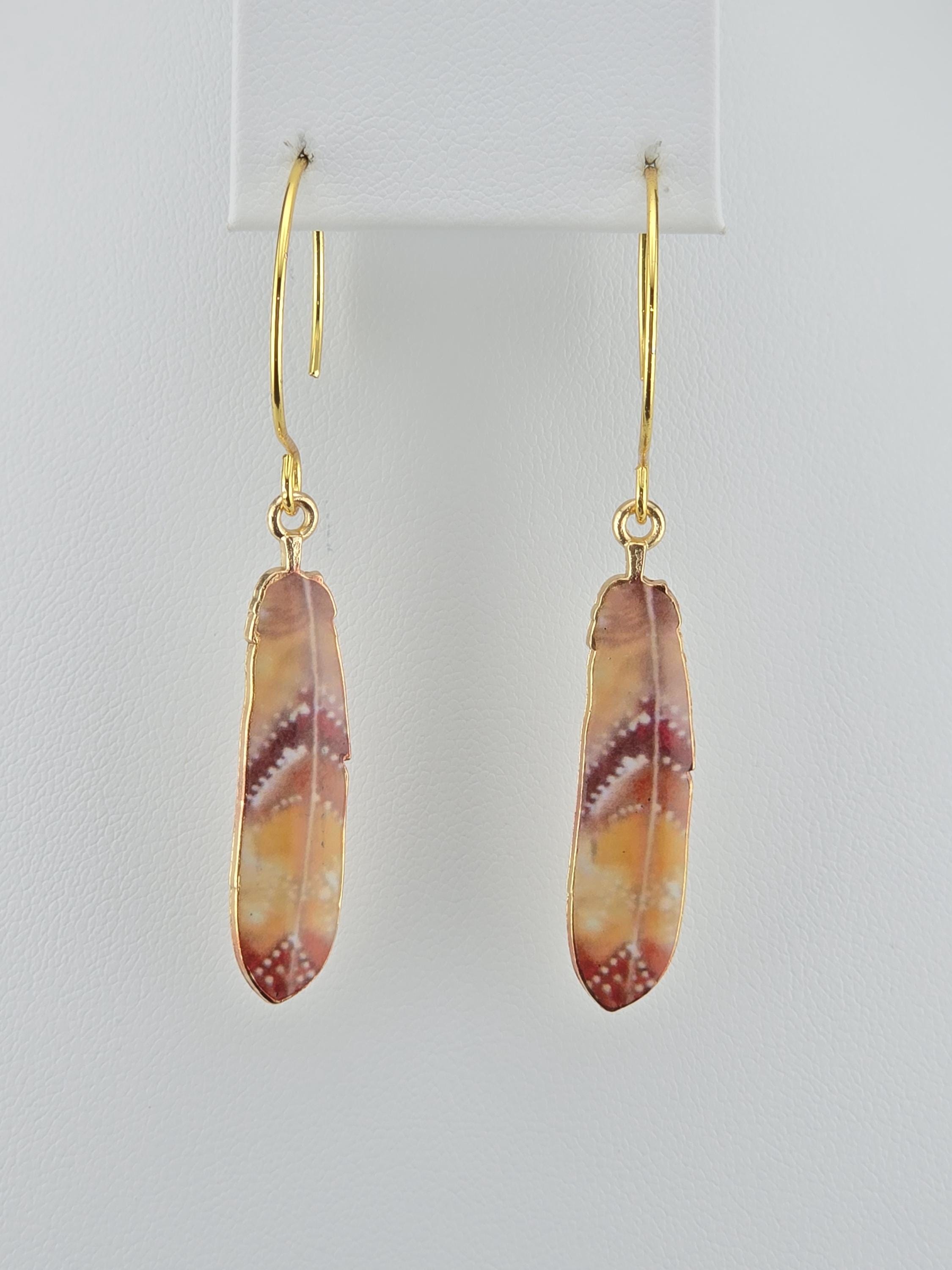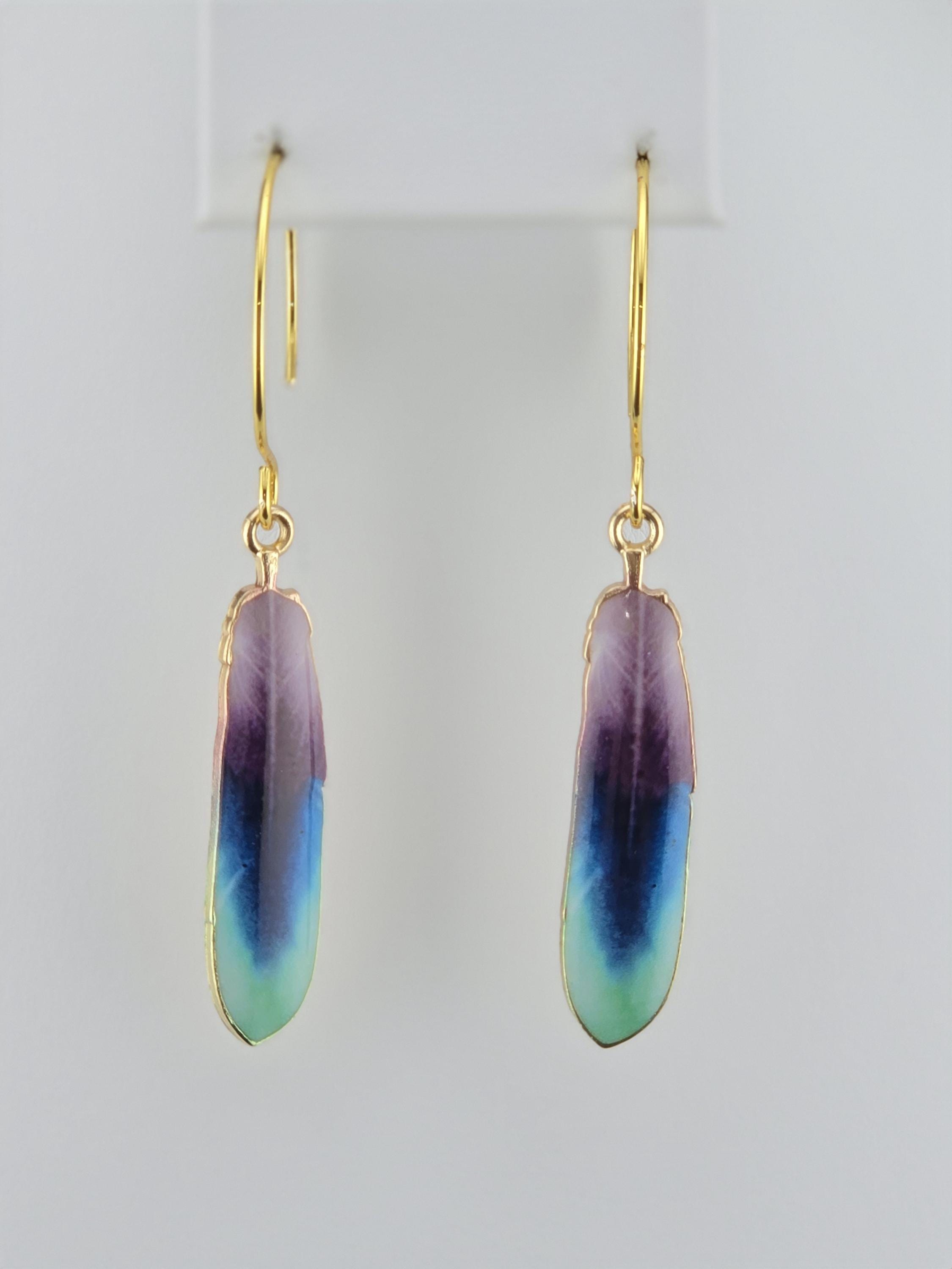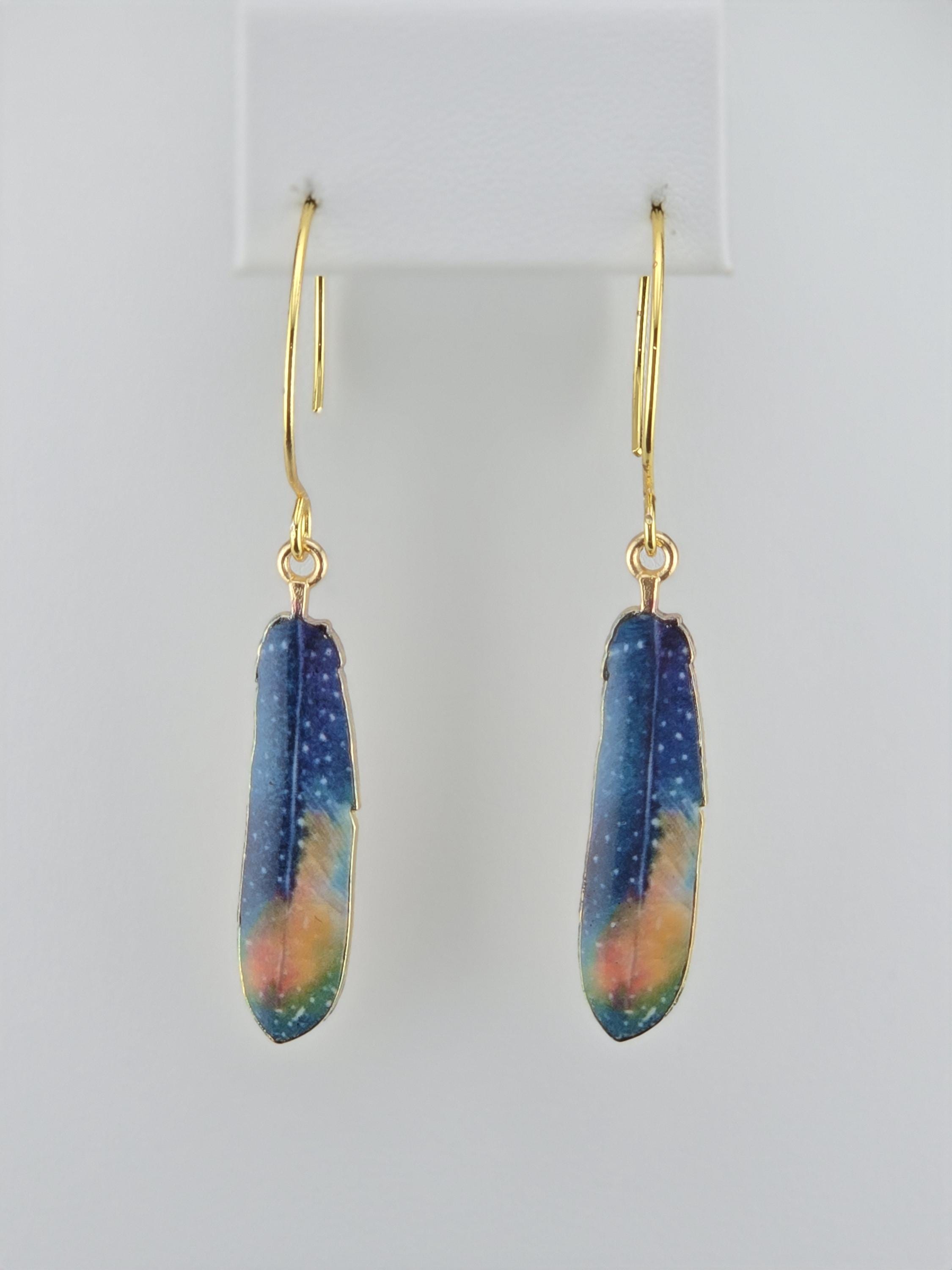 Colorful Enamel Feather Charms on Gold Dangle Earrings