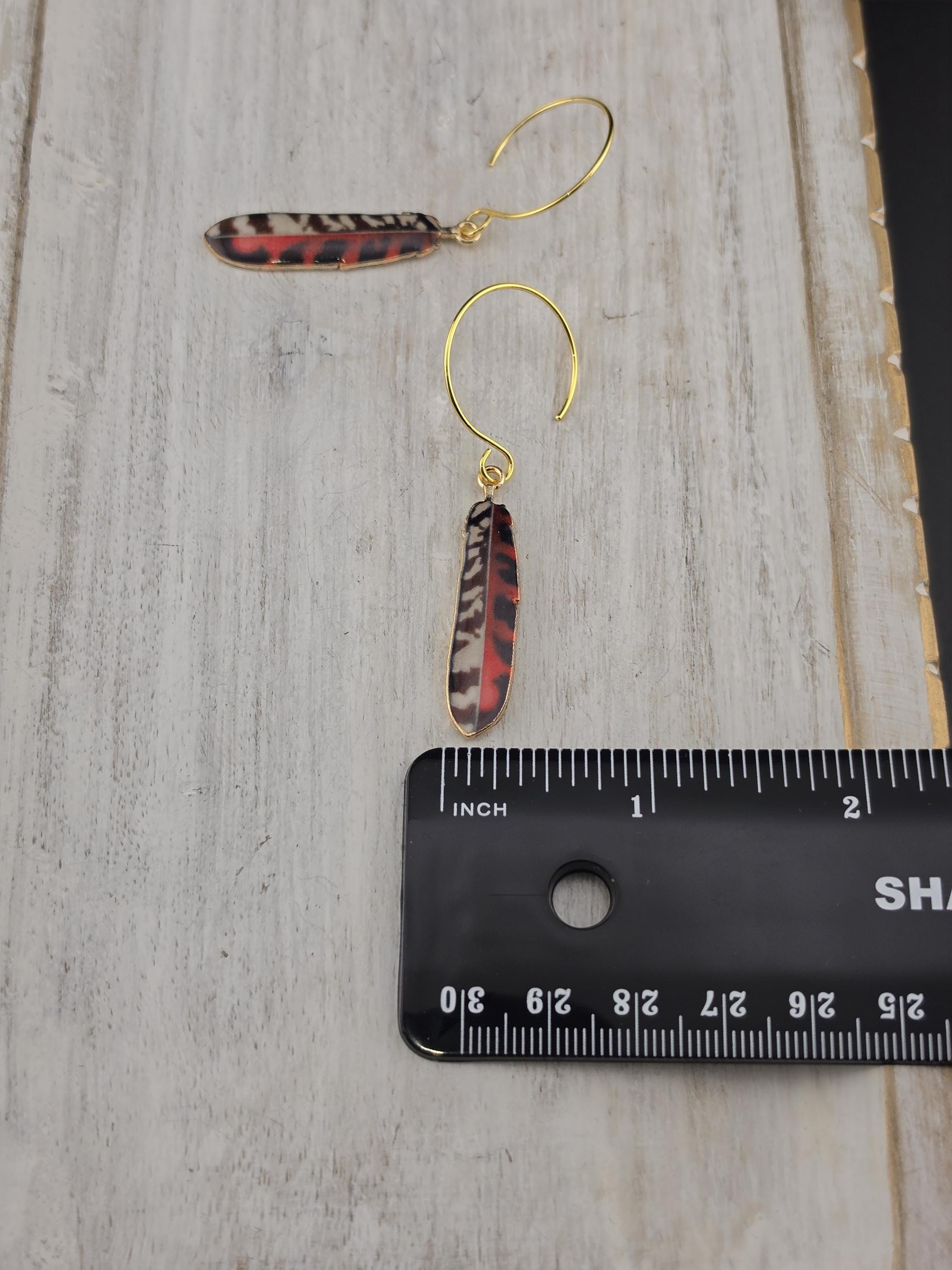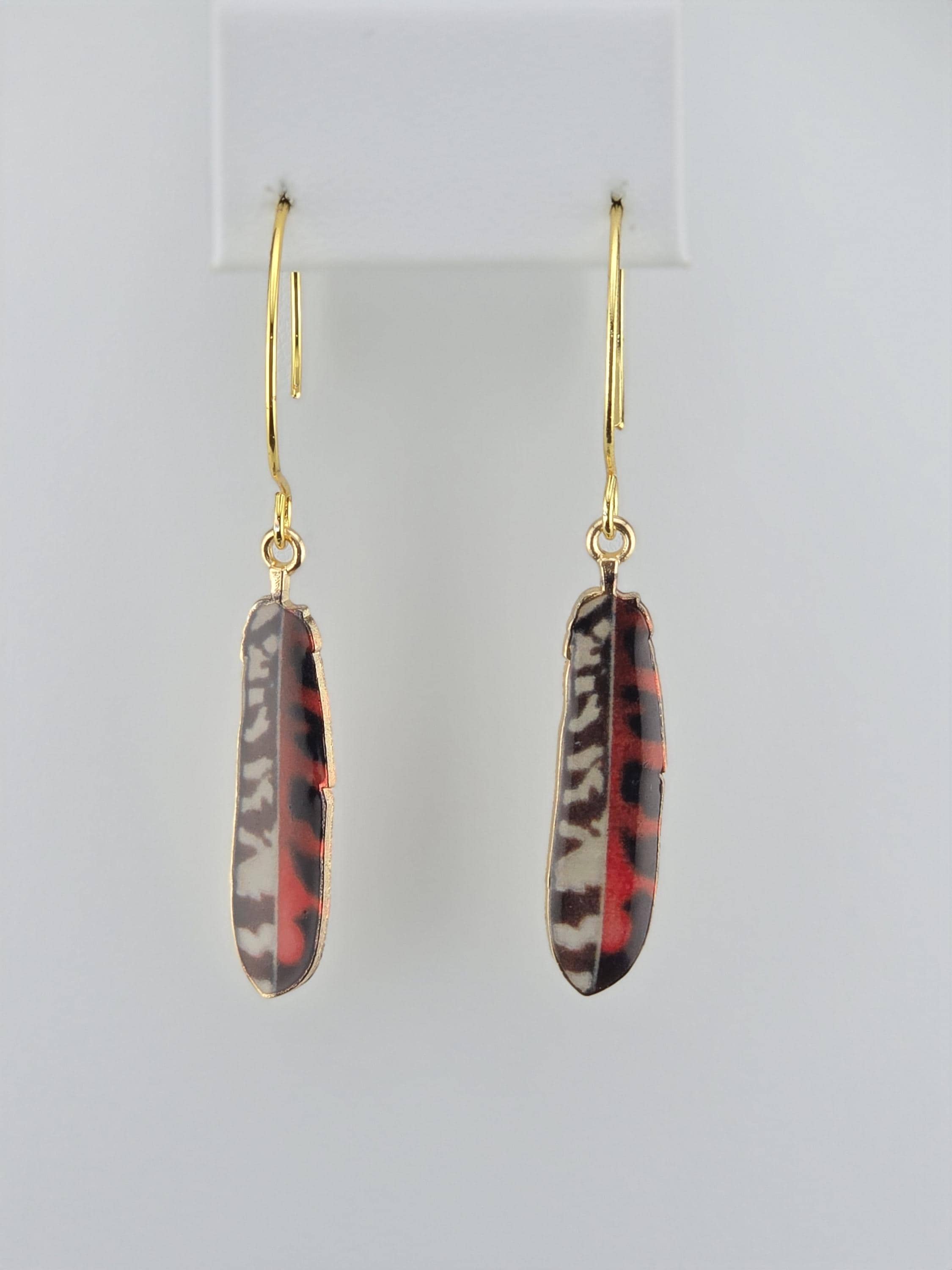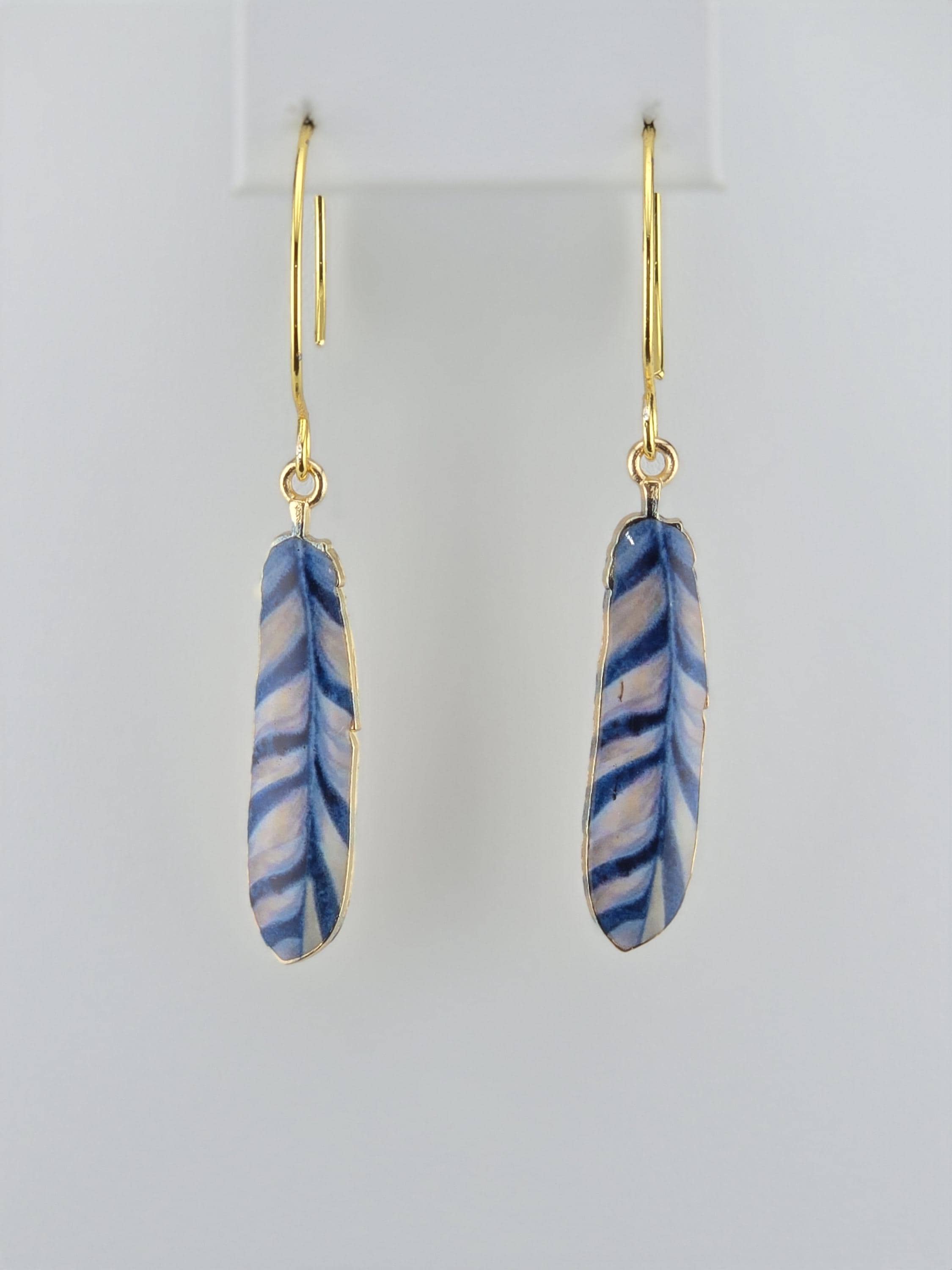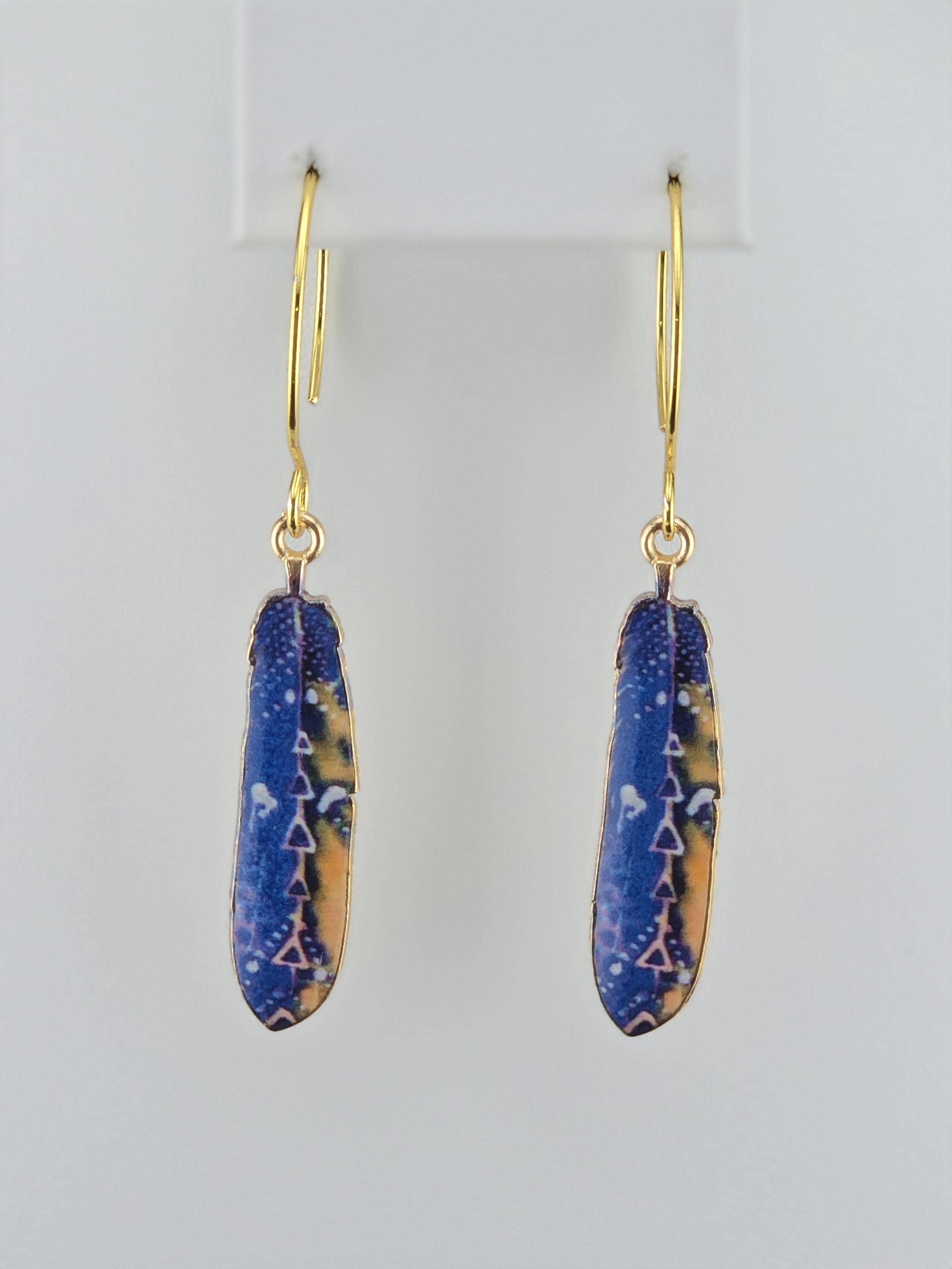 Colorful Enamel Feather Charms on Gold Dangle Earrings