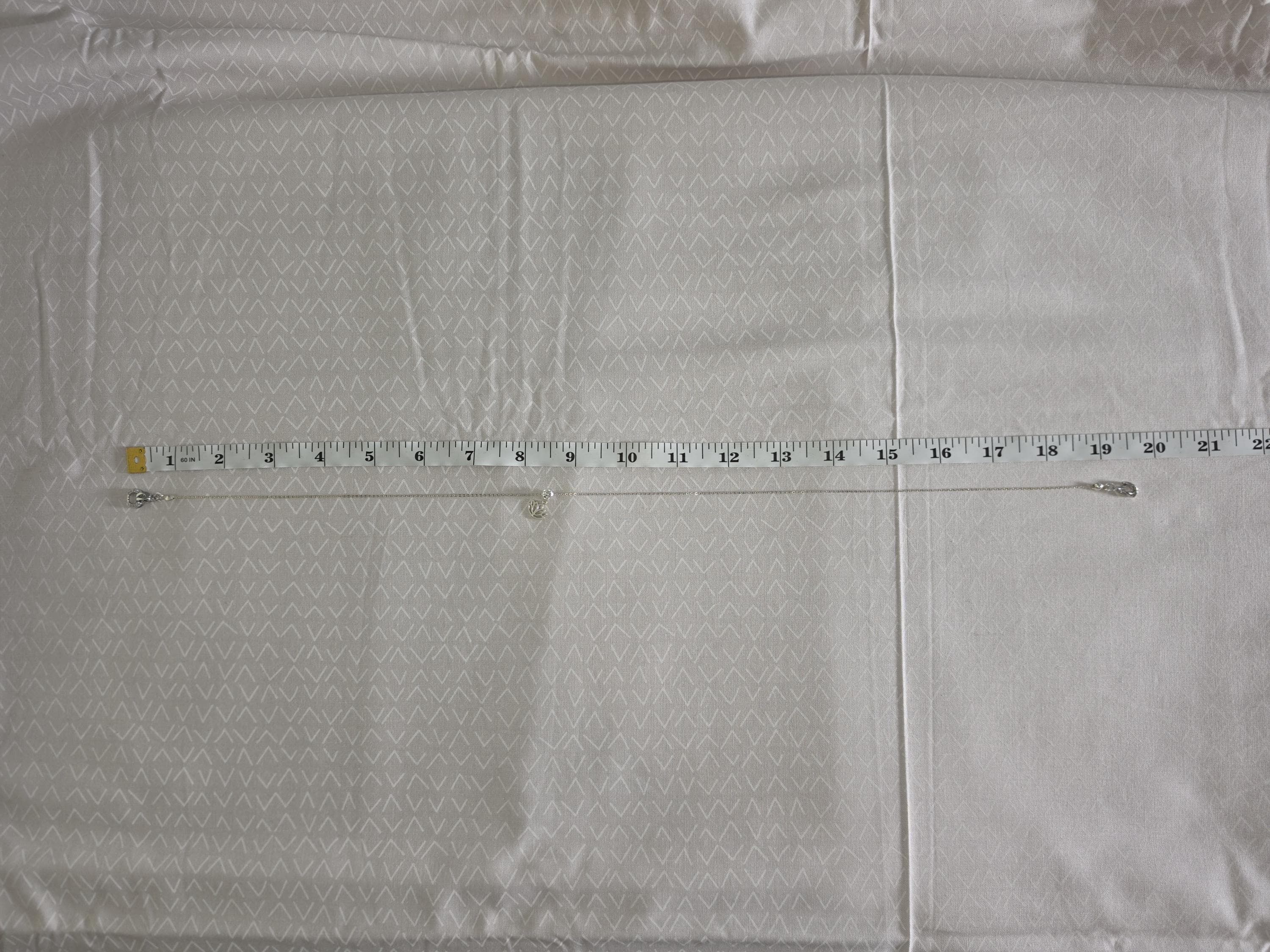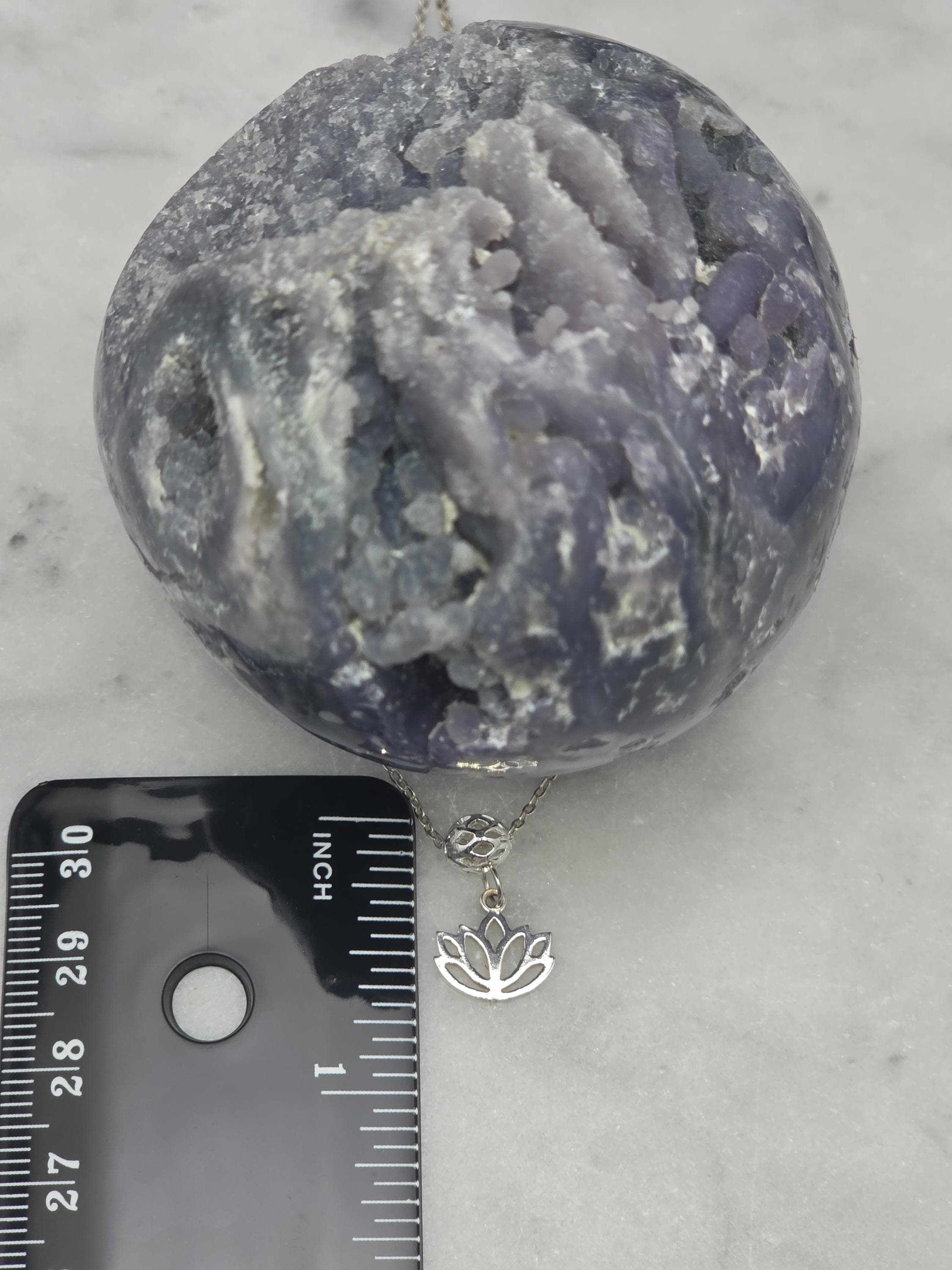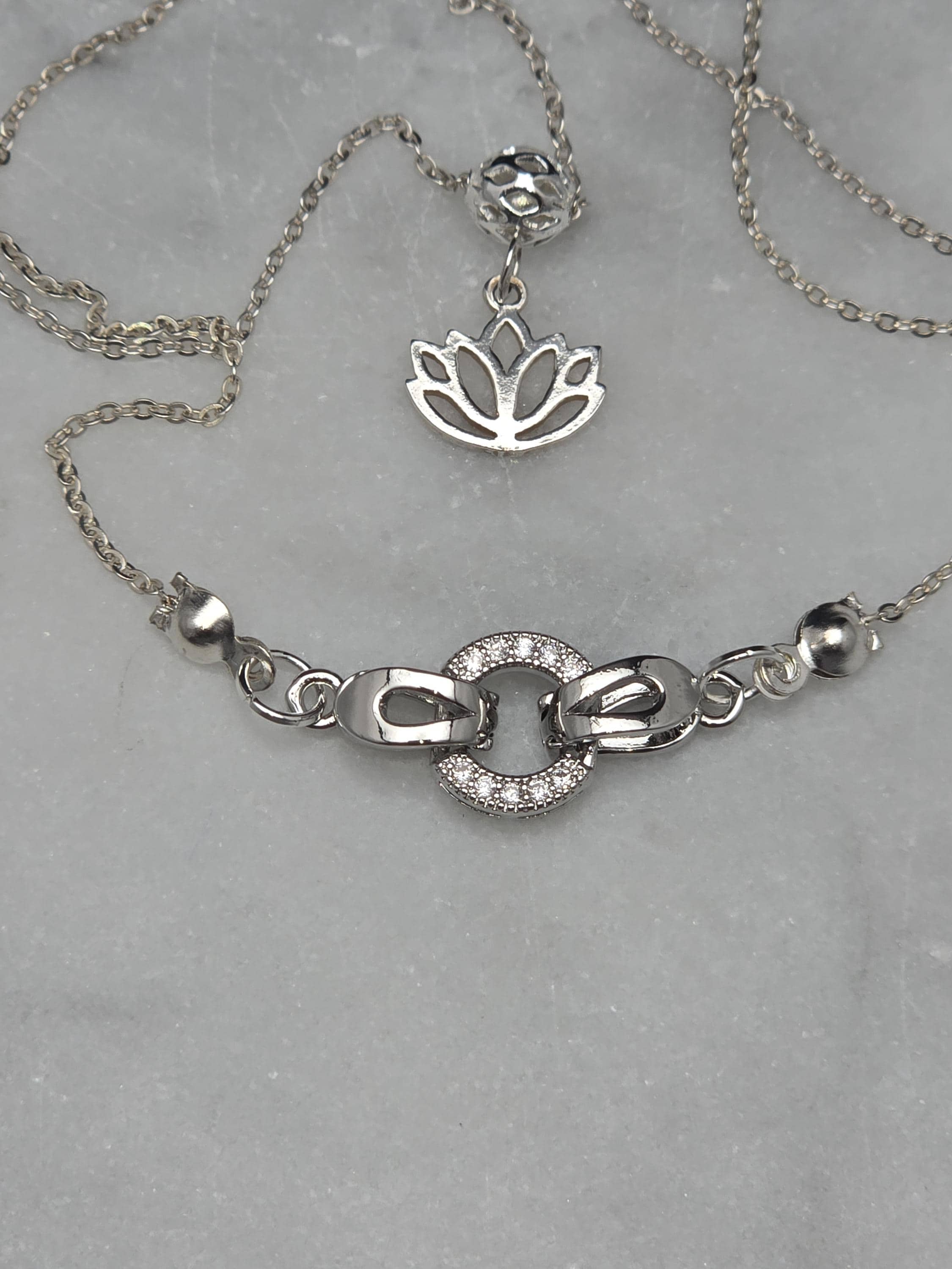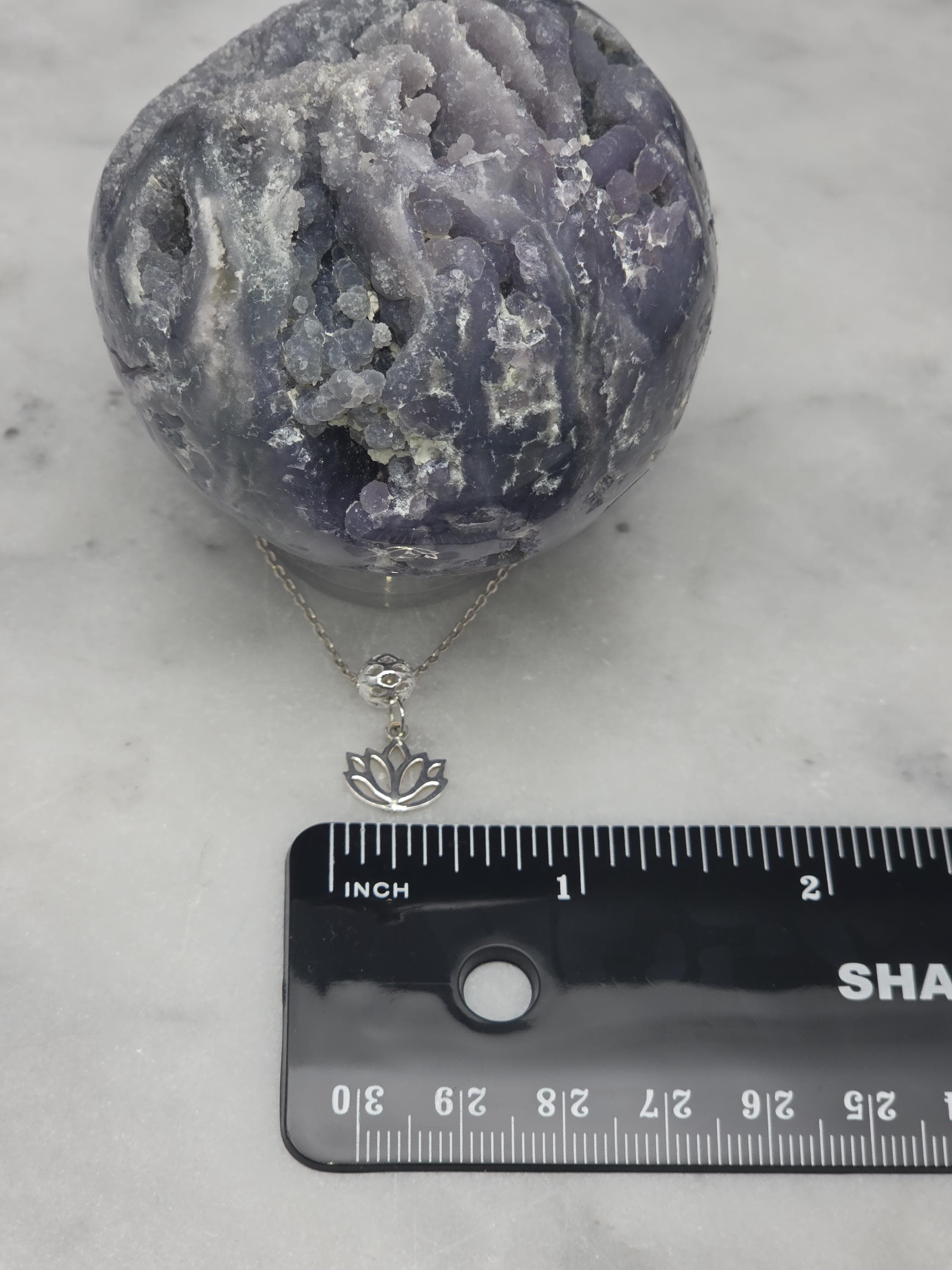 I made this necklace using delicate 925 sterling silver chain and gave it a beautiful pave' circle double hinge clasp. It is 19.5" long and is not adjustable. I added a small 925 sterling silver lotus flower pendant that has a 925 sterling silver hollow filigree bead embellishment. It is elegantly zen. * Your purchase will arrive in pretty packaging